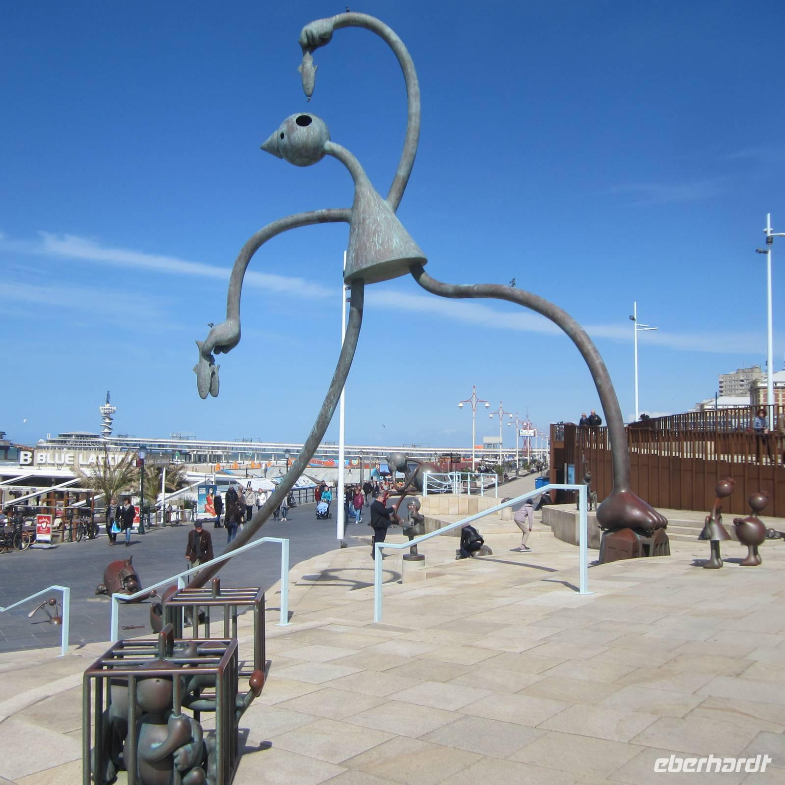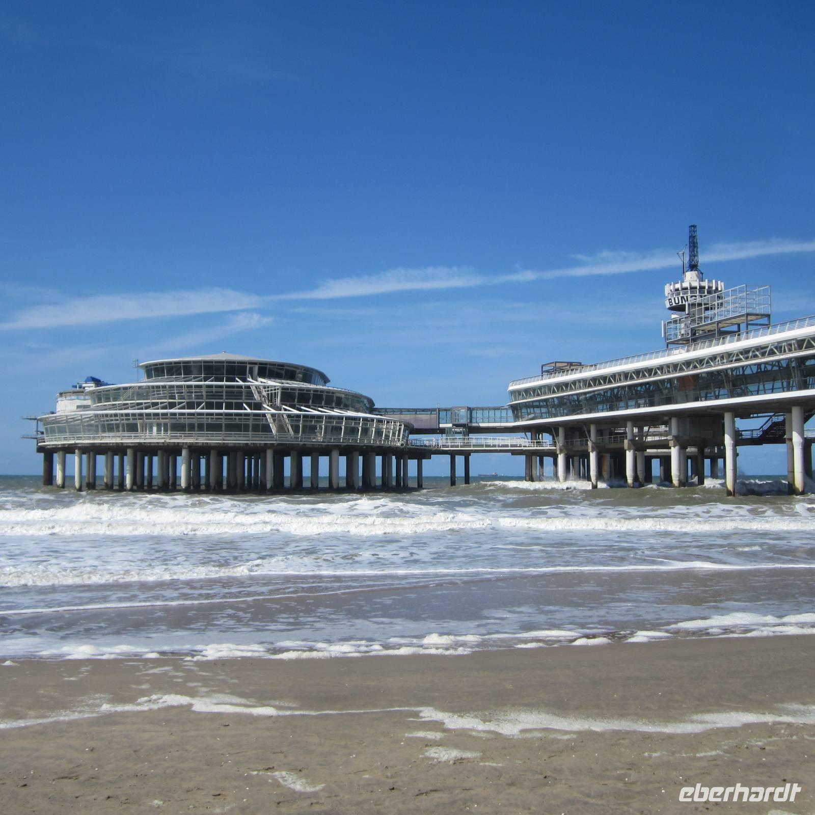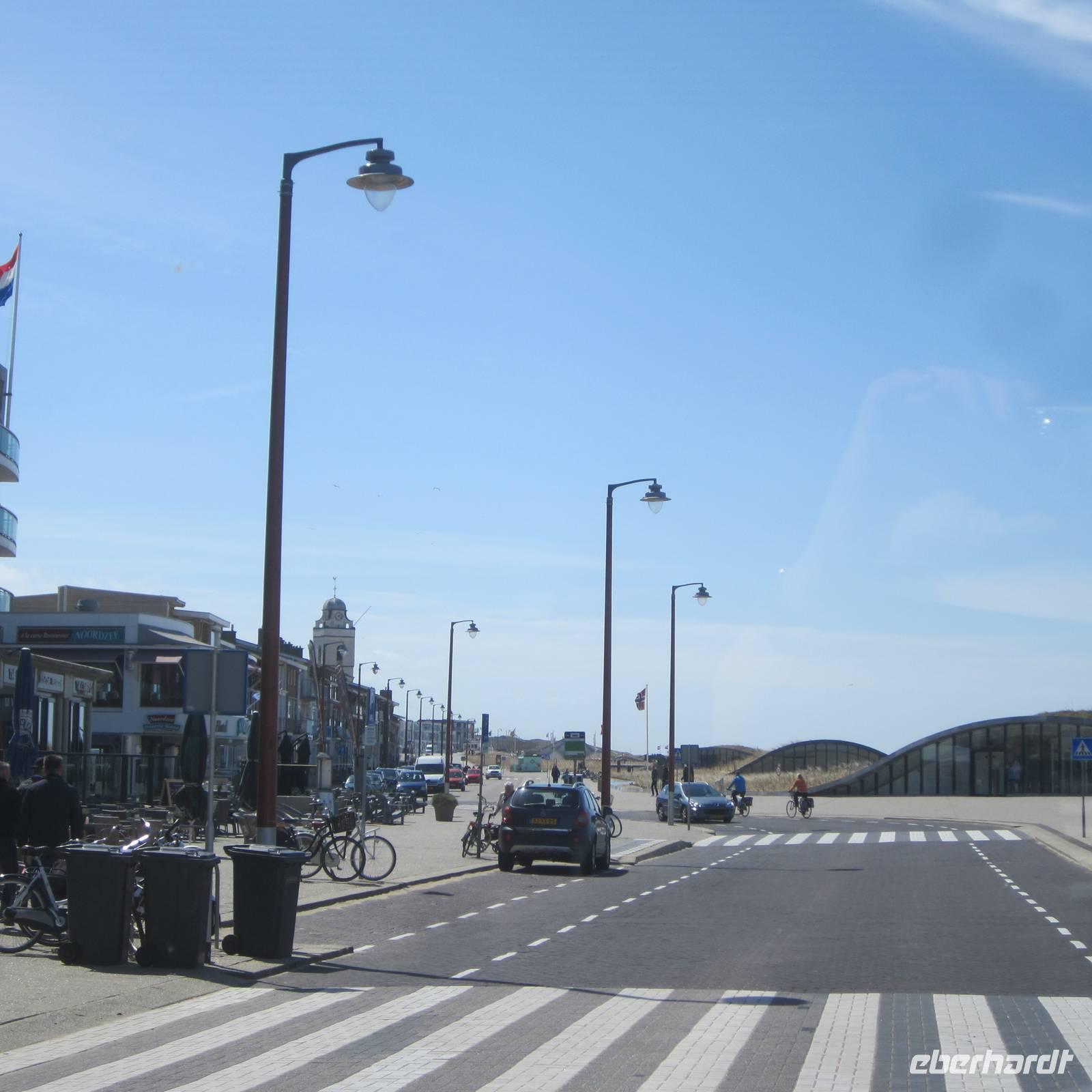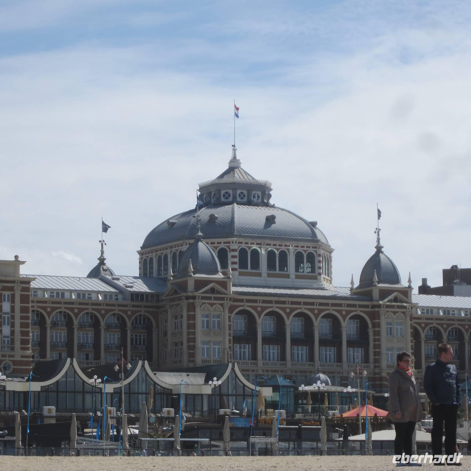 nach Scheveningen, Ortsteil von Den Haag, zu dem vornehmen Badeort. Mittelpunkt  des Badelebens ist das 1885 eingeweihte Kurhaus im Jugendstil. Das Kurhaus beherbergt heute ein Luxushotel. Wir bummeln entlang des Boulevard. Der Wind bläst uns ordentlich um die Ohren. Am Bus wieder angekommen fahren wir durch Den Haag und weiter an Gouda vorbei durch Utrecht. Um auch den Ort zu sehen, an dem  1579 die Utrechter Union vereinbart wurde. Nach einer kurzen Pause fahren wir entlang der Straße 304 zurück nach Apeldoorn.