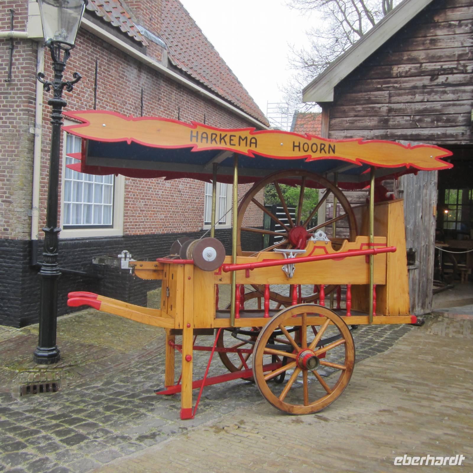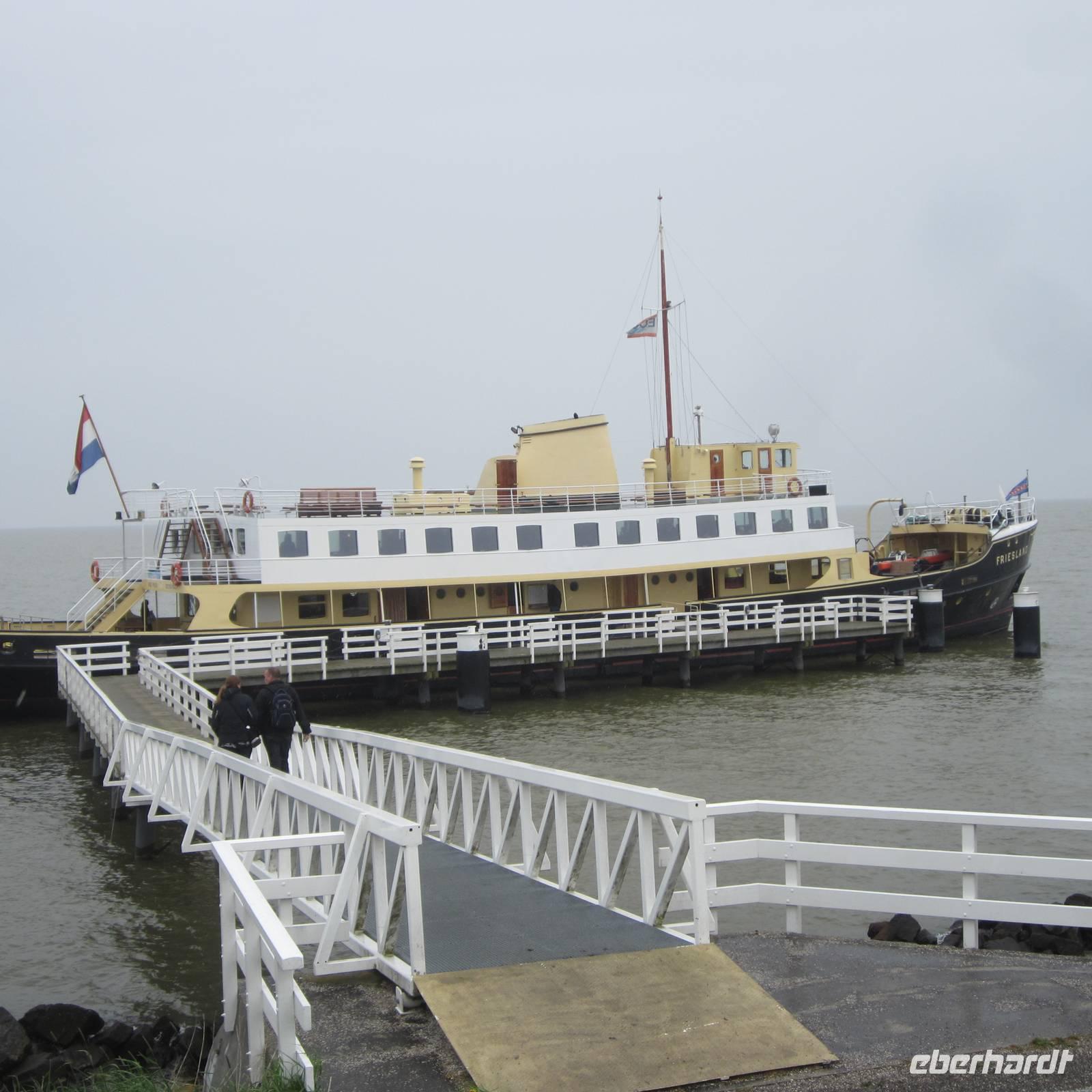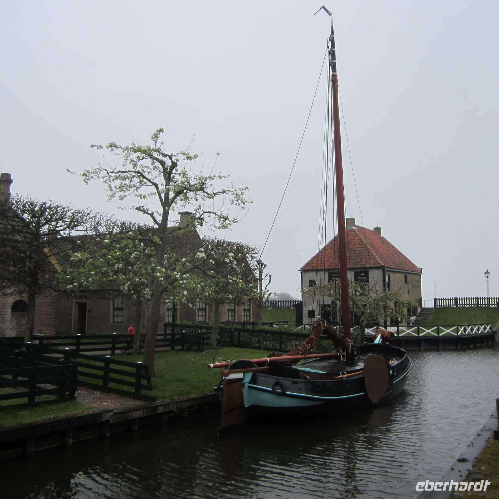 Bei unserer Reise werden die unterschiedlichsten Interessen angesprochen. Heute kommen die Eisenbahnfans auf ihre Kosten. Dazu fahren wir nach Hoorn am Zuiderzee. Eine der wichtigsten Hafenstädte im 16.Jahrhundert. Für uns ist es aber der Bahnhof der Dampfkleinbahn von 1885. Viele Fotos werden „geschossen" bevor die Bahn abfährt. Für uns ist ein Abteil reserviert.  Bei unfreundlichem Wetter erleben wir die Bahnfahrt und sehen die Tulpen auf den Feldern in voller Blüte. Trotz Regen haben wir eine unterhaltsame Fahrt auf der auch die typischen Poffertjes und Getränke im Zug angeboten werden.Nach einer Stunde kommen wir in Medemblik an und haben noch Zeit durch die Stadt  zu bummeln bevor wir dann mit dem Schiff nach Enkhuizen auf dem Ijselmeer unterwegs sind.