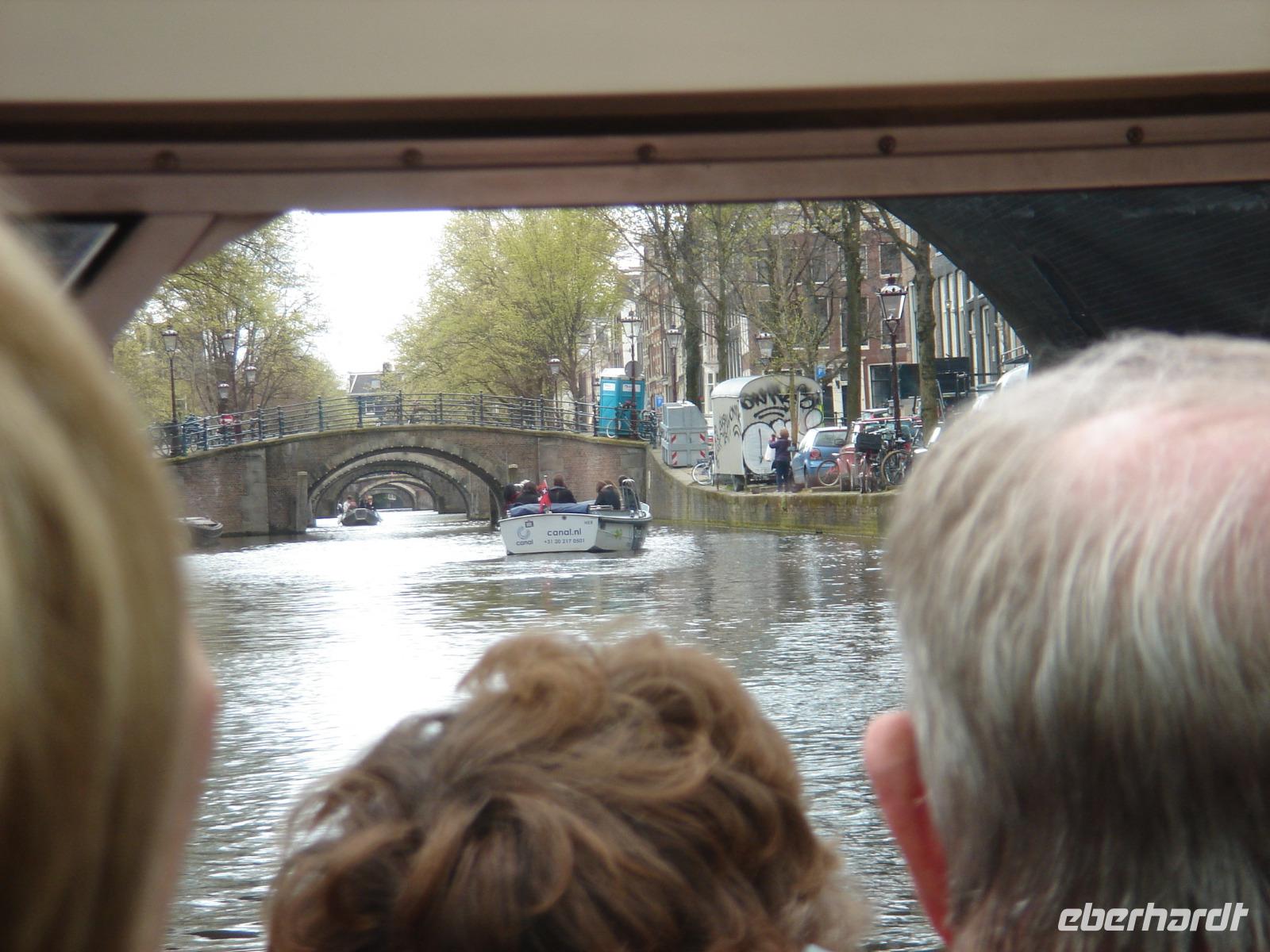 Nach einem guten Frühstück und kaum im Bus, klang aus den Lautsprechern ‚Komm, wir fahren nach Amsterdam', ehe wir nahe des Beginenhofs ausstiegen, Dieter Roch seinen Bus vor die Stadt brachte und Stefan Jahnke uns zum Beginenhof, von da durch recht lebendige Straßen zum wegen des bevorstehenden Königstages mit Buden vollgestellten Dam und weiter zum Hauptbahnhof führte, uns dabei Architektur und besondere Gebäude und Orte, Plätze, Grachten und deren Verbindung zur Geschichte der Stadt und des Landes erläuterte. Dann dauerte es gar nicht mehr lange und wir gingen an Bord. Eine reichliche Stunde fuhren wir nun durch die schmalen und breiteren Grachten, vorbei an Märkten, schiefen Häusern, Hausbooten, Museen und Coffeeshops, Kirchen und typisch niederländischen Brücken. Dann blieb ausreichend Zeit, um am Nachmittag zumindest einen kleinen eigenen Eindruck von der Stadt an der Amstel zu gewinnen. Die verbleibende Freizeit nutzten wir ganz individuell, bummelten oder saßen einfach in einem Kaffee, schauten auf die Grachten, auf denen wir eben noch fuhren, suchten kleine Mitbringsel aus und freuten uns, hier zu sein. Später trafen wir uns alle wieder. Dieter Roch brauchte durch den Feierabendverkehr, vorbei an einigen Staus, etwas länger zu uns, aber da wir die Zeit nutzten, um noch einiges zu erspähen oder uns über Gesehenes und Erlebtes auszutauschen, wurde sie uns nicht lang. Dann ging es mit neuen Eindrücken und einigen Informationen von Stefan souverän von Dieter Roch gesteuert zurück zum Hotel, zum gute Abendessen und zur Vorbereitung auf unseren nächsten Ausflugstag in den Niederlanden.