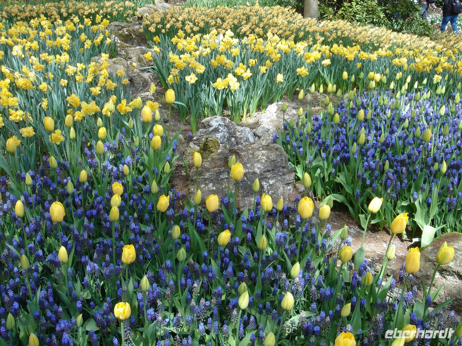 Die Niederlande und ihr Käse, die alte Seefahrernation und ihre Holzschuhe. Ehe es an diesem Tag zu den Tulpen ging, machten wir Halt für ein Gruppenfoto an einer typischen Holländermühle und fuhren dann weiter zu den Rembrandthoeven nahe Amsterdams und schauten dem Bauern zu, wie er seinen Käse herstellt und seine Schuhe aus einfachem Buchenholz macht. Natürlich hatten wir Gelegenheit, zu probieren, und wer wollte, konnte auch etwas von alledem für zuhause mitnehmen. Doch dann rief der Bus. Vorbei am Amsterdamer Flughafen Schiphol erreichten wir mit vielen anderen Bussen gemeinsam den Keukenhof, wo uns Stefan Jahnke unsere Eintrittskarten übergab. Dann schauten wir uns die Pracht und einen Großteil der Pflanzungen der 99 Hofgärtnereien der Niederlande an, bewunderten mit vielen erwartungsvollen Gästen aus aller Welt gemeinsam die Blumenpracht in den Pavillons, sahen niederländische Tänze und einigen typischen Gewerken und deren Machern über die Schultern. Nicht umsonst stand der Hof und ehemalige Küchengarten (Keukenhof) dieses Jahr ganz unter dem Motto des ‚Goldenen Zeitalters' der Niederlande. Später hatten wir gar Gelegenheit, selbst Zwiebeln mitzunehmen. Wir werden versuchen, sie auch zuhause zum Blühen zu bringen. Doch nun sahen wir, was uns noch einmal mehr begeisterte. Viele waren nur darum gekommen, die halbe Welt schien sich an den Straßen um Lisse herum zu versammeln. Schließlich kamen sie, die rund 50 festlich mit Tulpen und anderen Blumen geschmückten Wagen, auf denen Schaubilder ganz aus Blüten entstanden. Ein tolles Erlebnis und auch gut, dass unser Reiseleiter Stefan Jahnke uns einen guten Platz für unseren Bus sicherte. So konnten wir nach diesem Erlebnis als einer der ersten Busse den Keukenhof verlassen und erreichten zwar spät, aber noch zur rechten Zeit unser Hotel für ein gutes Abendessen nach diesem schönen, wenn auch anstrengenden Tag.