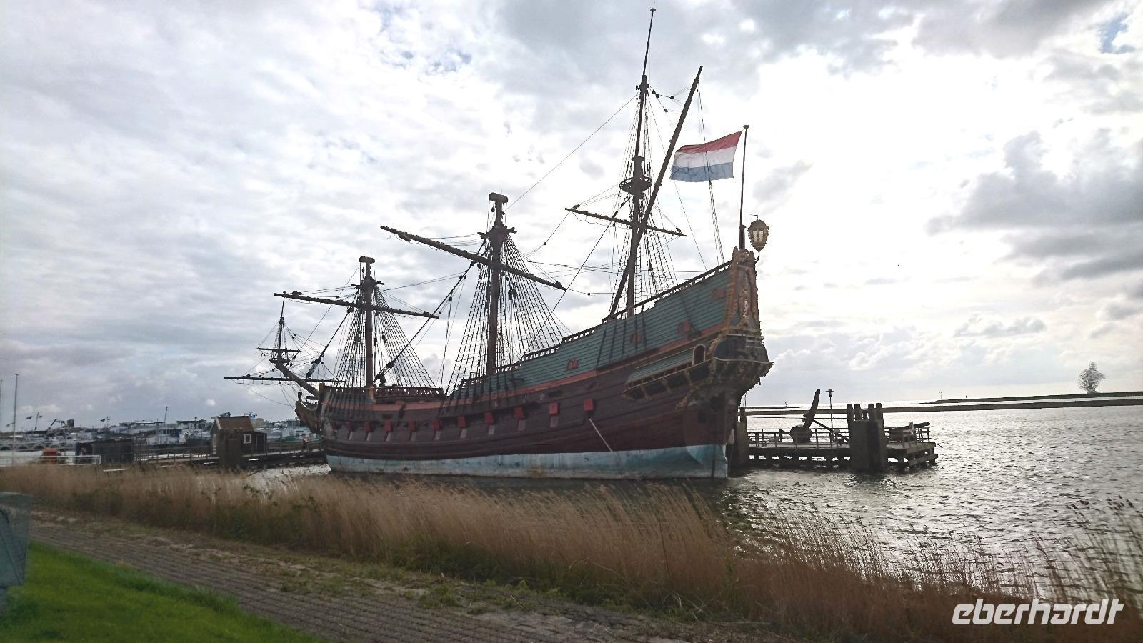 Wer hat etwas auf meinen Sitz gestellt? Diese Frage beschäftigte uns alle am Morgen beim Besteigen unseres Busses vor dem Hotel. Der Osterhase war da und brachte uns allen Tulpenzwiebeln in hübscher Aufbereitung. Na eben, ging uns durch den Kopf, bei all den Erlebnissen der vergangenen tage vergaßen wir es fast. Heute war ja Ostersonntag! Sogar die kleinen Hasen sahen wir, denn unweit des Hotels gruben die sich einen lang gestreckten Bau und rannten an diesem Morgen vielleicht gerade wegen des Osterfestes besonders aktiv herum. Aktiv waren jedoch auch die Niederländer in allen für uns mit ihnen in Zusammenhang zu bringenden Jahrhunderten. Nicht nur in Europa waren sie bekannt, sondern wurden eine wahre Seemacht, hatten in ihrer glorreichen Vergangenheit nicht nur die Gewürzhandelslinien zwischen Asien und Europa unter ihrem Einfluss, sondern waren auch bekannt als Entdecker verschiedener Landstriche fernab von Holland, brachten große Maler hervor und beteiligten sich leider auch am Sklavenhandel zwischen Europa, Afrika und Amerika. In die Geschichte dieses Landes wollten wir heute noch etwas mehr eintauchen und fuhren nach Hoorn, einem einst wichtigen Hafen an der alten Zuidersee. Als die Häfen an diesem Binnenmeer mit Zugang zur Nordsee mehr und mehr versandeten, gab man die gesamte Zuidersee auf und begann eines der größten Landgewinnungsprojekte der Welt, schuf neue Polder, baute Deiche und Dämme und verwandelte große Teile der alten Zuidersee zum Ijselmeer. Vom einstigen Glanz der Orte an der Zuidersee künden noch alte Bauten und die Dampfeisenbahn, mit der wir nun von Hoorn aus nach Medemblik fuhren, unterwegs nicht nur viele Tulpenfelder sahen, sondern auch Poffertjes probierten. In Medemblik angekommen, sahen wir noch eine einst starke Handels- und Hafenstadt und fuhren von da mit einem alten Dampfschiff, der MS Friesland, weiter in ein Museum. Hatten wir bisher den Eindruck, uns soundso schon im Museum zu bewegen, kamen wir nun wirklich in eines, probierten an einer alten Räucherei frisch aus dem Rauch Hering oder Lachs, schauten alte Straßenzüge und Häuser an, bewunderten alte Gewerke und trafen uns nach einiger Zeit am Ortsausgang Enkhuizen des Museums, von dem wir gemeinsam mit Stefan einen kleinen Stadtspaziergang zum Bahnhof Enkhuizen unternahmen, wo Dieter Roch bereits mit unserem Bus auf uns wartete. Das waren tolle Erlebnisse! Aber damit nicht genug... Nun ging es über den Markermeerdijk hinüber nach Lelystad dabei sahen wir einige weitere Landgewinnungsaktionen der Niederländer im Markermeer und im Ijselmeer, besuchten dann noch kurz die Bataviawerft, wo wir den Nachbau eines alten Ostindienseglers der Vereinigten Niederländischen Ostindien Companie (VOC) sahen, ehe es über den Polder von Flevoland zurück zu unserem Hotel und damit zum baldigen Abendessen und Tagesausklang ging.