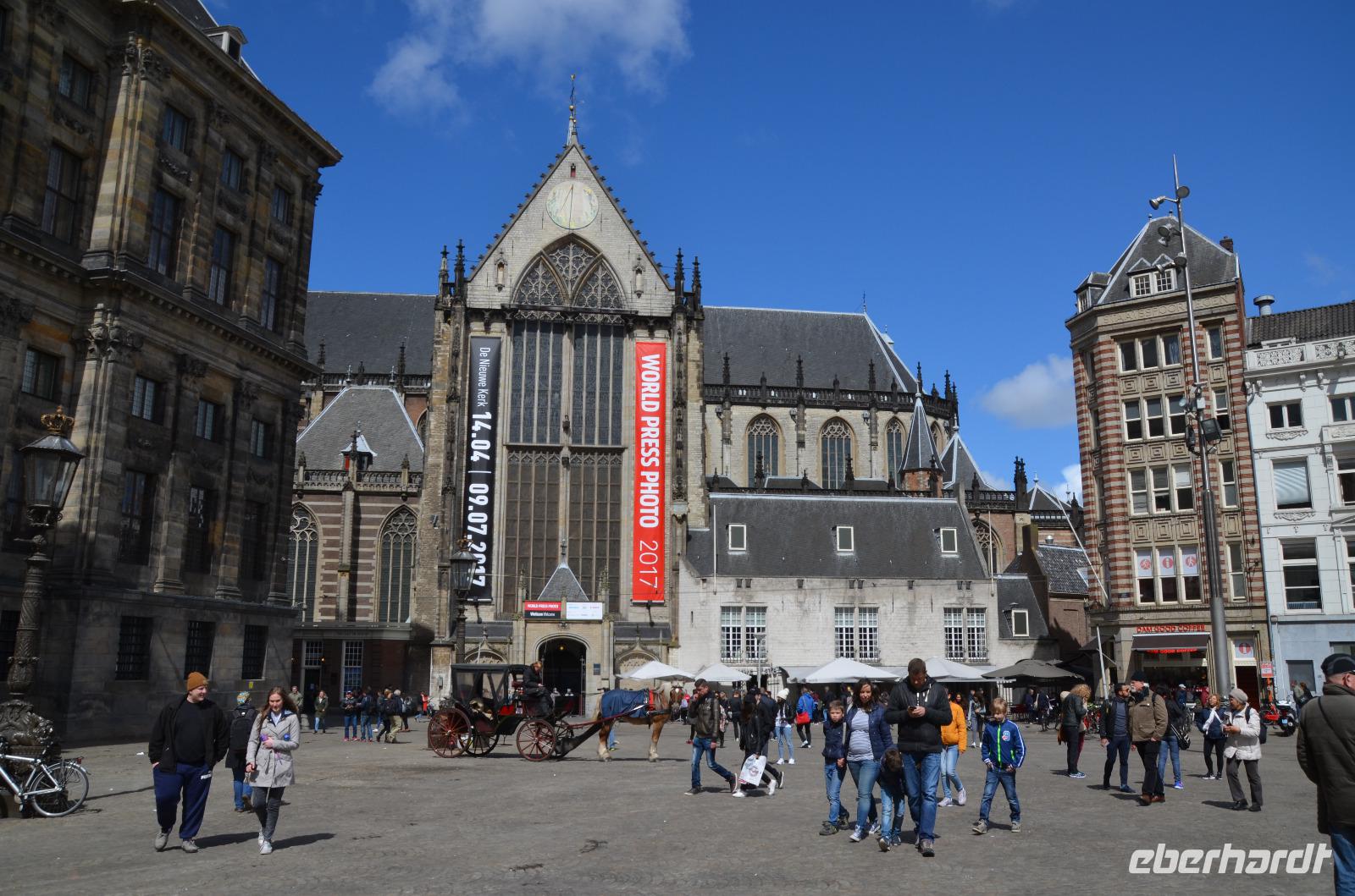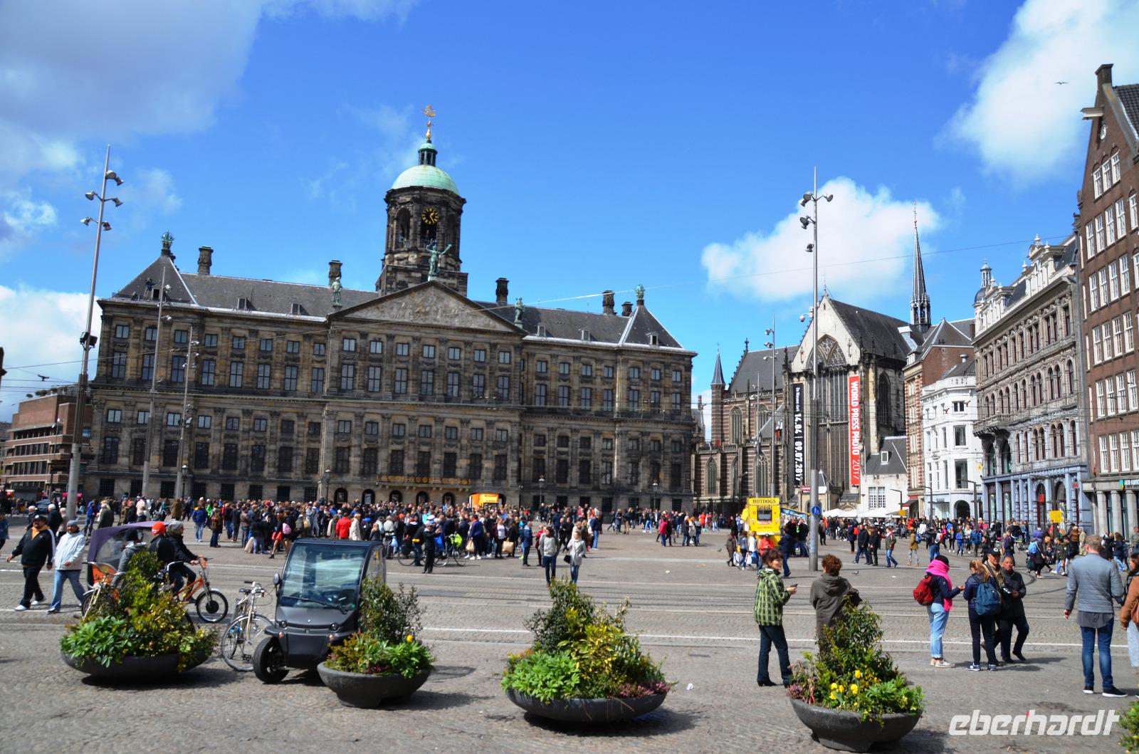 Nach dem Ende Grachtenfahrt unternehmen wir einen gemeinsamen Spaziergang mit Erklärungen über den Damrak, die Einkaufsstraße Nieuwendijk zum Dam. Hier sehen wir das Alte Rathaus (jetzt Königliches Palais), die Neue Kirche und das Nationalmonument.