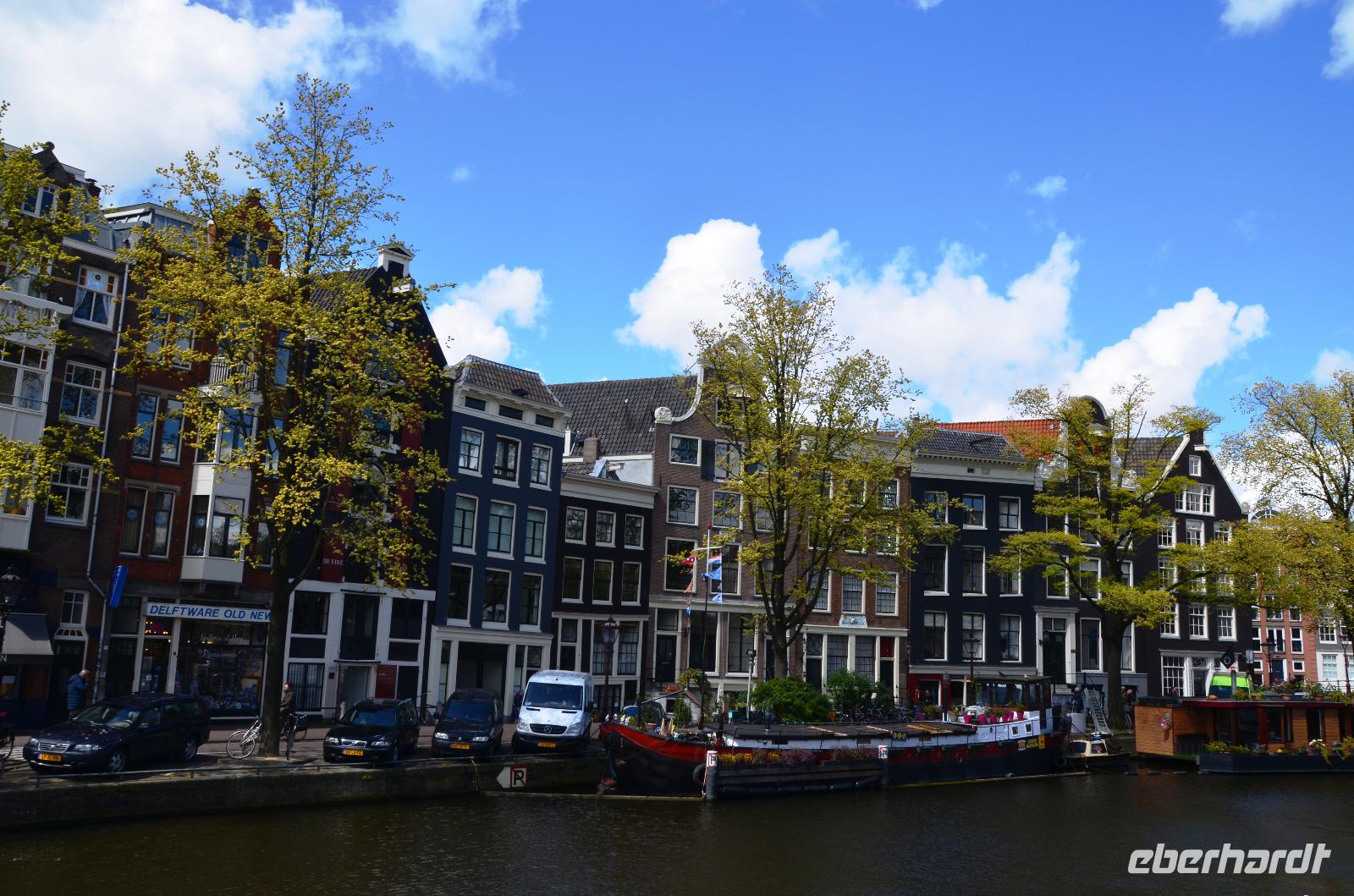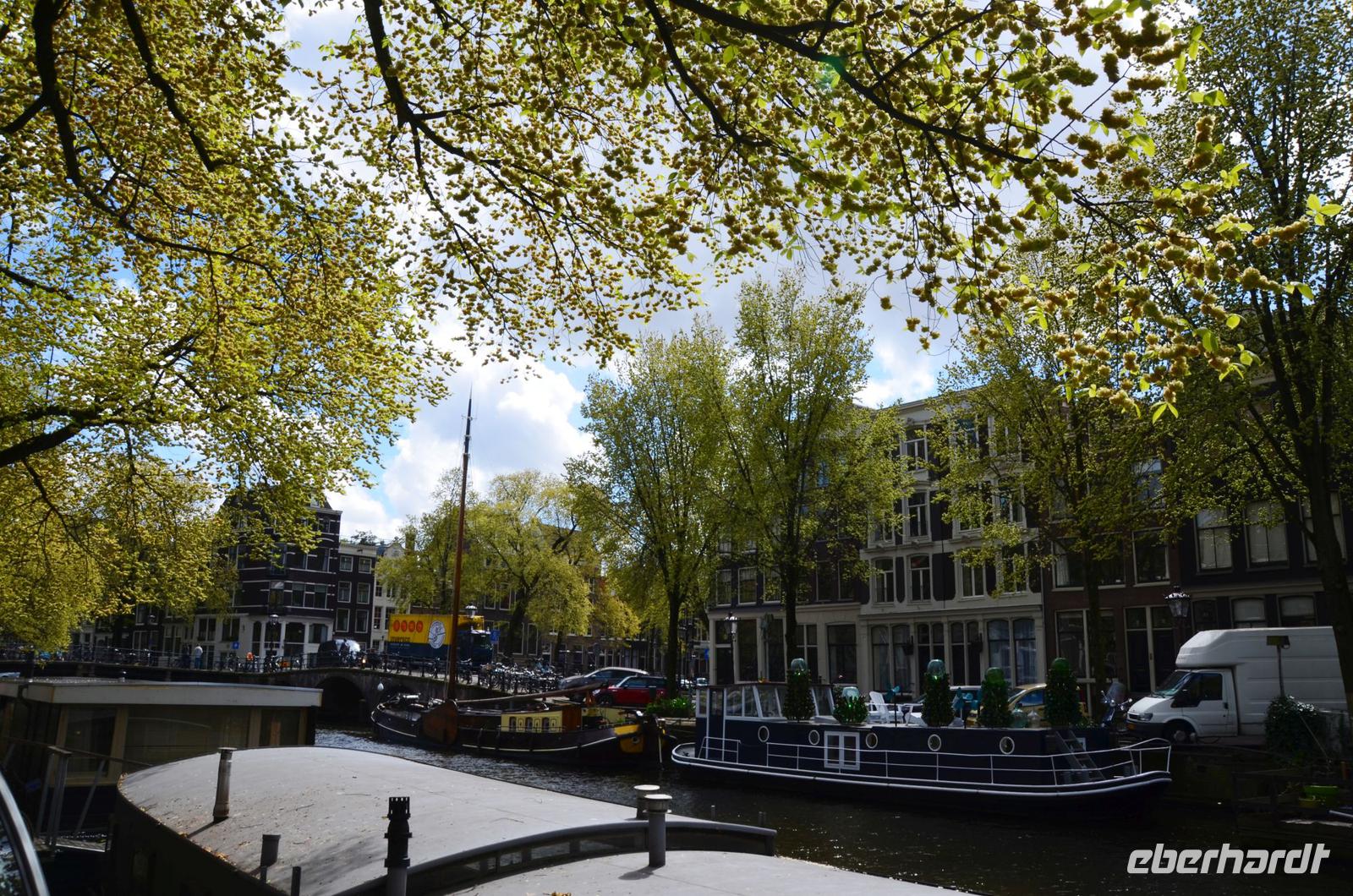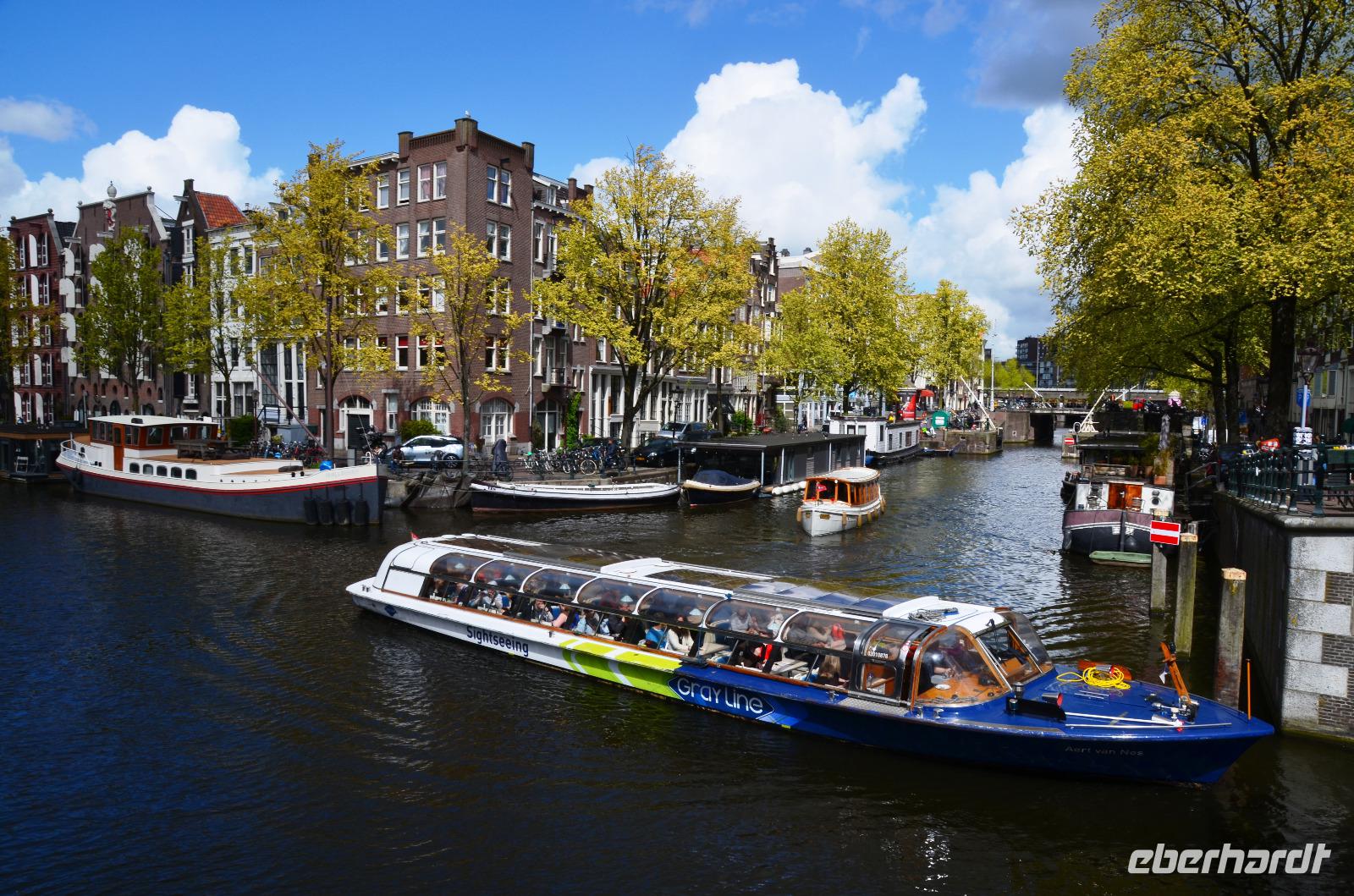 Wir finden in dem schwarz-orangen Panoramaboot alle ein schönes Plätzchen und ausgestattet mit Audioguides folgen wir den Ausführungen zur Geschichte der Stadt und den schönen Grachten Amsterdams - die Außen IJ, die Prinsengracht und die Königs- und Kaisergracht, aber auch viele Nebenkanäle erleben wir auf unserer Fahrt um die Stadt.