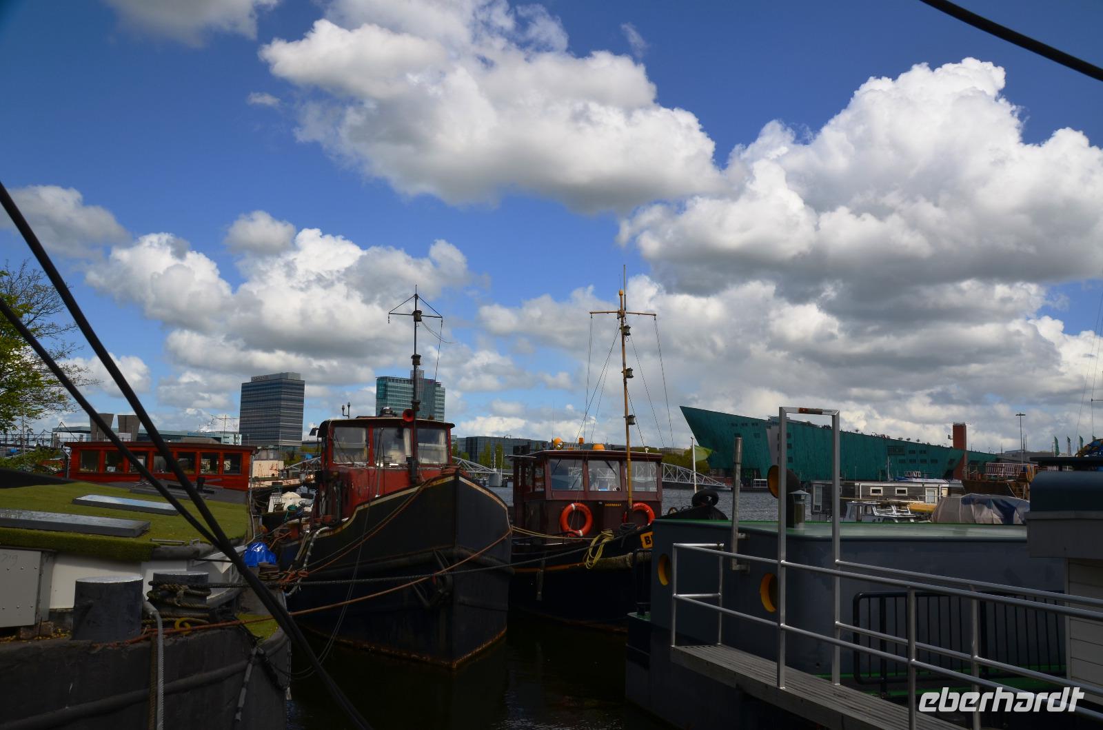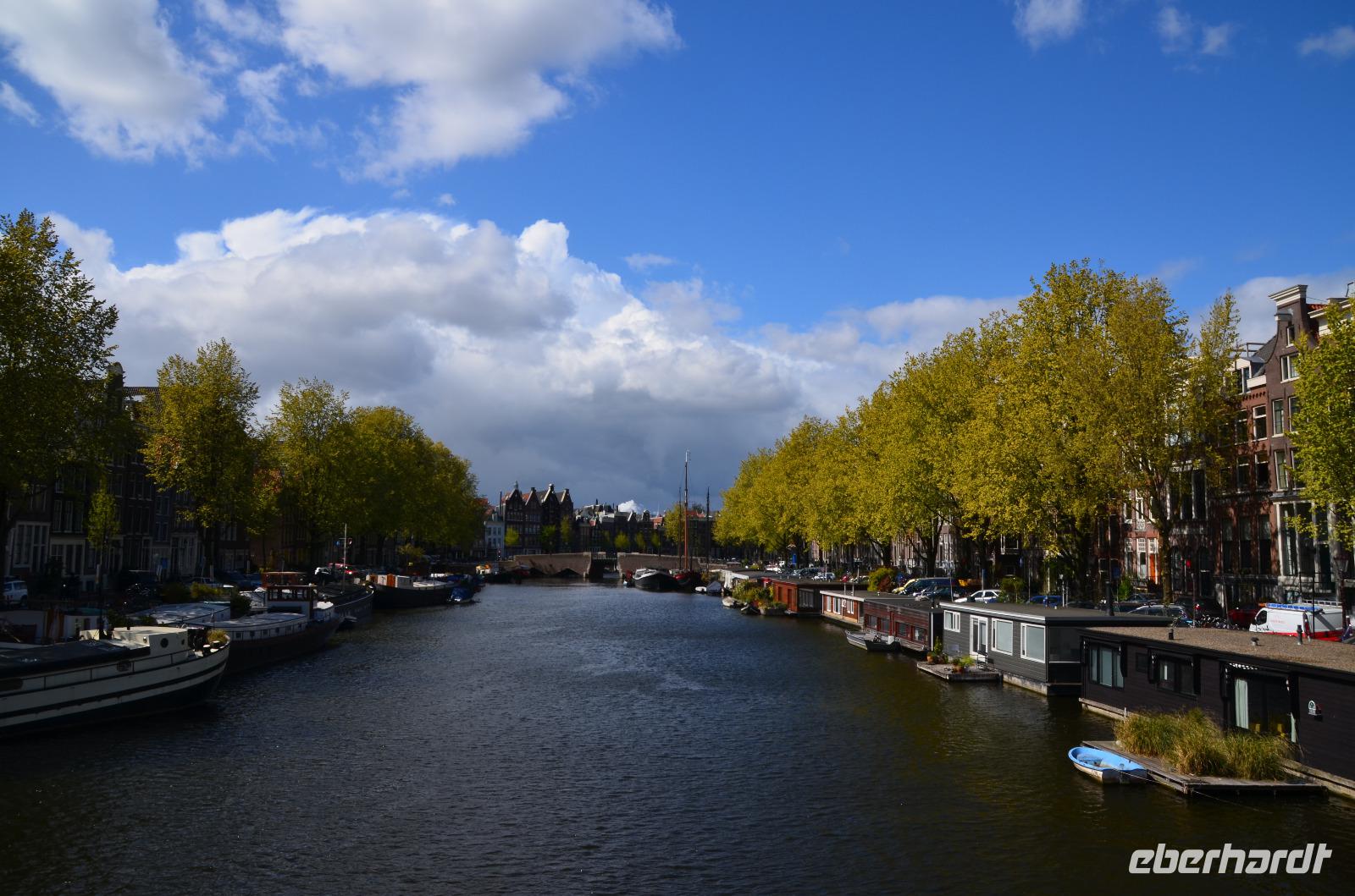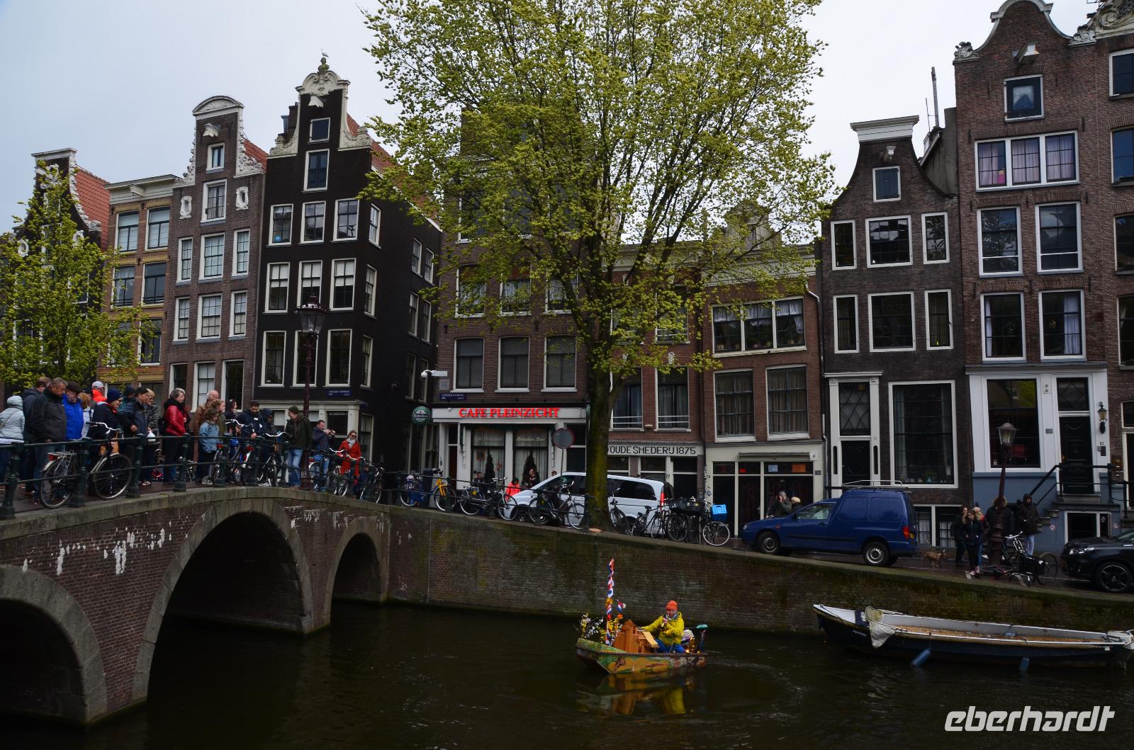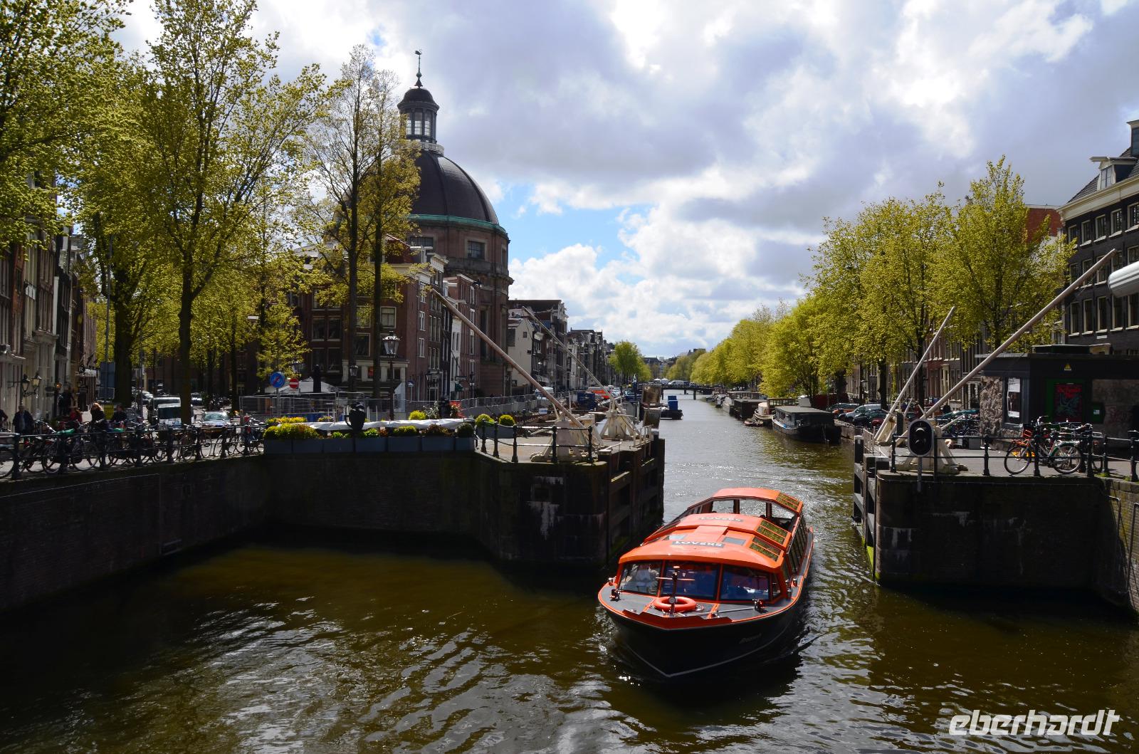 Wir finden in dem schwarz-orangen Panoramaboot alle ein schönes Plätzchen und ausgestattet mit Audioguides folgen wir den Ausführungen zur Geschichte der Stadt und den schönen Grachten Amsterdams - die Außen IJ, die Prinsengracht und die Königs- und Kaisergracht, aber auch viele Nebenkanäle erleben wir auf unserer Fahrt um die Stadt.