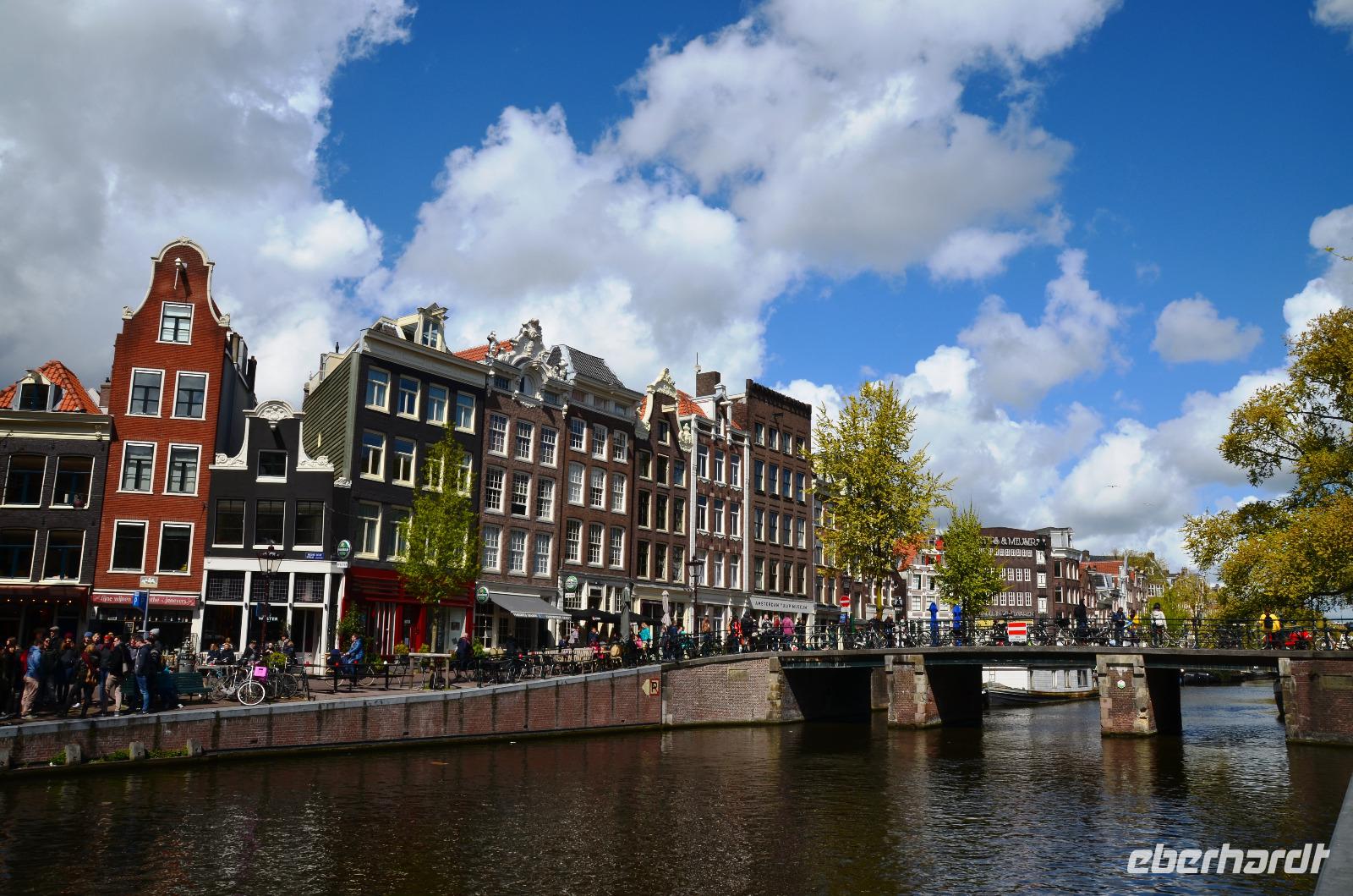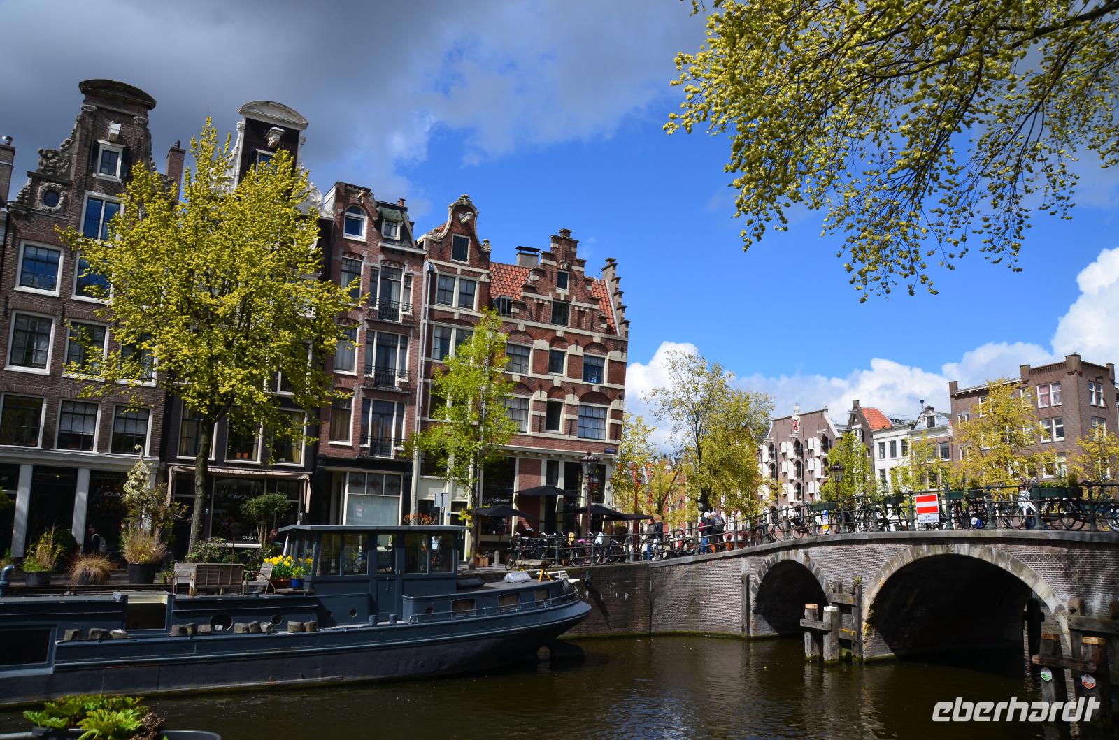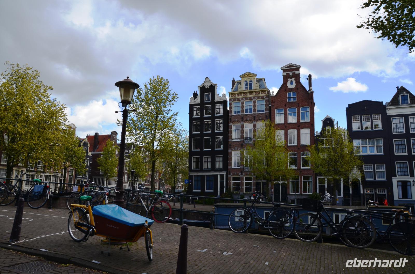 Wir sehen Hausboote, Patrizierhäuser mit reichem Giebelschmuck, Kirchen, moderne Architektur, Jugendstil, Zugbrücken und Wehrtürme. Und überall am Ufer Fahrräder.