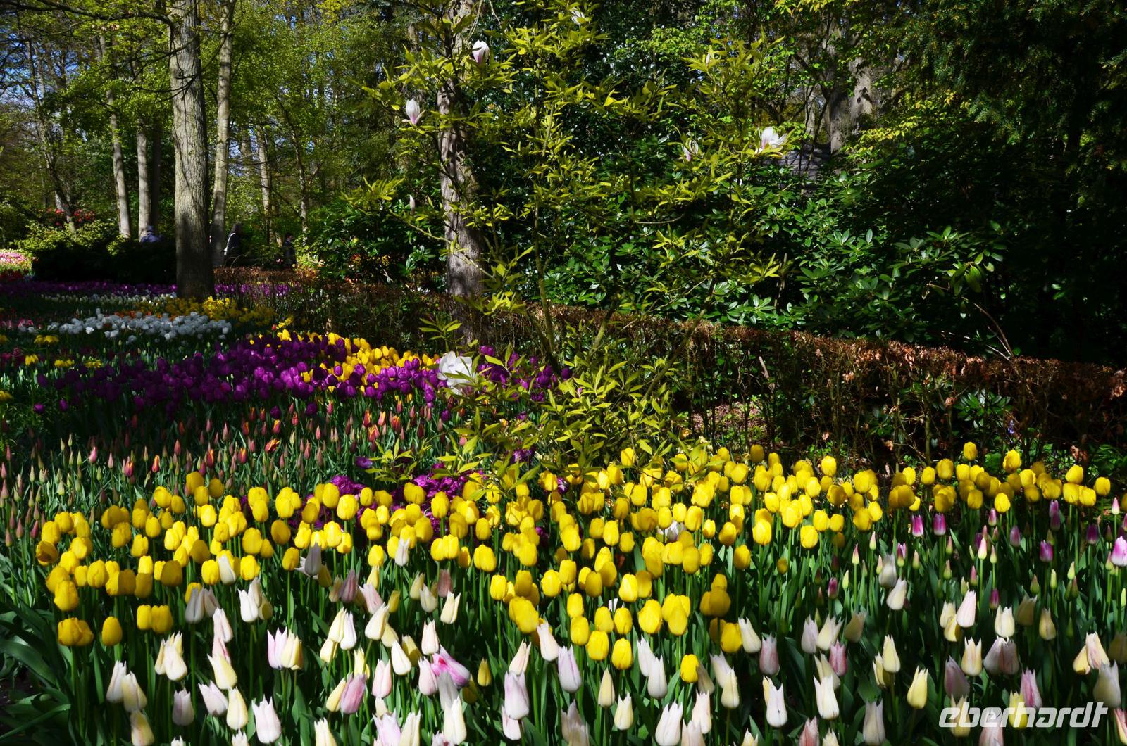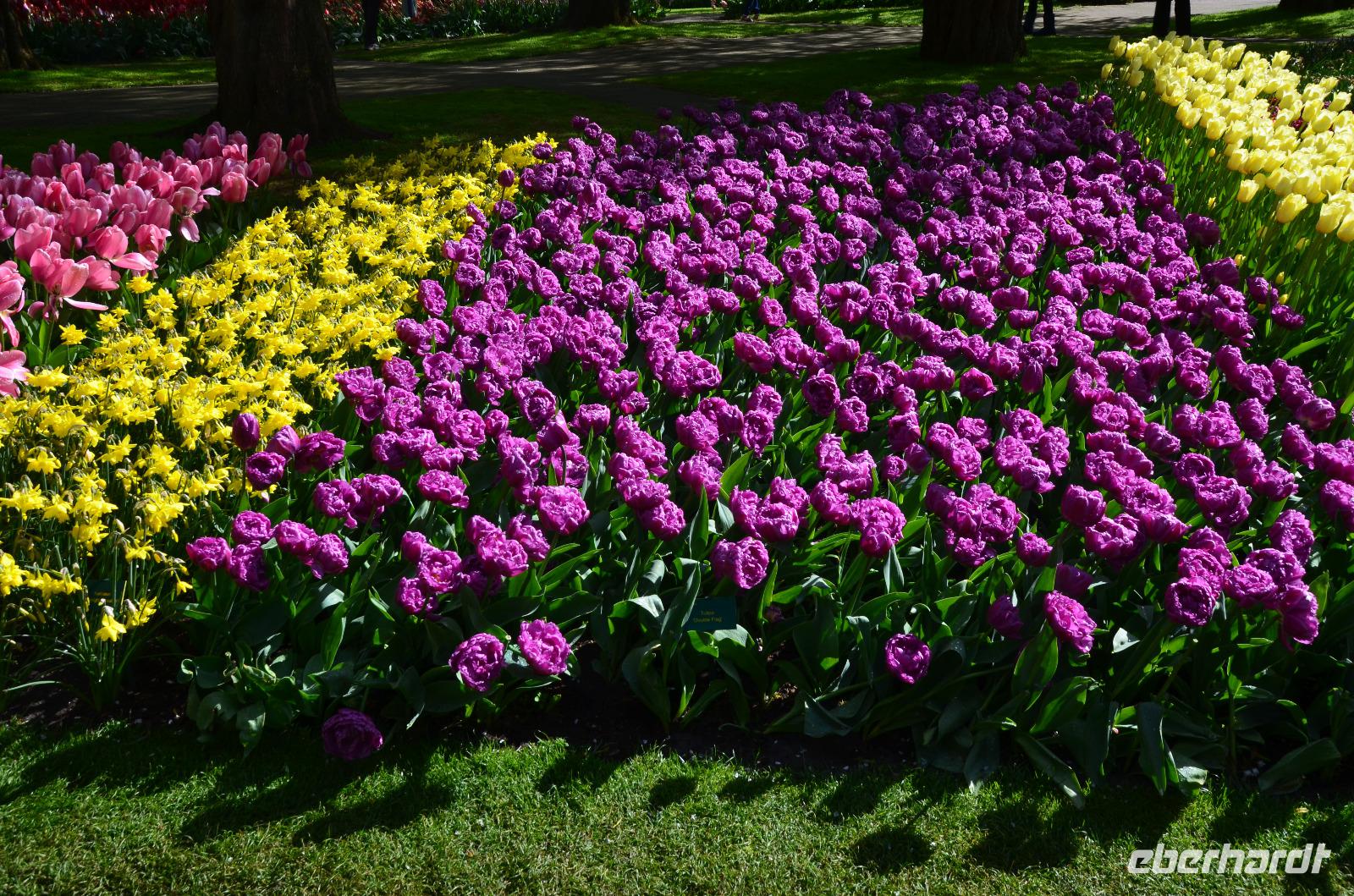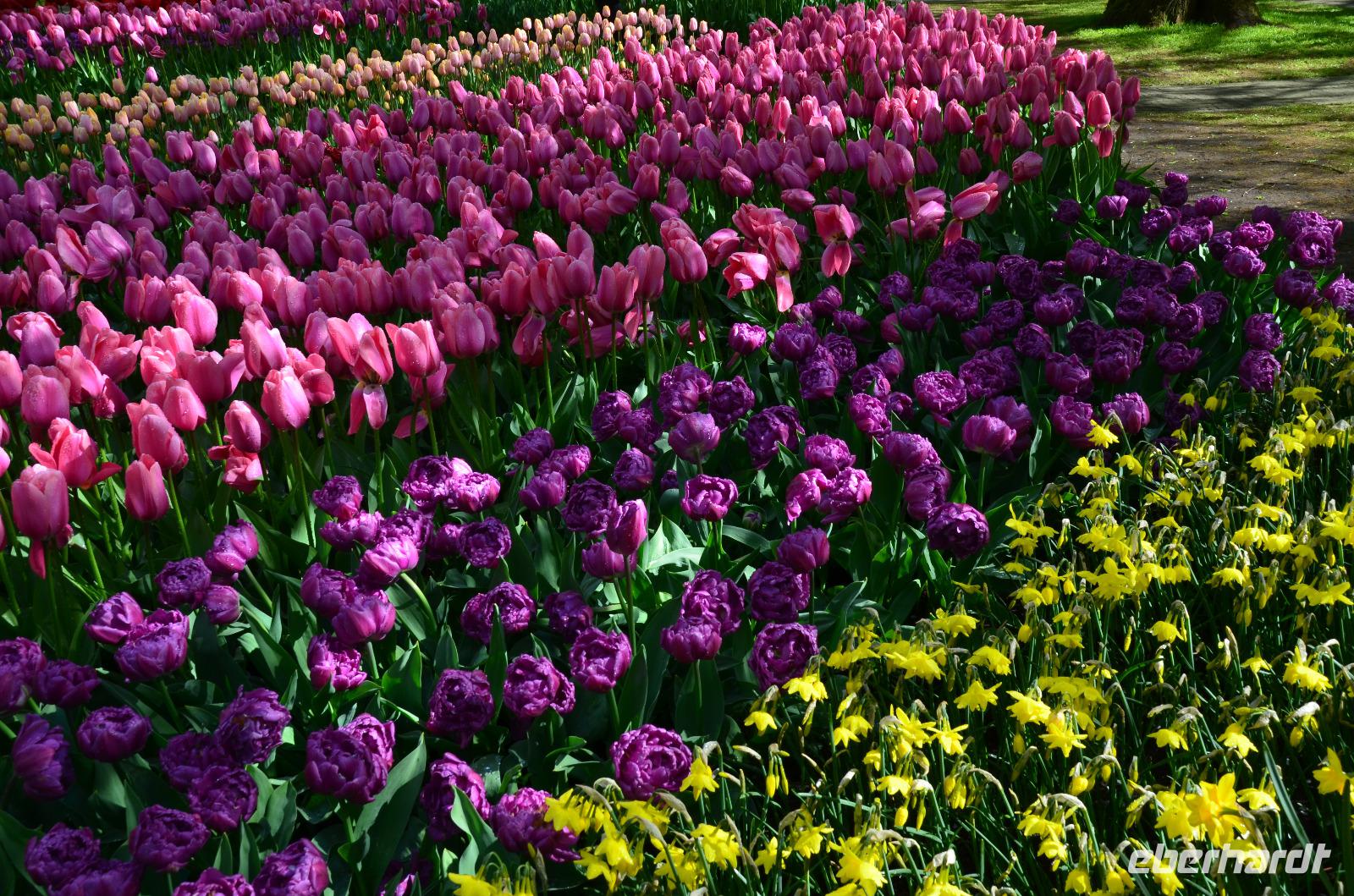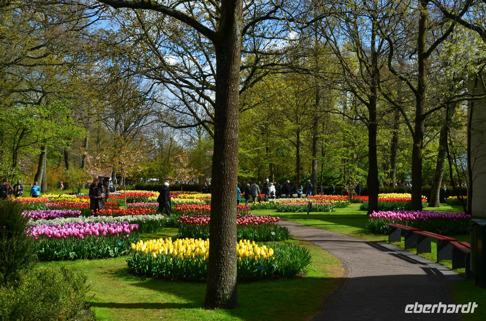 Ab 07:00 Uhr frühstücken wir und fahren dann erneut nach Westen, hinein nach Holland, um Amsterdam herum, vorbei am Flughafen nach Lisse, zum Keukenhof, Hollands berühmtesten Blumengarten. Am Keukenhof ist alles bestens organisiert. Wir werden zum Busparkplatz eingewiesen, erhalten schnell unsere Tickets, dazu Übersichtspläne und schon kann die Besichtigung beginnen, natürlich individuell, damit jeder seinen Interessen folgen kann.