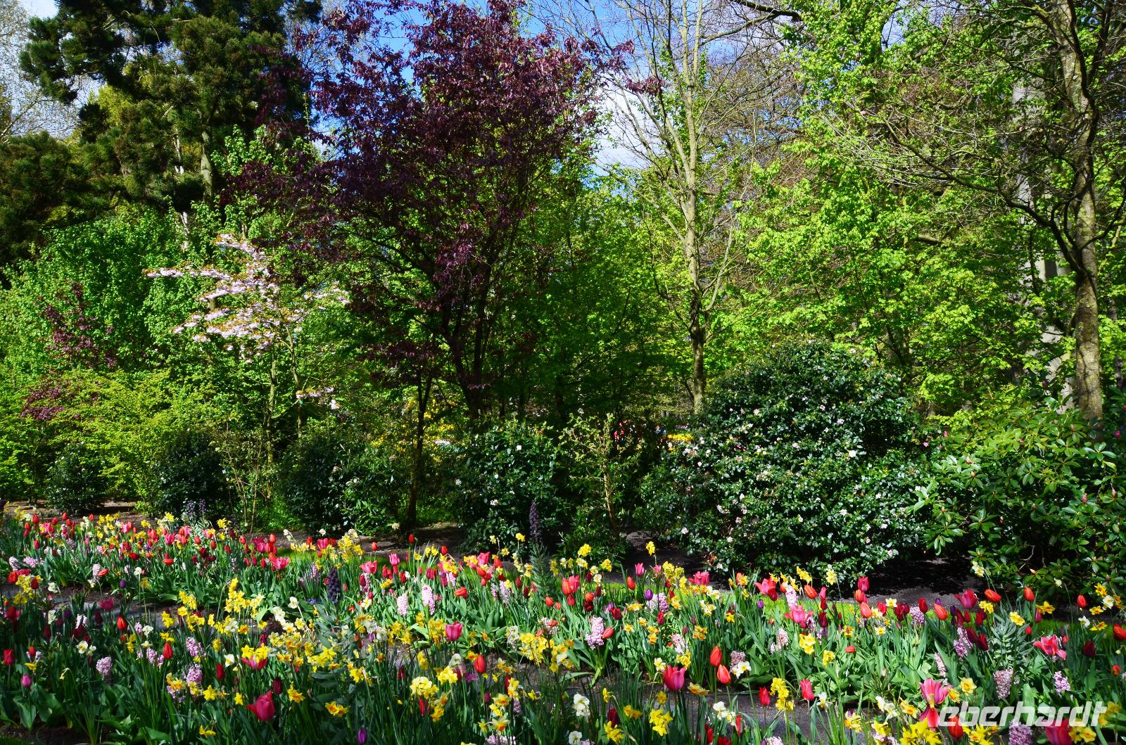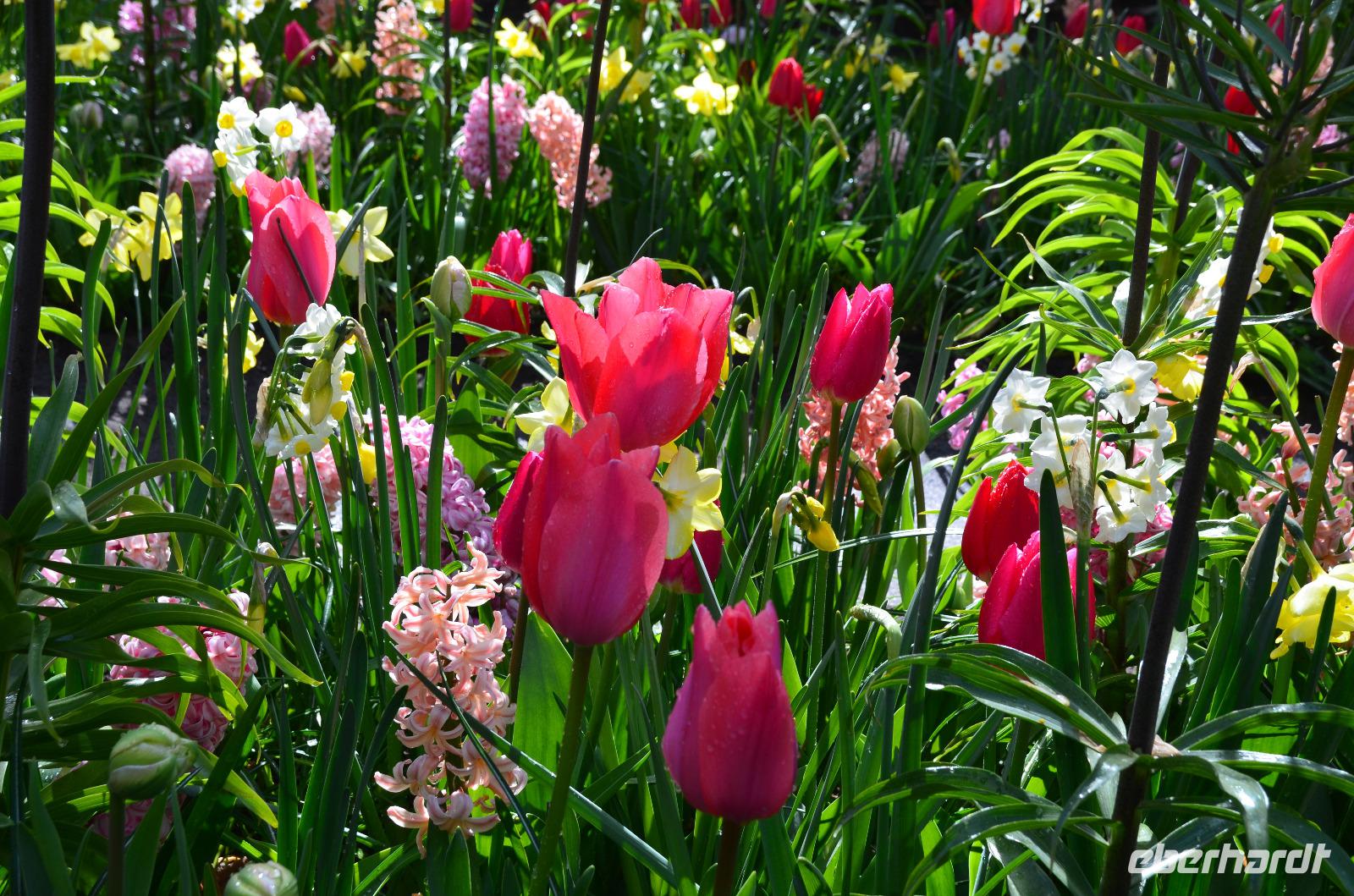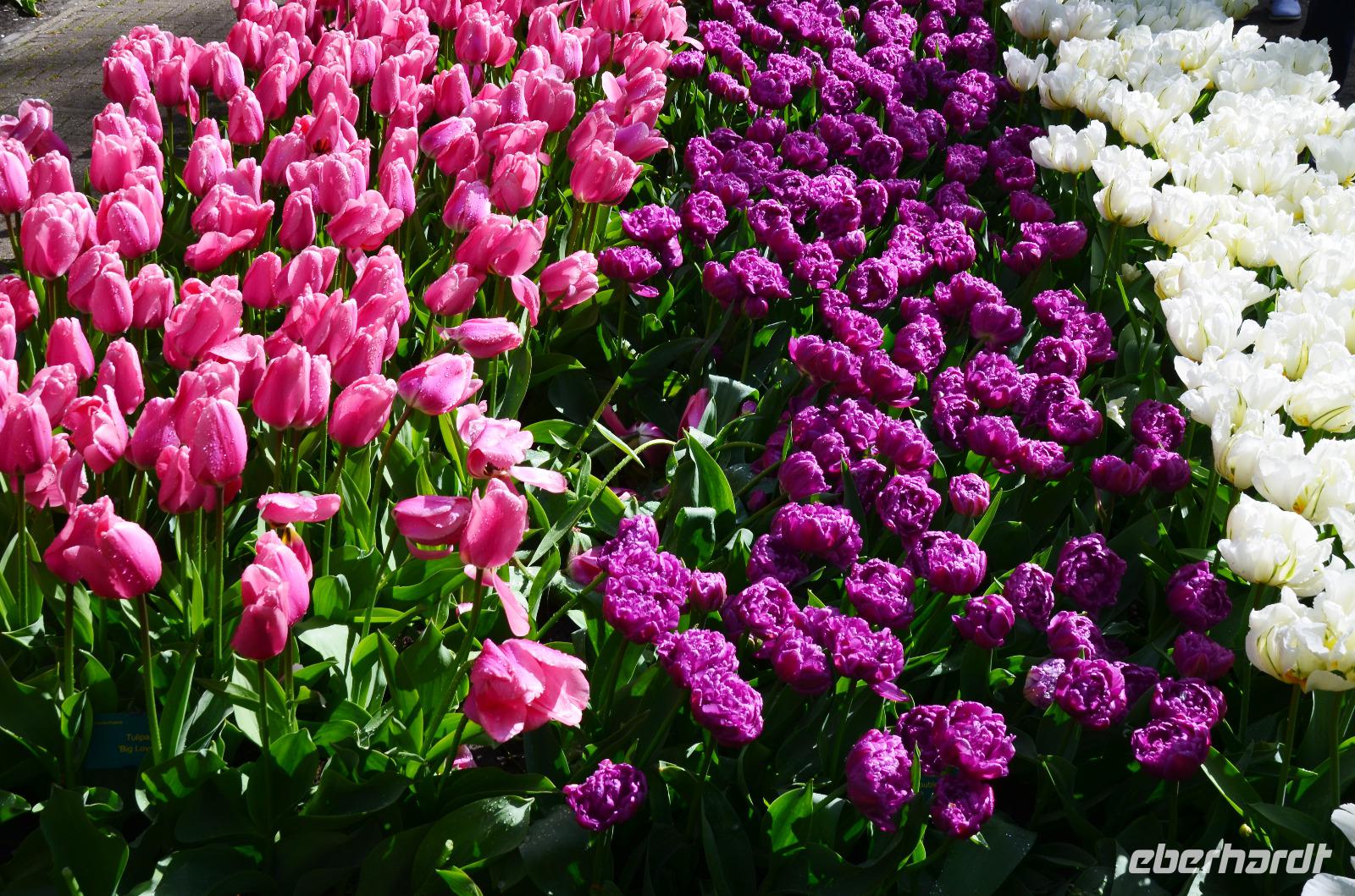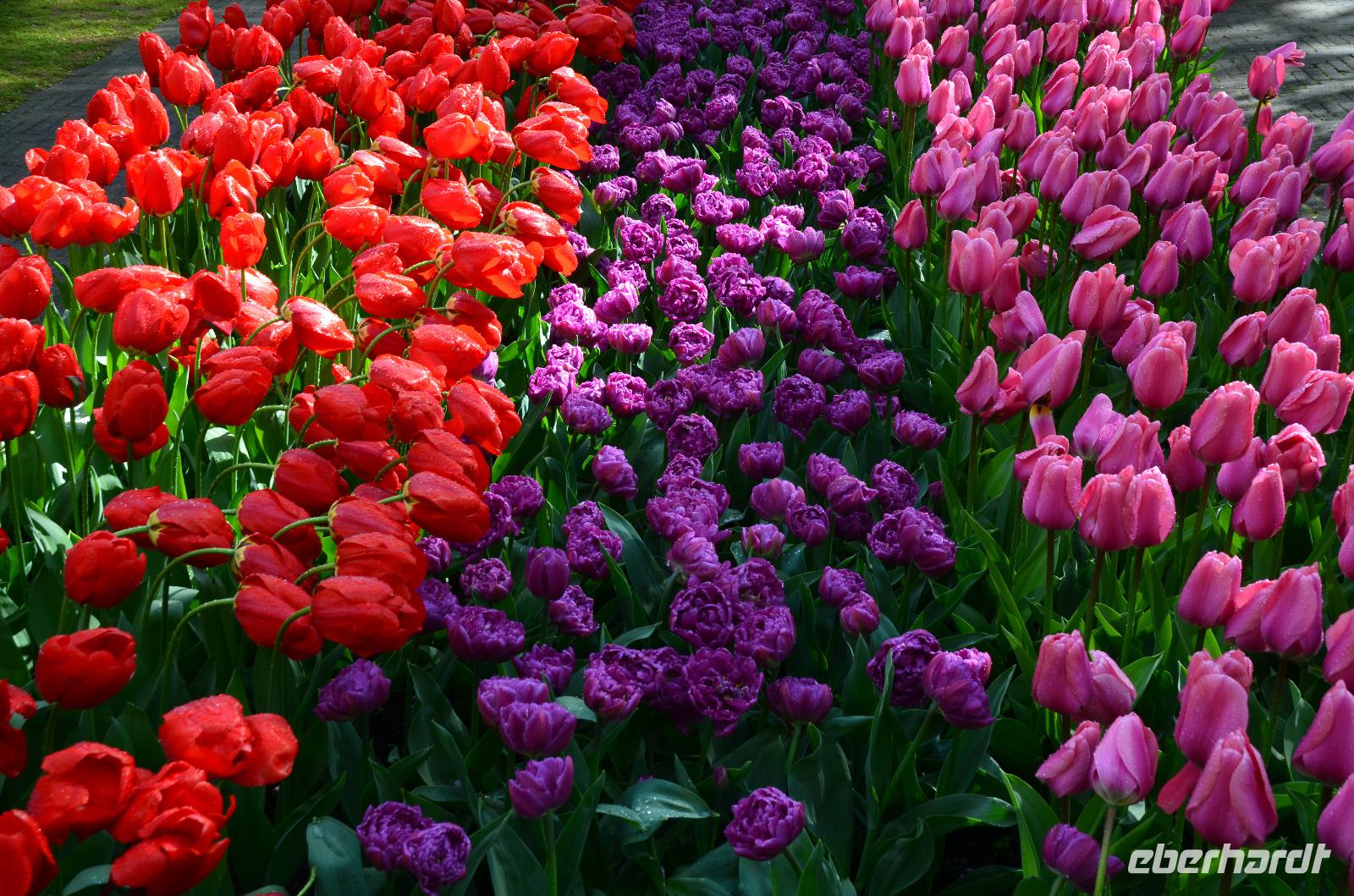 Ab 07:00 Uhr frühstücken wir und fahren dann erneut nach Westen, hinein nach Holland, um Amsterdam herum, vorbei am Flughafen nach Lisse, zum Keukenhof, Hollands berühmtesten Blumengarten. Am Keukenhof ist alles bestens organisiert. Wir werden zum Busparkplatz eingewiesen, erhalten schnell unsere Tickets, dazu Übersichtspläne und schon kann die Besichtigung beginnen, natürlich individuell, damit jeder seinen Interessen folgen kann.