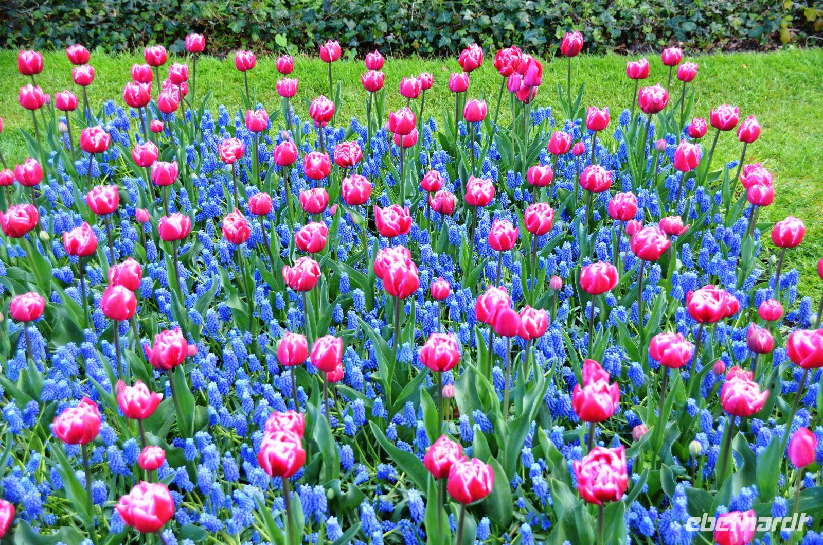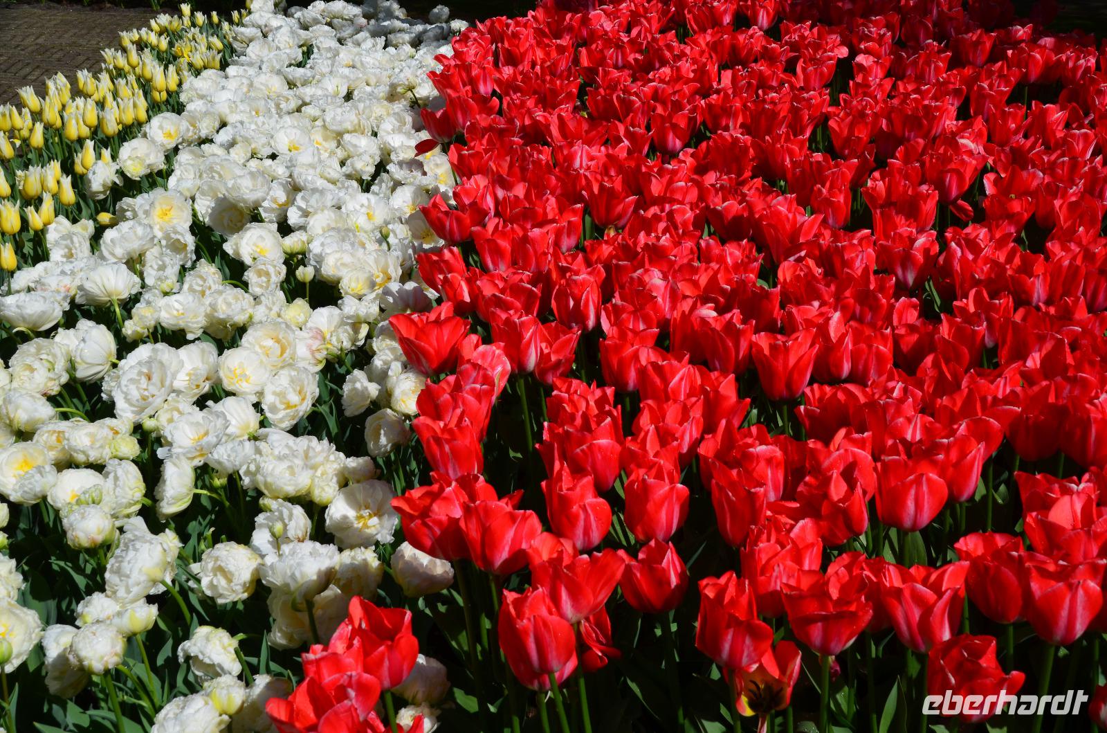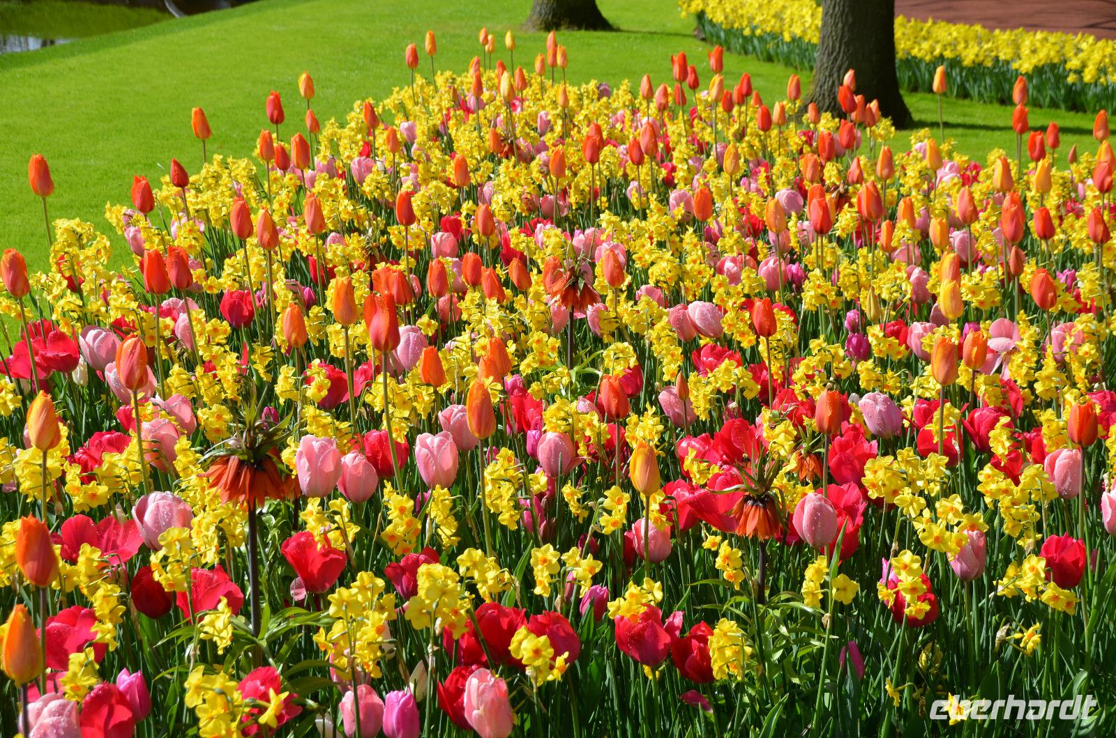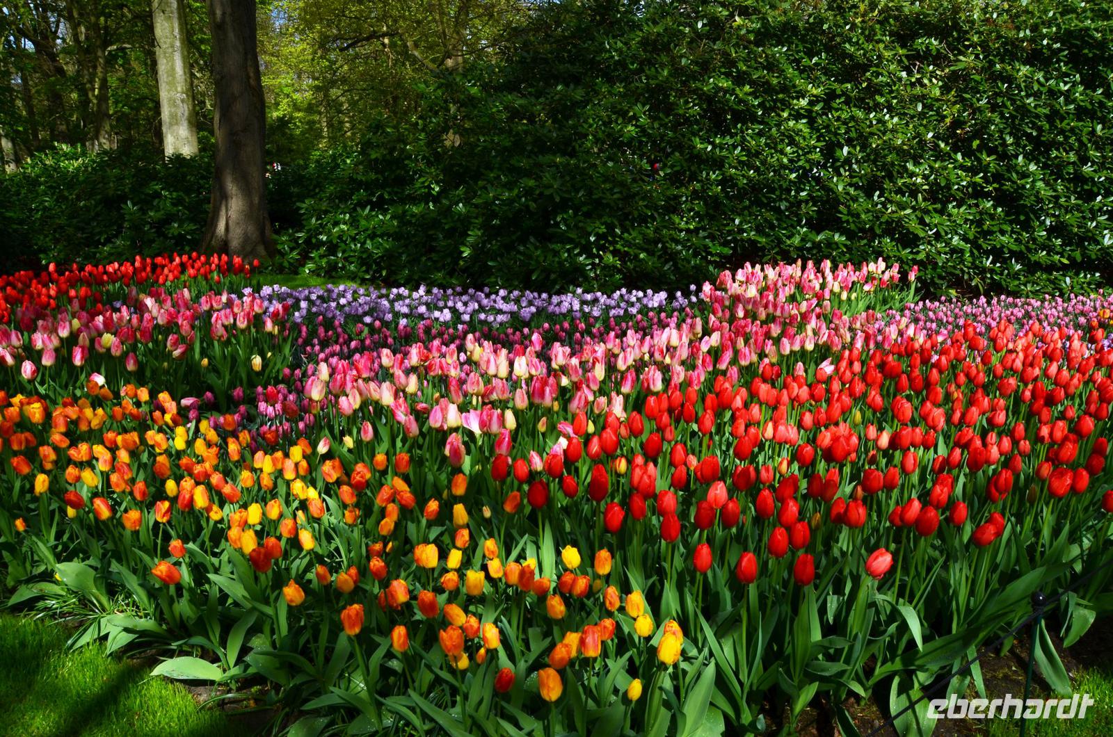 Ab 07:00 Uhr frühstücken wir und fahren dann erneut nach Westen, hinein nach Holland, um Amsterdam herum, vorbei am Flughafen nach Lisse, zum Keukenhof, Hollands berühmtesten Blumengarten. Am Keukenhof ist alles bestens organisiert. Wir werden zum Busparkplatz eingewiesen, erhalten schnell unsere Tickets, dazu Übersichtspläne und schon kann die Besichtigung beginnen, natürlich individuell, damit jeder seinen Interessen folgen kann.