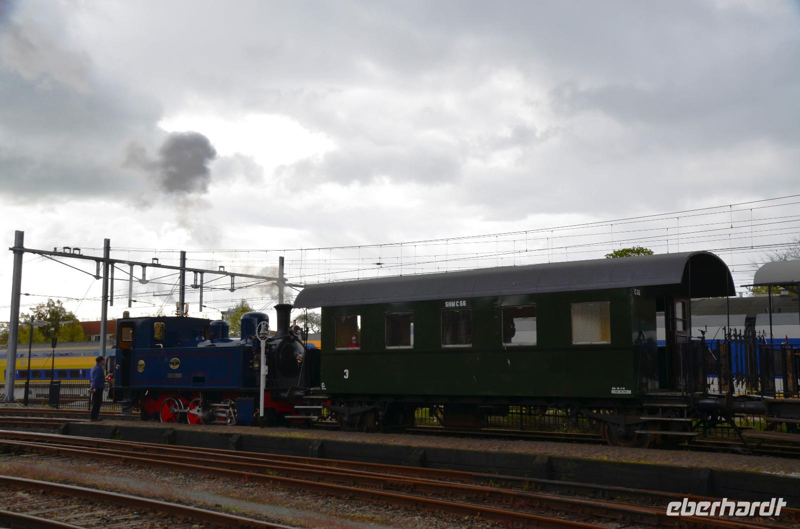 Später erreichen wir den Bahnhof Horn, wo für unserer Gruppe ein Waggon der Museumstoombahn reserviert ist.