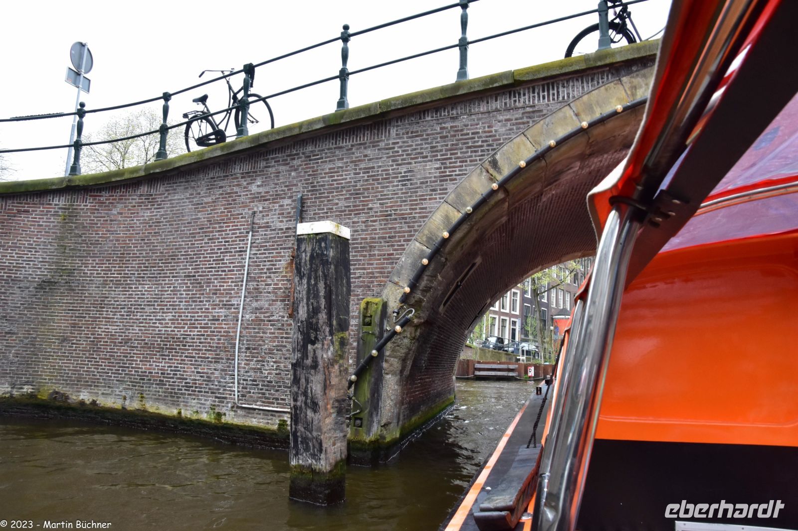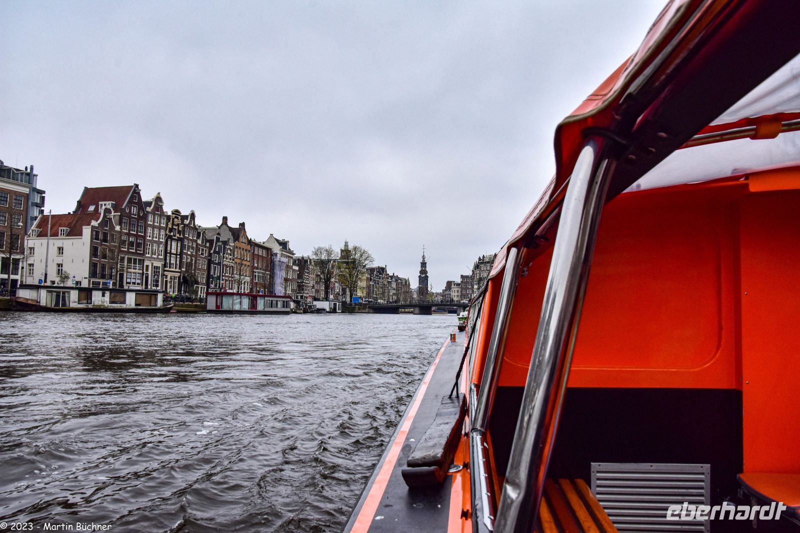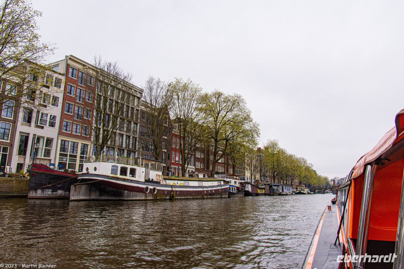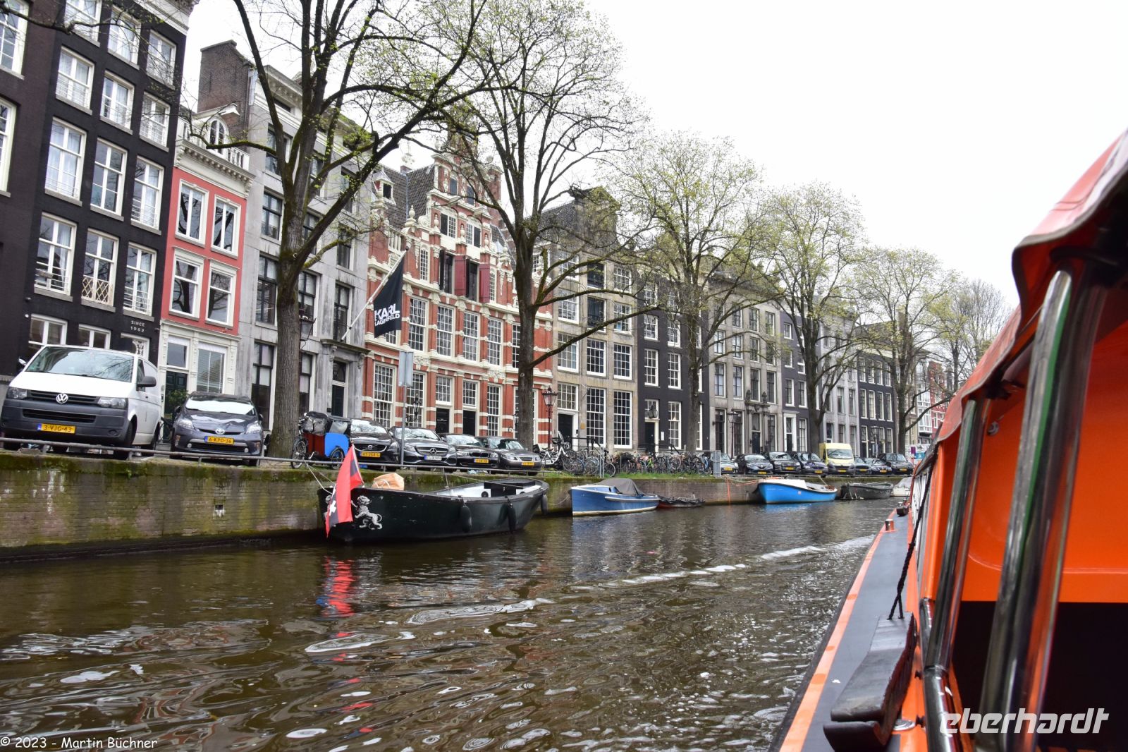 Wir beginnen den Tag mit einer typischen Grachtenrundfahrt. Von der Centraal-Station, dem Hauptbahnhof Amsterdams geht es zunächst bis zur Amstel, dem namensgebenden Fluss in Amsterdam. Dort steht die „Magere Brug“, eine der letzten hölzernen Holländer-Zug-Brücken. Sie wurde im ausgehenden 17. Jh. errichtet und ist nachts mit vielen Lampen illuminiert. Von der Amstel biegen wir in die Herrengracht ab, neben dem „Singel“, der erste von drei Grachtenringen der Stadt. Parallel dazu verlaufen die später errichteten Keizersgracht und Prinsengracht. Nach einem Abstecher über die Keizersgracht geht es nach einer Stunde zurück zum Hauptbahnhof. Der Nachmittag steht frei zur Verfügung.