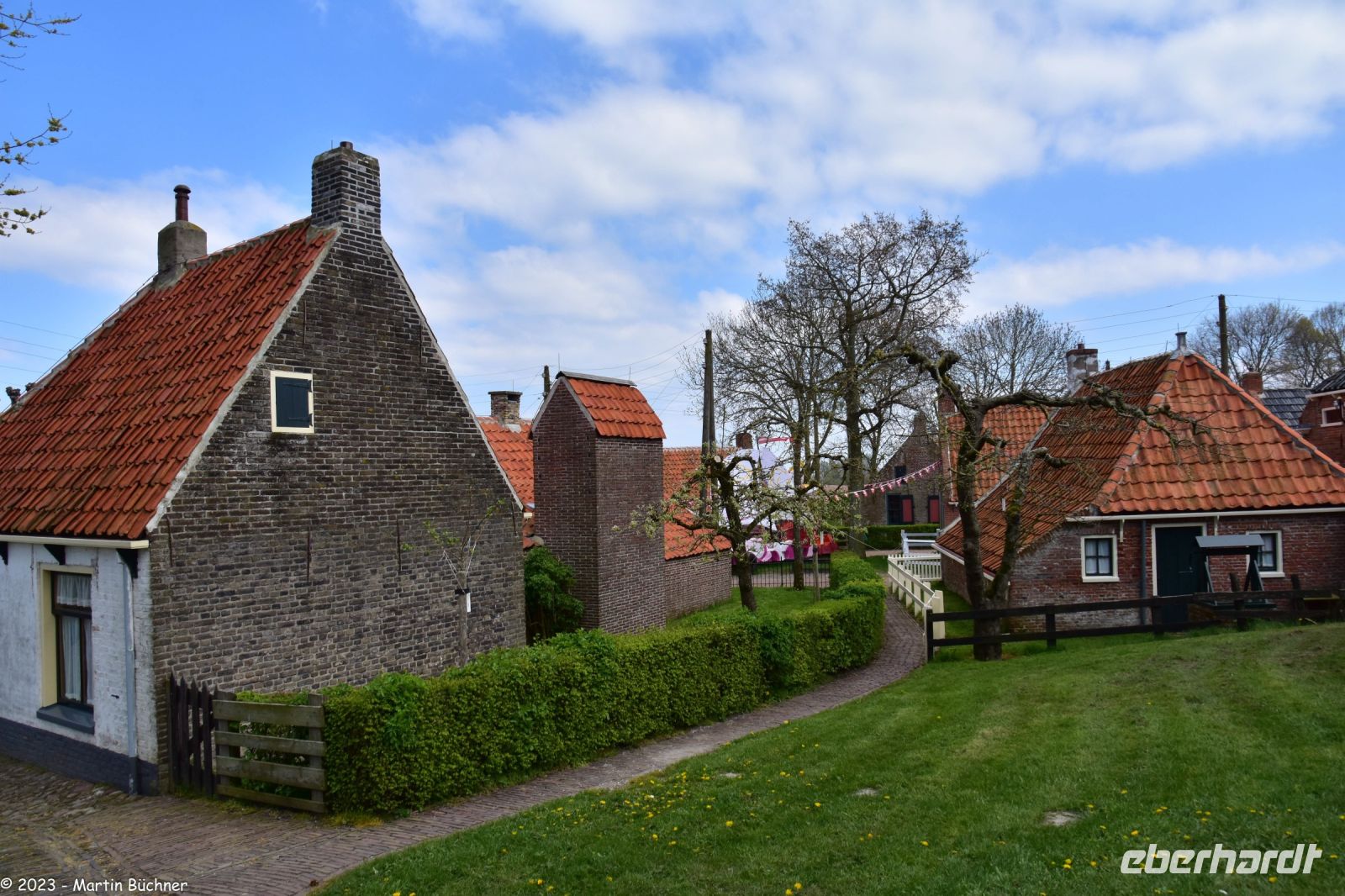 Der Zug endet im historischen Ort Medemblik direkt am IJsselmeer. Auch dieses Städtchen war Teil der Ostindischen Kompanie, aufgrund seiner ungünstigeren Lage für Schiffsanläufe verlor die Stadt gegenüber Hoorn und Enkhuizen schnell an Bedeutung. Nach einer individuellen Mittagspause im hübschen Medemblik, der Bahnhof liegt unweit der Stadtmitte, wechseln wir abermals das Verkehrsmittel. Mit der M/S Friesland gebaut 1956 geht es über das IJsselmeer nach Enkhuizen. Dort besuchen wir das Zuiderzee-Museum, eines der größten Freilicht-Museen der Niederlande. Für die Gäste von der Wasserseite gibt es einen eigenen Schiffsanleger. Auf dem riesigen Gelände wurden unzählige historische Gebäude aus dem 18. und 19. Jh. aus dem Gebiet der ehemaligen Zuiderzee, heute IJsselmeer zusammengetragen und hier wiedererrichtet. Alle Gebäude sind „belebt“. Museumsmitarbeiter zeigen in historischer Kleidung wie man in den Niederlanden lebte und arbeitete. Es gibt ein umfangreiches Außenmuseum, sogar mit Windmühle und befahrbaren Grachten. Als der Platz immer enger wurde, wurden Teile originalgetreu aber im verkleinerten Maßstab wiedererrichtet.