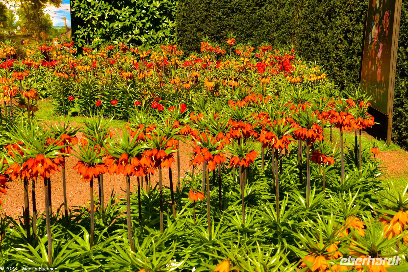 Trotz der hohen Besucherzahl ist alles perfekt organisiert. Ohne Warteschlange betreten wir das Gelände. Bei herrlichem Sonnenschein und noch nicht vorhandenem Blätterdach der Bäume kann jeder das riesige Gelände nach seinen eigenen Vorlieben erkunden.