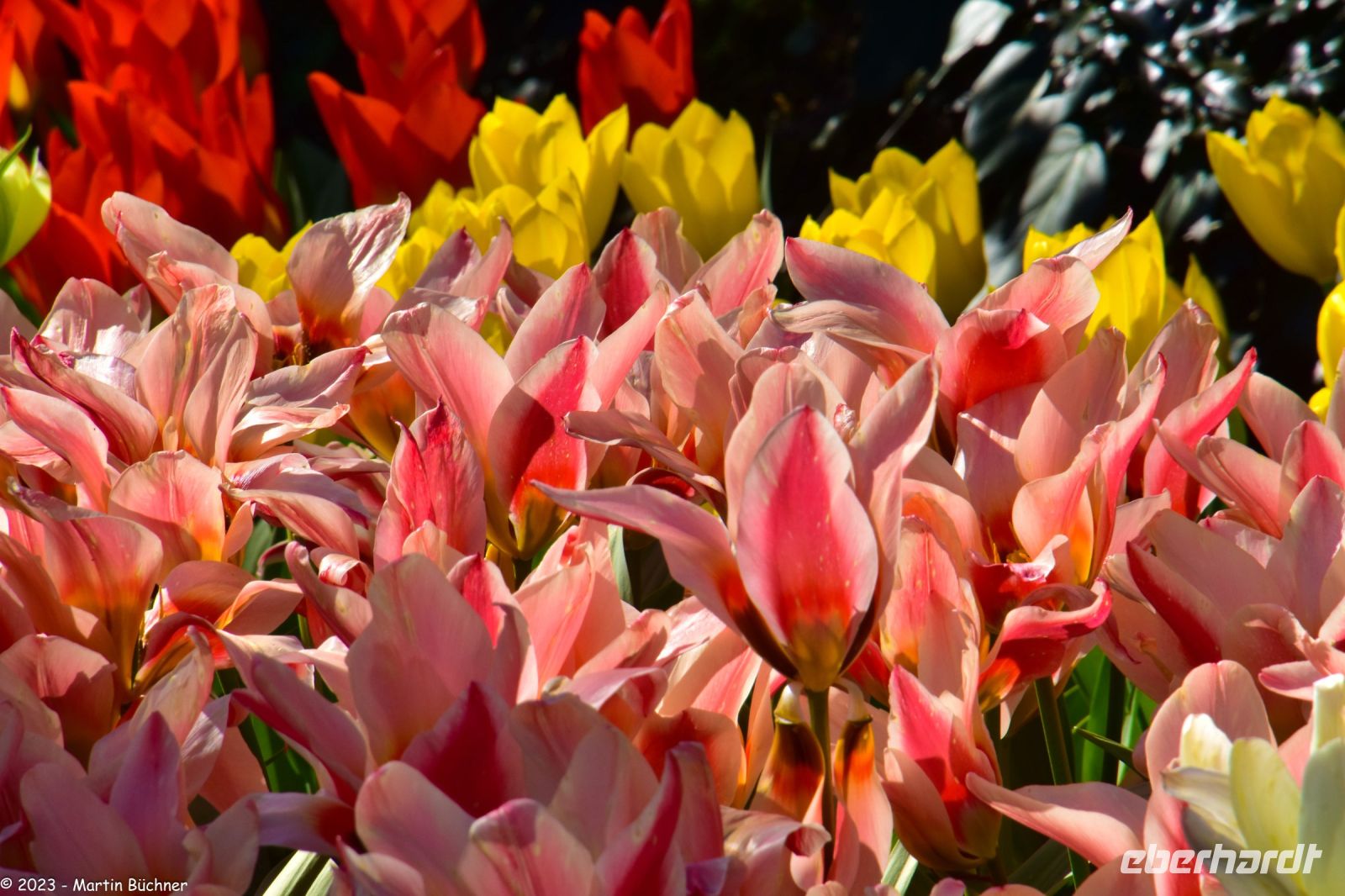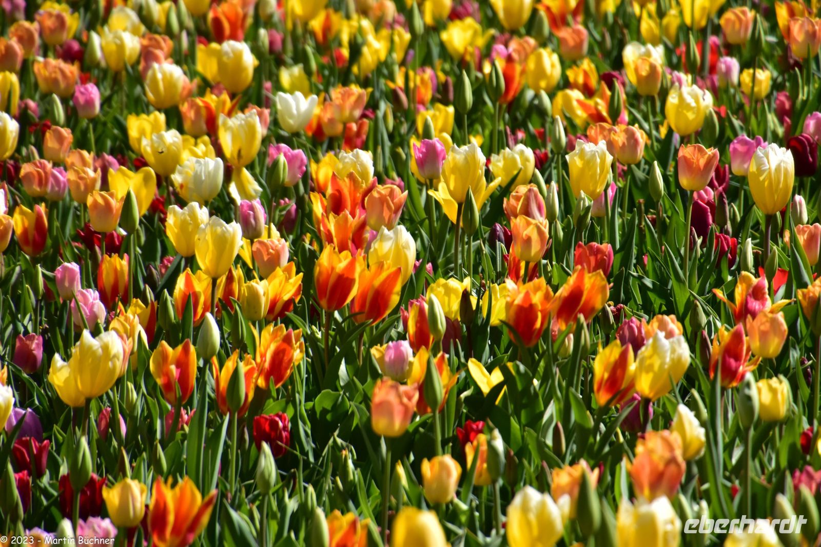 Der ab Mitte des 19. Jh. angelegte Englische Landschaftsgarten des Schlosses Keukenhof dient heute als Grundlage für die wohl berühmteste Frühlingsblumenschau der Welt.