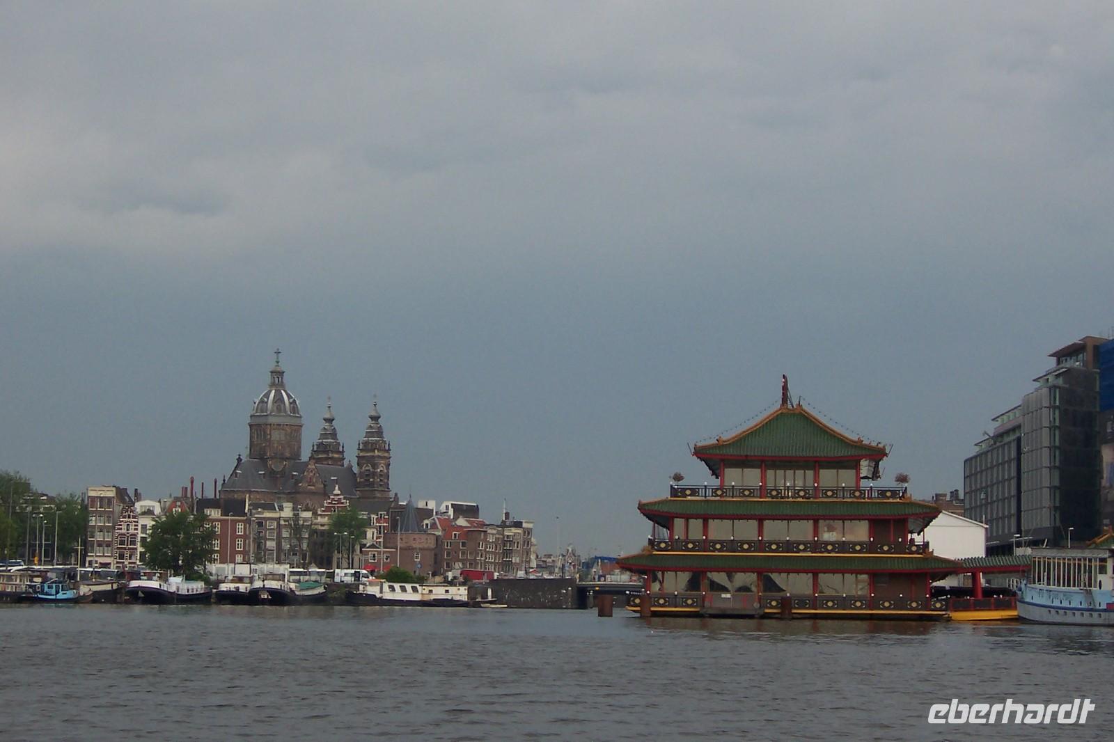 Nach dem Frühstück starten wir mit dem Bus und fahren durch die Stadt bis zum Bahnhof (Centraal Station). Beeindruckend ist nicht nur die Architektur des Bahnhofes, sondern auch das Wissen, dass dieser auf drei künstlichen Inseln und 8687 Pfählen im 19. Jahrhundert gebaut wurde. Von hieraus starteten wir einen Rundgang entlang dem Damrak bis zum Dam (der Hauptplatz von Amsterdam) mit Nationalmonument, dem Königpalast und der Neuen Kirche (Nieuwe Kerk). Weiter geht es in dem ältesten Stadtteil zur Oude Kerk der ältesten Kirche der Stadt. Dabei müssen wir festhalten, dass wir nicht nur wegen der Kirche in den Gassen bummeln. Auch das älteste Gewerbe ist in dem Stadtteil angesiedelt.