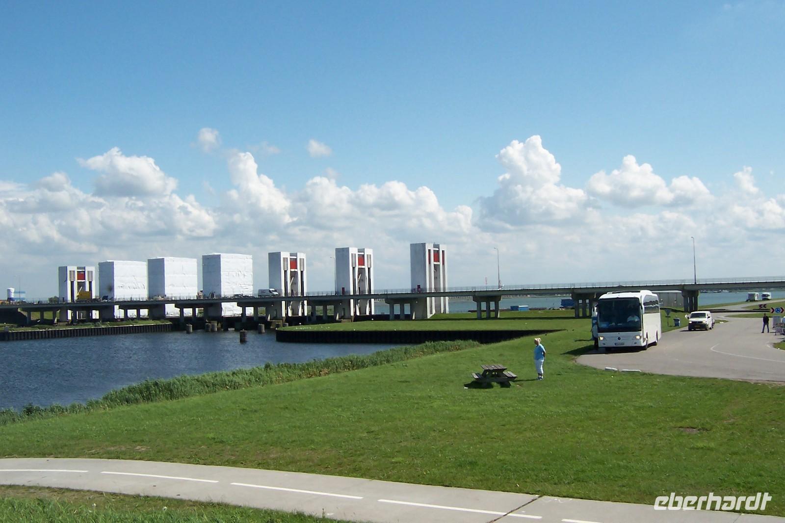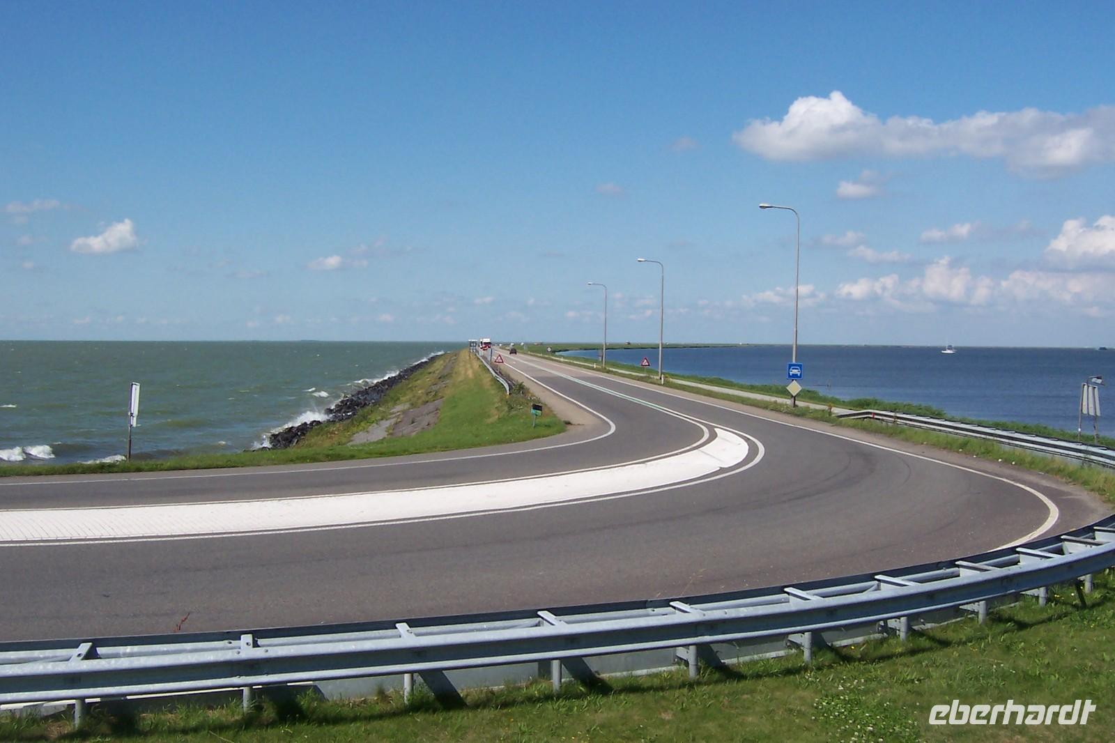 Die Fahrt über den 31 km langen Deich nach Leyelstadt macht uns deutlich welch Leistung in den Bau steckt. Nach Überquerung des Dams legen wir einen Fotostopp ein.