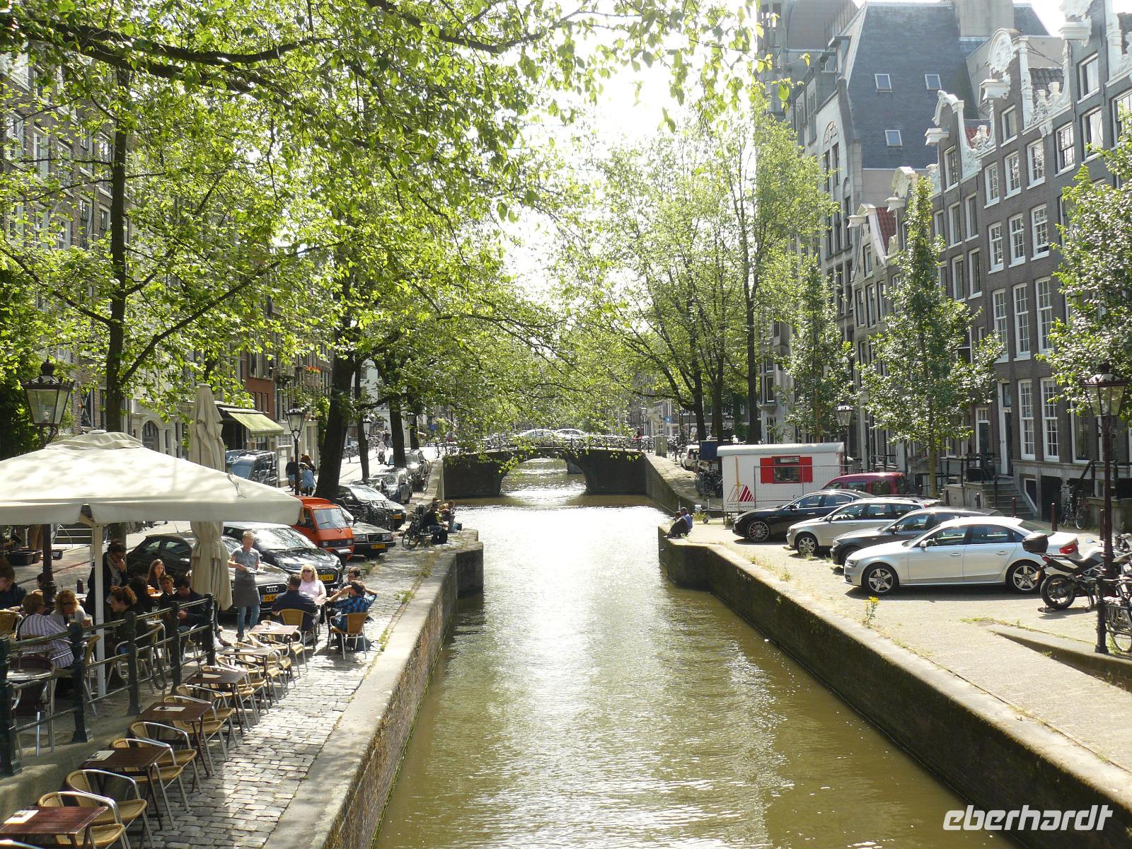 Nach einem leckeren Frühstücksbuffet zogen wir los ins Stadtzentrum. Dort erwartete uns Cecilia, unsere Stadtführerin, die uns nun durch die barocke Hauptstadt der Niederlande führte. Amsterdam steht auf tausenden von Pfählen mittem im Morast, erfuhren wir, und wurde erst im 13. Jh. als Fischerdorf gegründet. Aber der Ort entwickelte sich schnell und im 17. Jh., während des 30jährigen Krieges, der in den Niederlanden doch glatt 80 Jahre dauerte, blühte die Stadt auf. Ein riesiges Bauprojekt wurde damals in Angriff genommmen: der Grachtengürtel. Mehrere Ringkanäle wurden angelegt, dadurch das Land dazwischen entwässert und anschließend bebaut. Zunächst führte uns Cecilia durch den Jordaan, früher ein Armenviertel am Stadtrand. Die Ringkanäle, in denen im 17.Jh. wie auch heute eher wohlhabende Menschen lebten, nutzen wir am Nachmittag für eine Schiffsrundfahrt. Vom Wasser aus eröffnen sich herrliche Blicke in Amsterdam! Am Nachmittag trennten wir uns: 14 Gäste besuchten das Rijksmuseum, in dem sich berühmte Gemälde von Rembrandt van Rijn und Jan Vermeer, Frans Hals und anderen Barockmalern befinden. Auch Gemälde der Renaissance und Malereien aus dem Mittelalter sind hier zu finden. 11 Gäste wollten dagegen lieber die Bilder von Vincent van Gogh sehen. Nach den Museumsbesuchen trafen wir uns wieder, fuhren ins Hotel und nahmen dort unser leckeres Abendessen ein.