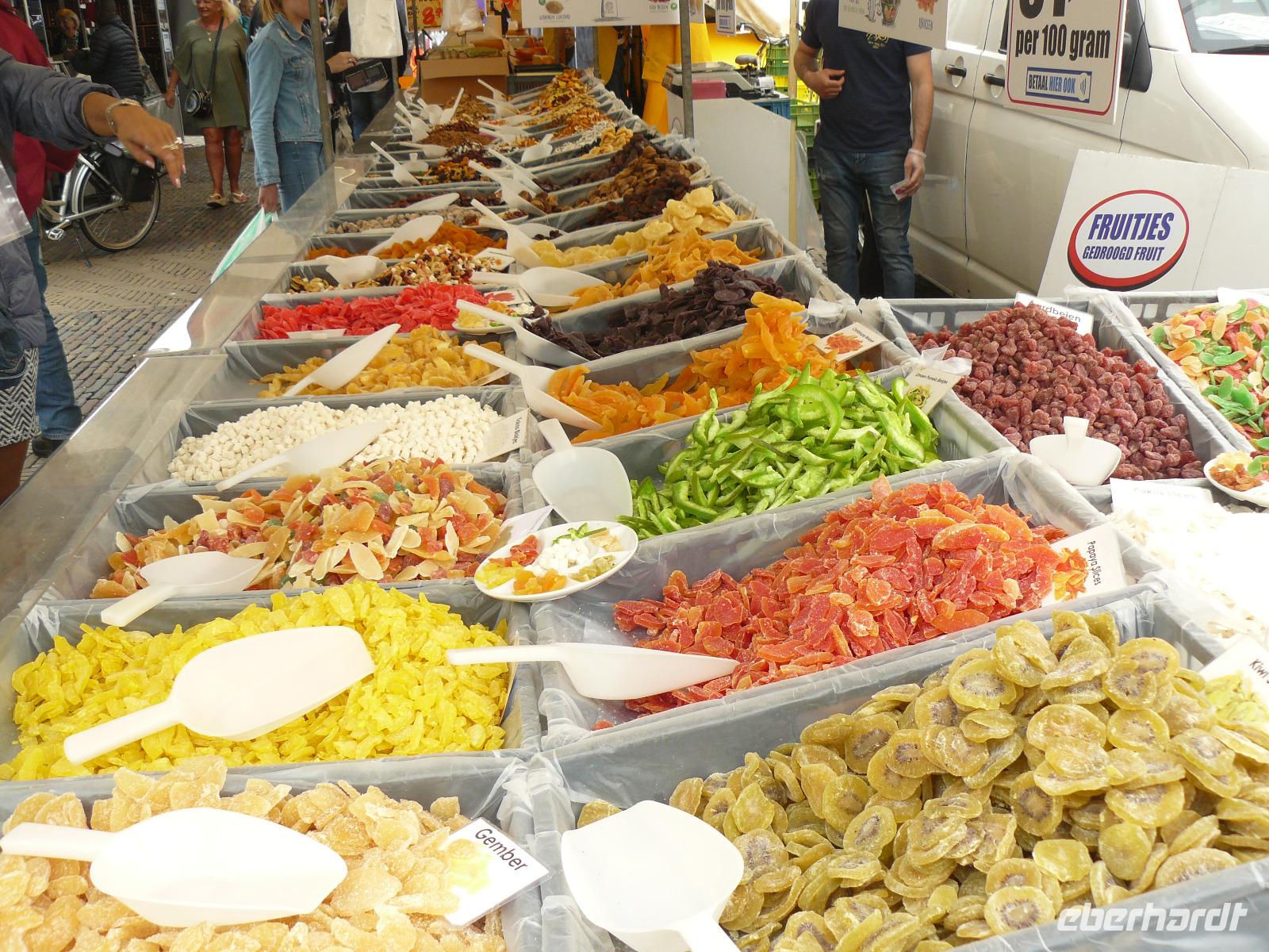 Einen weiteren Urlaubstag verbrachten wir in Amsterdam. Wir ließen uns durch das Koniglijk Paleis am Damplatz führen, und verbrachten unsere Mittagspause wieder im alte Viertel Jordaan, das heute mit zahlreichen kleinen Läden aufwartet und auch eine sehr beliebte Wohngegend ist, im 17. Jh. allerdings ein Armenviertel war. Und da Rembrandt in seiner Jugendzeit erfolgreich und reich war und ein teures Haus in einem guten Viertel bewohnte, aber während seines Lebens viel verlebte und verlor, beendete er sein Leben in einem kleinen Häuschen im Jordaan. Den Nachmittag widmeten wir einem ernsten Kapitel der Deutsch-Niederländischen Geschichte, indem wir das Anne-Frank-Haus besuchten. An der Prinsengracht, unweit der Westerkerk, hatte die jüdische Familie Frank aus Frankfurt versucht, sich vor den Nazis zu verstecken. Wer sie verraten hat ist bis heute nicht richtig klar. Die jüdische Familie wurde jedenfalls entdeckt und nur der Vater Frank überlebte das KZ und veröffentlichte dann das Tagebuch seiner Tochter, das wenig später weltberühmt wurde. Nach dieser Reise in die jüngere Vergangenheit der Stadt fuhren wir wieder ins Hotel zurück und nahmen dort nun etwas früher als sonst unser leckeres Abendessen ein, denn nach dem Essen zogen einige Gäste nochmals los: Cecilia führte uns nun am Abend durchs Rotlichviertel der Stadt. Amsterdam, die calvinistische aber doch tolerante Hafenstadt, beherbergt seit Jahrhunderten Stätten des ältesten Gewerbes der Welt. Und seit Jahrhunderten stellte sich die Frage, wie man mit diesem Teil der Stadt umgeht. Und so erfuhren wir manches Neue, bevor wir dann am späten Abend schließlich den Rückzug in unser Hotel antraten.