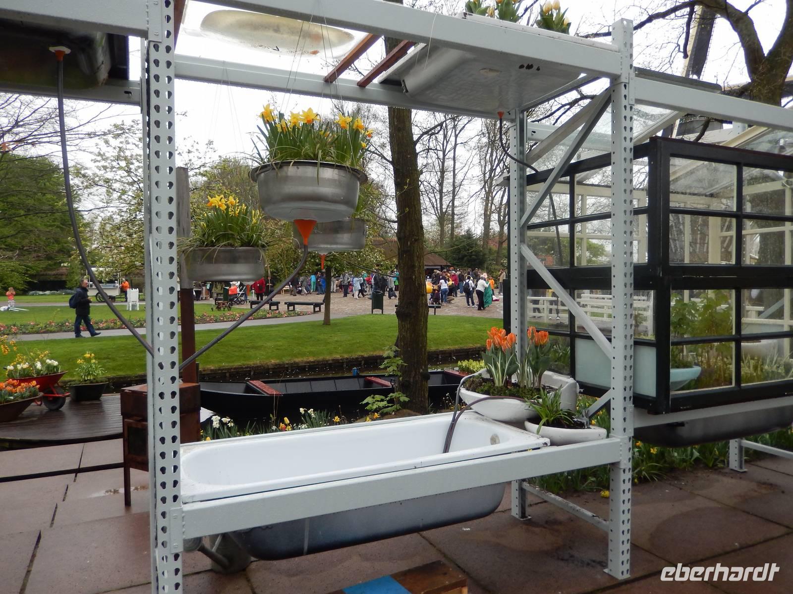 Heute fängt unser Tag später an, denn wir wollen erst um 09 Uhr laden. Frühstück gibt es am 07 Uhr und so trudeln alle Gäste so nach und nach ausgeschlafen im Hotelrestaurant ein. Während wir noch den wunderschönen Klavierklängen des Herrn Schade lauschen, sind Jörg und Steffen schon unterwegs, um unseren Bus zum Hotel zu holen. Schnell sind alle Gäste an Bord uns so starten wir auch pünktlich in Richtung Lisse, wo sich der bekannte Keukenhof befindet. Auf dem Weg dahin säumen Deiche und moderne Bürokomplexe unseren Weg. Je näher wir an unser Ziel kommen, umso mehr Blumenfelder nehmen wir am Straßenrand war. Nach gut 45 Minuten Fahrt erreichen wir unser Ziel. Unsere Gäste steigen aus dem Bus aus und ich hole in der Zwischenzeit unsere Eintrittskarten. Alle zusammen treffen wir dann auf unseren Guide Dirk, der sich für uns Zeit nimmt, den Keukenhof näher zu bringen. Schnell ist aus einer Stunde anderthalb geworden aber die bunte Blumenvielfalt beeindruckt uns doch sehr. Die Fotoapparate haben heute viel zu knipsen und ein wahres Farbenspektakel zu speichern. Die Tulpen sind richtig aufgeblüht und es ist beeindruckend, in welcher Artenvielfalt es sie auch gibt. Aber auch Orchideen, Lilien und andere Blumen kommen hier in einem der größten Blumenparks nicht zu kurz. Nach rund anderthalb Stunde verabschiedet sich unser Guide von uns am Willem-Alexander-Pavillon, wo es, wie an jedem anderen Pavillon