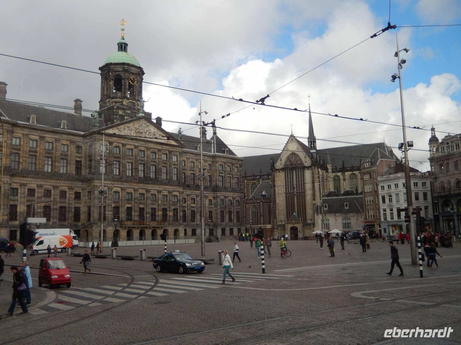 Den ein Aufenthalt in den Niederlanden ohne den Besuch der Hauptstadt ist nicht denkbar;-). Gut eine Stunde Fahrt trennt uns von Amsterdam. Wir erreichen die niederländische Hauptstadt mehr als pünktlich. Unsere örtlichen Guide Stefan treffen wir am altehrwürdigen Hotel „Viktoria" gegenüber vom Hauptbahnhof. Zunächst machen wir eine Rundfahrt durch die Stadt und Stefan lotst Steffen zunächst durch das Hafengebiet der Stadt. Für Steffen ist es hier keine leichte Aufgabe, den die zahlreichen Fahrradfahrer nehmen weder Rücksicht auf Autos noch auf Busse. Bei unserer Rundfahrt bestaunen wir auch das alte Postamt, wir sehen das königliche Schloss, die Universität und kommen vorbei am legendären Hotel „Hilton", wo einst Yoko Ono und John Lennon ihre Friedensdemonstration abgehalten haben. An einer Windmühle machen wir einen kurzen Fotostopp, bevor wir wieder in Richtung Innenstadt fahren. Wir steigen wir ganz in der Nähe vom Dam-Platz aus, um sich die älteste Häusersiedlung der Stadt anzuschauen. Durch das Amsterdam-Museum erreichen wir