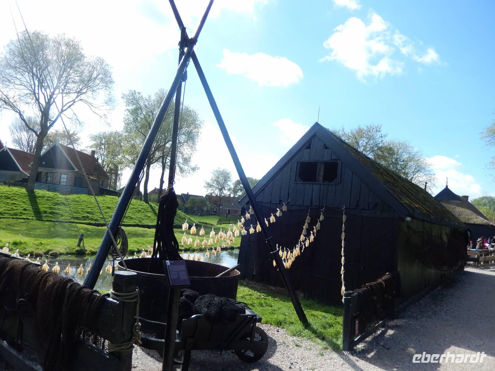 Enkhuizen, wo sich das Zuiderzeemuseum befindet. Nach der Anmeldung der Gruppe setzen wir mit einem behindertengerechte Schiff zum Freilandmuseum über. Hier versetzen wir uns bei einer Führung ca. 100 Jahre zurück in die Vergangenheit und erfahren so, wie sich das Leben und natürlich auch das Arbeiten in der längst vergangenen Zeit abspielte. In nachgebauten Häusern, Apotheken und Schule dürfen wir hineinblicken, um uns ein besseres Bild vorstellen zu können. Die Führerin erzählt uns allerhand und sogar vom frisch geräucherten Hering dürfen wir probieren. Nach Ende des Rundgangs haben wir Freizeit, um uns die einzelnen Exponate noch einmal in Ruhe anzuschauen. Mit dem Schiff geht es schließlich zurück zum Bus. Wir halten kurz am Checkpoint-Charlie für einen kurzen Fotostopp aufs Wasser und erreichen schließlich über den Markermeer-Deich Batavia Havn. Hier haben wir noch etwas Freizeit, um sich entweder die Batavia anzuschauen oder ein letztes Mitbringsel für Zuhause zu kaufen. Am Abend sind wir zurück in Alkmaar.