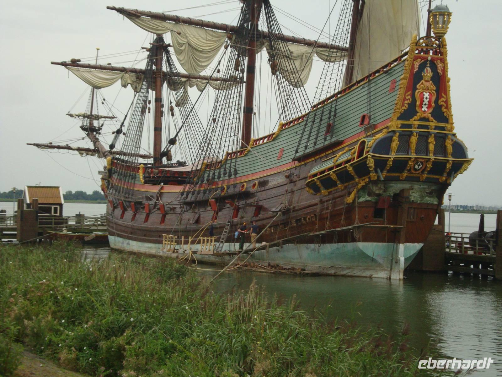 Über den ca. 24 km langen Houtribdijk fuhren wir nach Lelystad, der Hauptstadt der neuen Provinz Flevoland. Dem Meer wurde im 20.Jh. das Land, die Polder, abgerungen und 1982 wurde diese Provinz von Königin Beatrix offiziell "Flevoland" benannt. Am Museumsschiff "Batavia" machten wir zur Erinnerung an die schöne Reise das Gruppenfoto. Als wir nach Amsterdam fuhren ging es vorbei an der Stadt Almere, die es vor 30 Jahren noch nicht gab, aber heute bereits 300000 Einwohner hat. Am Museumsplein entliesen wir die Gäste, welche die Stadt nochmals auf eigene Faust erkunden wollten. Aber es fing wieder an zu regnen und deshalb fuhren die meisten mit ins Hotel.
