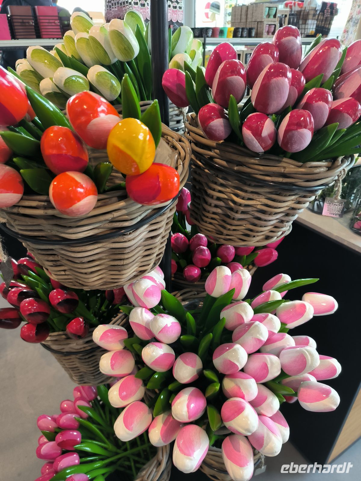 Nach einer Kostprobe der berühmten Peppernuts - das traditionelle Rezept vereint die Aromen von Zimt, Nelken und Ingwer und wird perfekt mit Honig und Melasse verfeinert – endet unser Rundgang am Blumenmarkt. Hier werden alle Klischees erfüllt: Riesige Käselaibe, Holzpantinen und Tulpen über Tulpen – echt oder aus Holz oder Plastik oder Papier. Wir danken Martina herzlich und verabschieden uns in eine kurze Mittagspause.