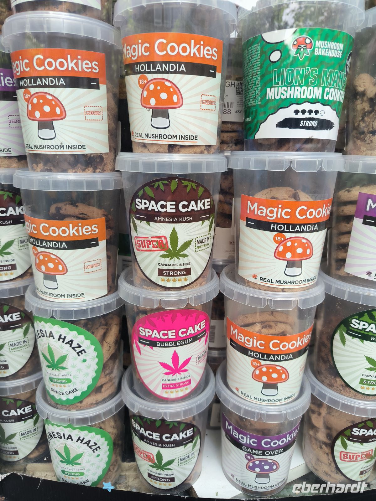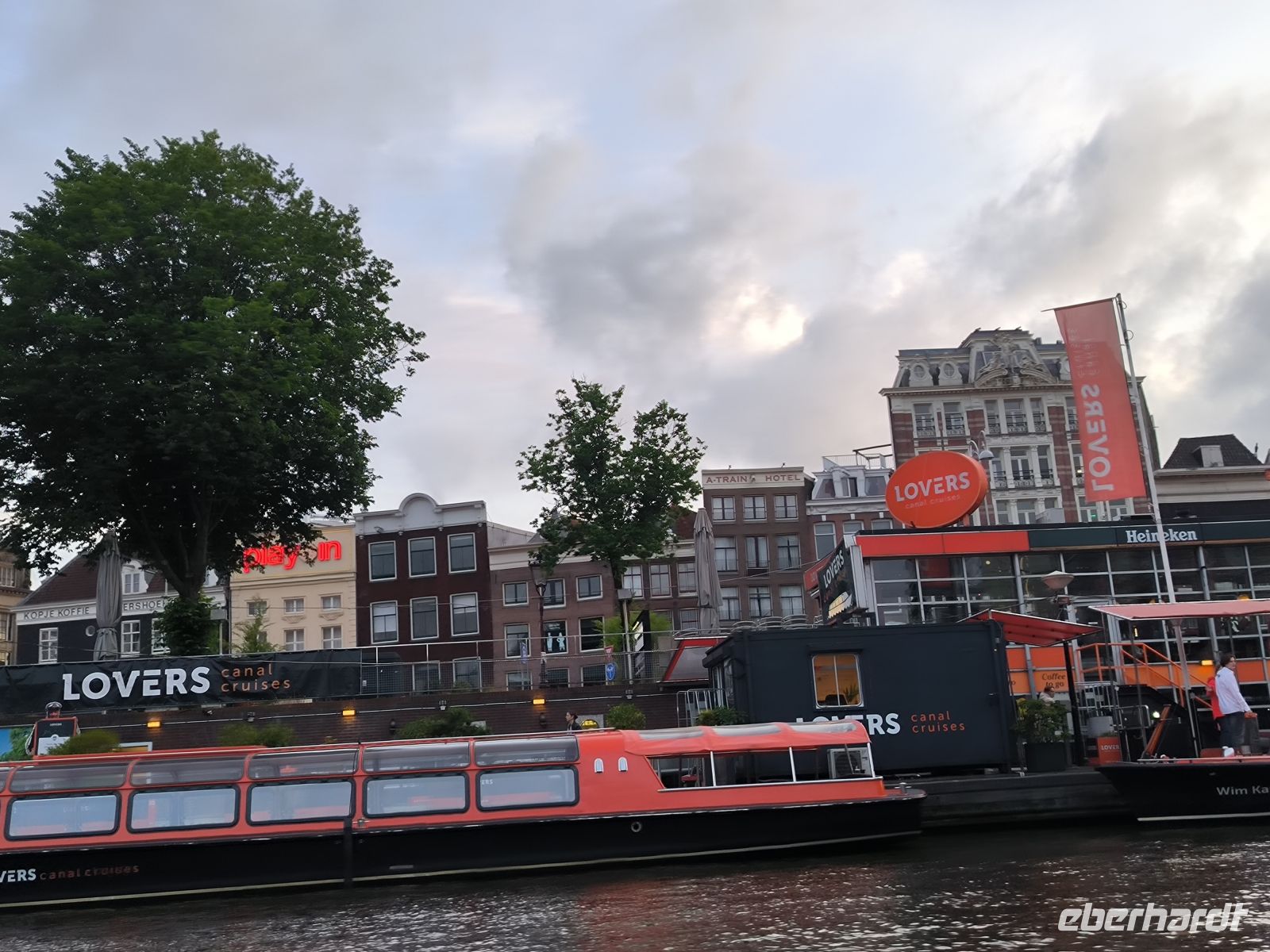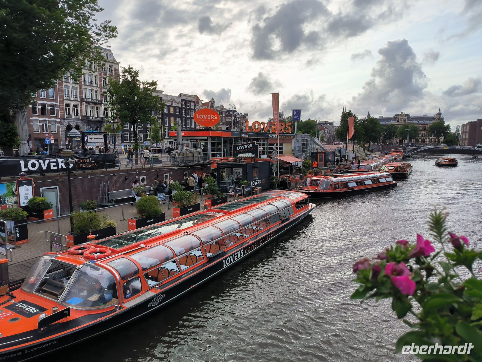 Martina erklärt uns auch die Bedeutung der Amsterdamer Flagge, die wir überall entdecken. Das Wappen von Amsterdam besteht aus einem roten Schild mit drei weißen Kreuzen auf einem schwarzen Streifen. Diese stehen für die drei Plagen: Flut, Feuer und Pest. Oberhalb des Schilds befindet sich die Kaiserkrone von Österreich und daneben zwei goldene Löwen. Aus vielen Ecken oder Coffee-Shops weht uns immer wieder ein verdächtiger Duft um die Nase.