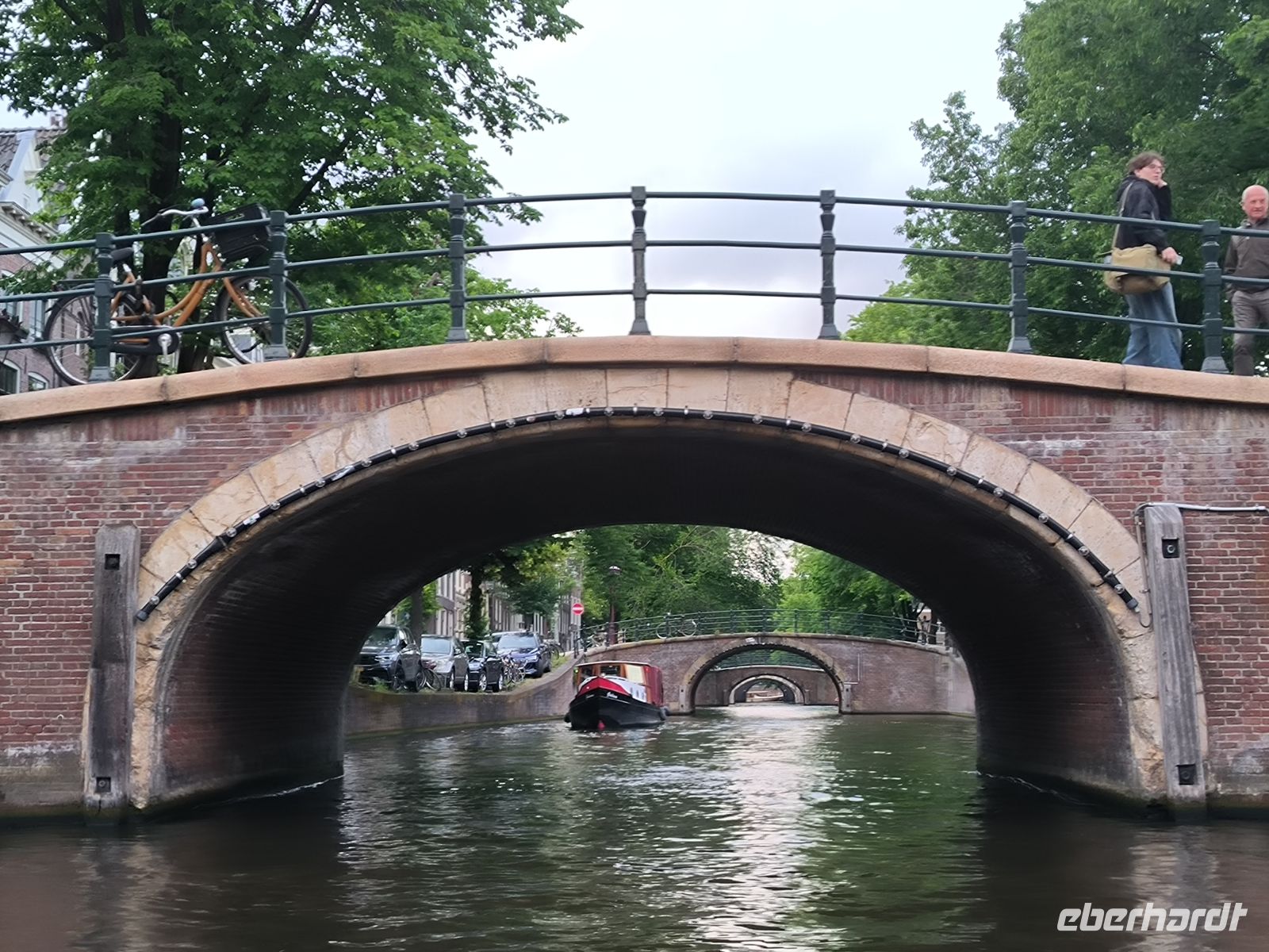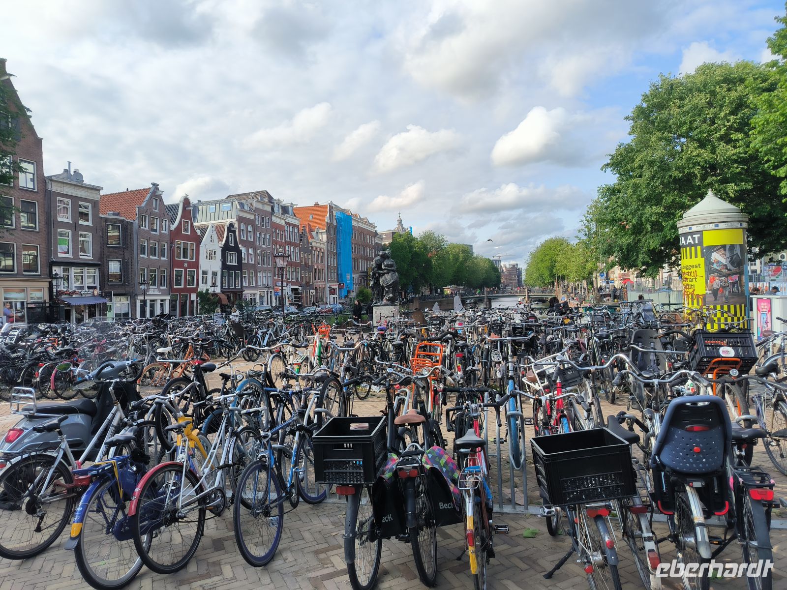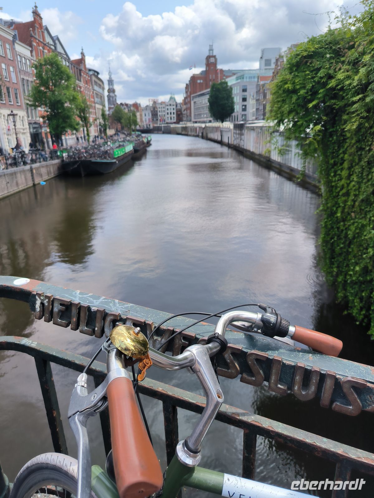 An einer der vielen Grachten können wir beobachten, wie ein Baggerschiff mit einem Schrottgreifer gesunkene Fahrräder aus dem Wasser fischt. Und weil er gerade keines findet, macht der freundliche Skipper für uns Schaulustige eine Extrashow und lässt eines der rostigen Gefährte nochmal rein- und rausfahren. Wir sind begeistert.