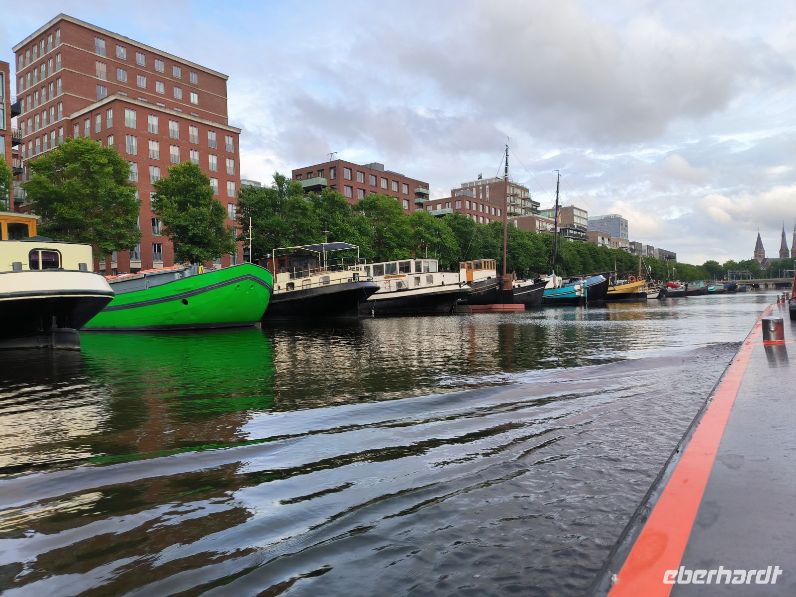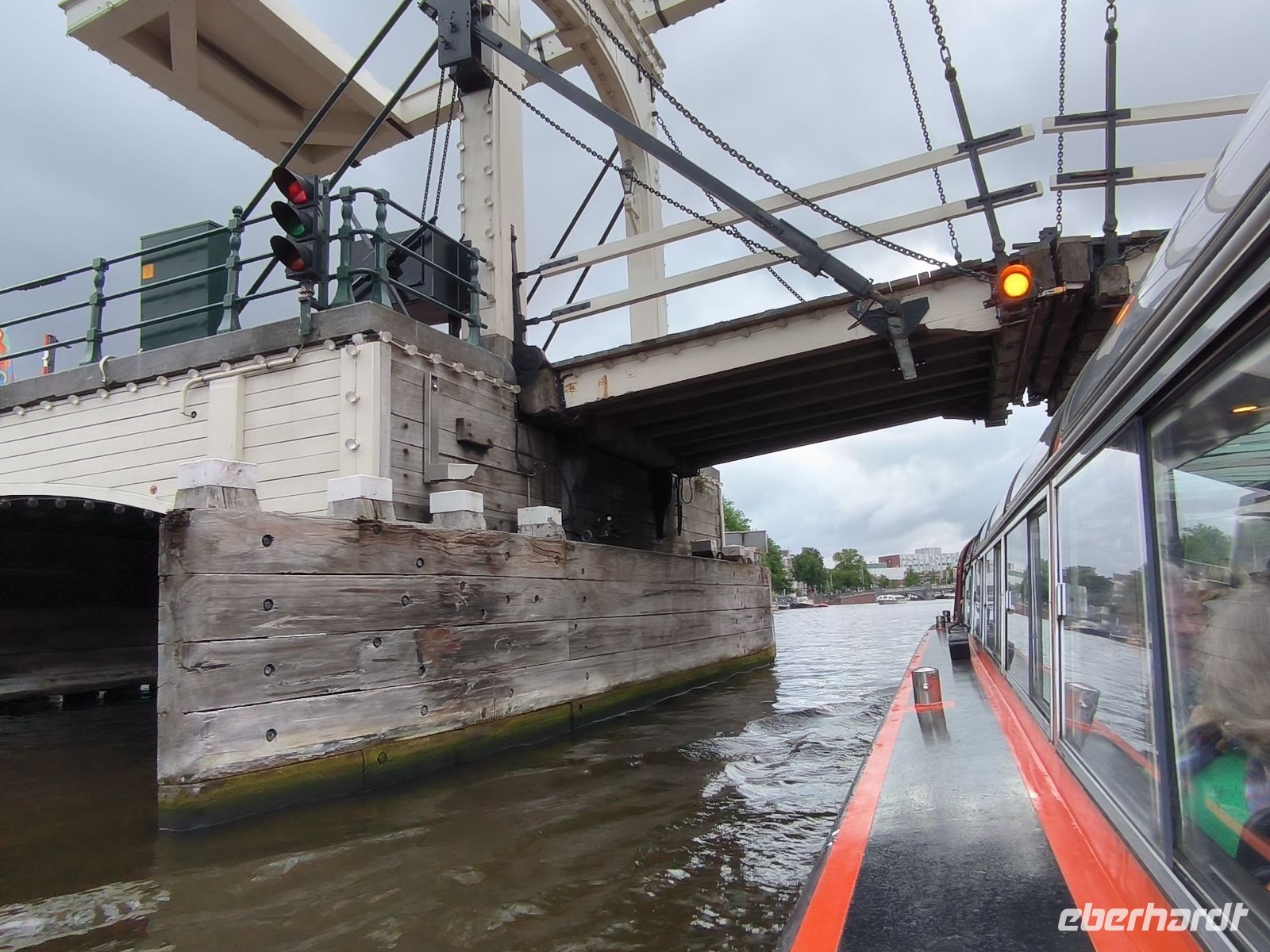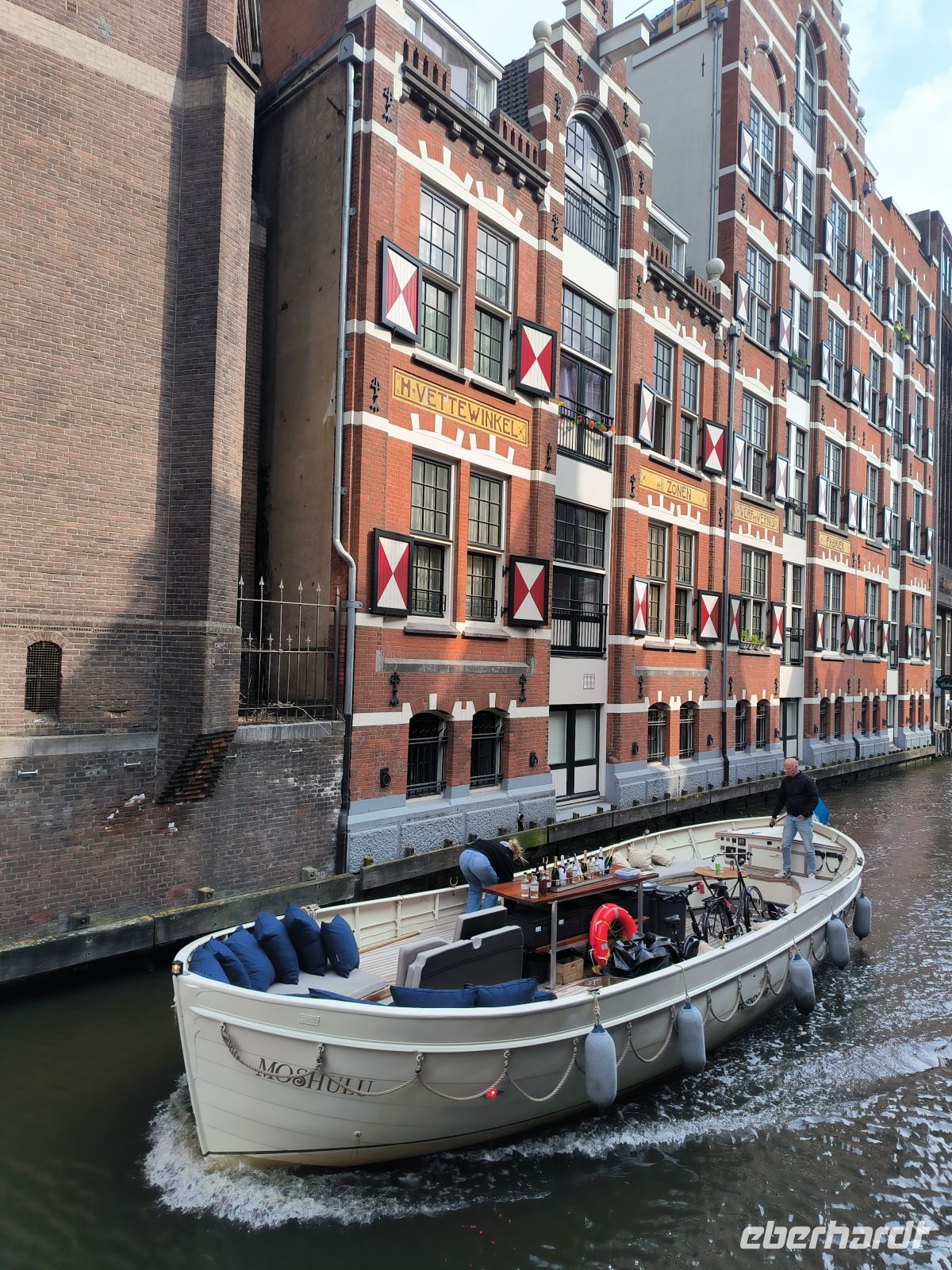 An einer der vielen Grachten können wir beobachten, wie ein Baggerschiff mit einem Schrottgreifer gesunkene Fahrräder aus dem Wasser fischt. Und weil er gerade keines findet, macht der freundliche Skipper für uns Schaulustige eine Extrashow und lässt eines der rostigen Gefährte nochmal rein- und rausfahren. Wir sind begeistert.