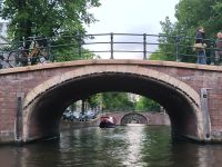 Es wird Zeit, Abschied zu nehmen. Abschied von den Reisenden der Gruppe, die nicht über Frankfurt reisen und denen, die ihre Städtereise noch verlängert haben. Alle anderen haben am Nachmittag noch etwas Zeit, um Souvenirs zu erstehen oder sich endlich von ein paar Sonnenstrahlen an den Grachten erwärmen zu lassen. Dann holen wir die Koffer aus dem Hotel und besteigen überpünktlich unseren Transfer zum Flughafen.