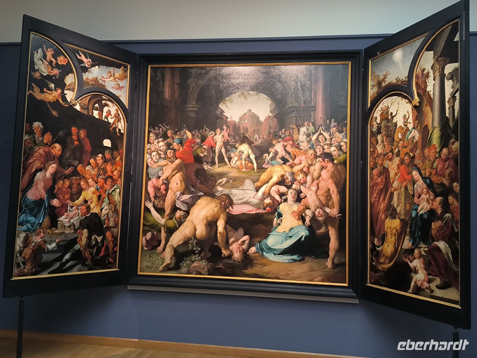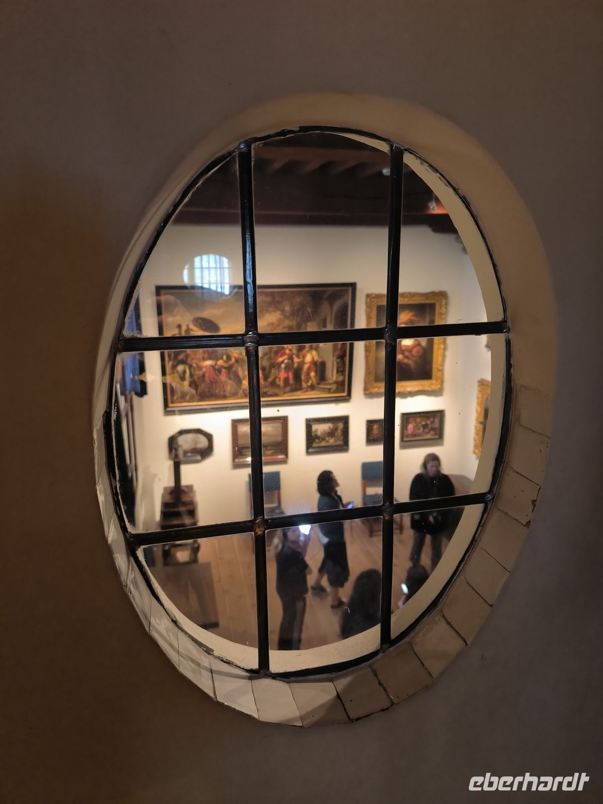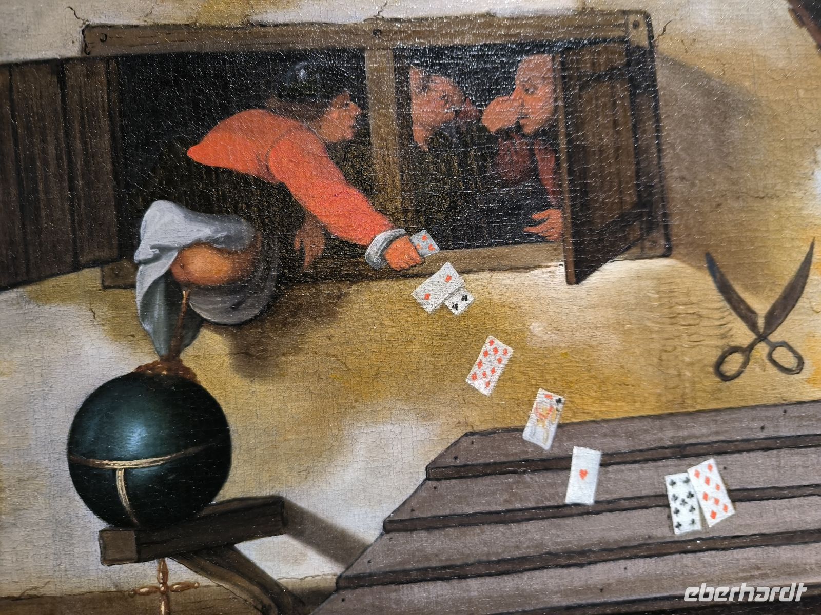 Ort des Geschehens ist das liebevoll eingerichtete Frans Hals Museum. Es ist nach dem hier tätigen Porträtmaler des Goldenen Zeitalters der Niederlande im 17. Jh. benannt und in einem ehemaligen Oudemannenhuis (Altmännerhaus) untergebracht. Es zeigt vorrangig Gemälde Haarlemer Künstler aus dem 16. und 17. Jh. Seit 1913 befindet sich das Haus am jetzigen Ort und umfasst Werke von Vorgängern, Schülern, Kollegen und Konkurrenten sowie rund ein Dutzend Werke von Hals selbst. Herausragend sind dabei die Schützen- und Regentenstücke, von den Schützengilden bzw. den Vorstehern von Wohltätigkeitseinrichtungen in Auftrag gegebene Gruppenporträts, die Frans Hals ganz neu interpretiert hat. Und eben das oben erwähnte Sprichwörterbild: Im Detailfoto zum Beispiel „Het is maar hoe de kaarten vallen“ – „It is just how the cards happen to fall“ – „Die Karten fallen, wie sie fallen“ oder „So ist das Leben, wie das Leben eben ist“. Oder das Wetter.