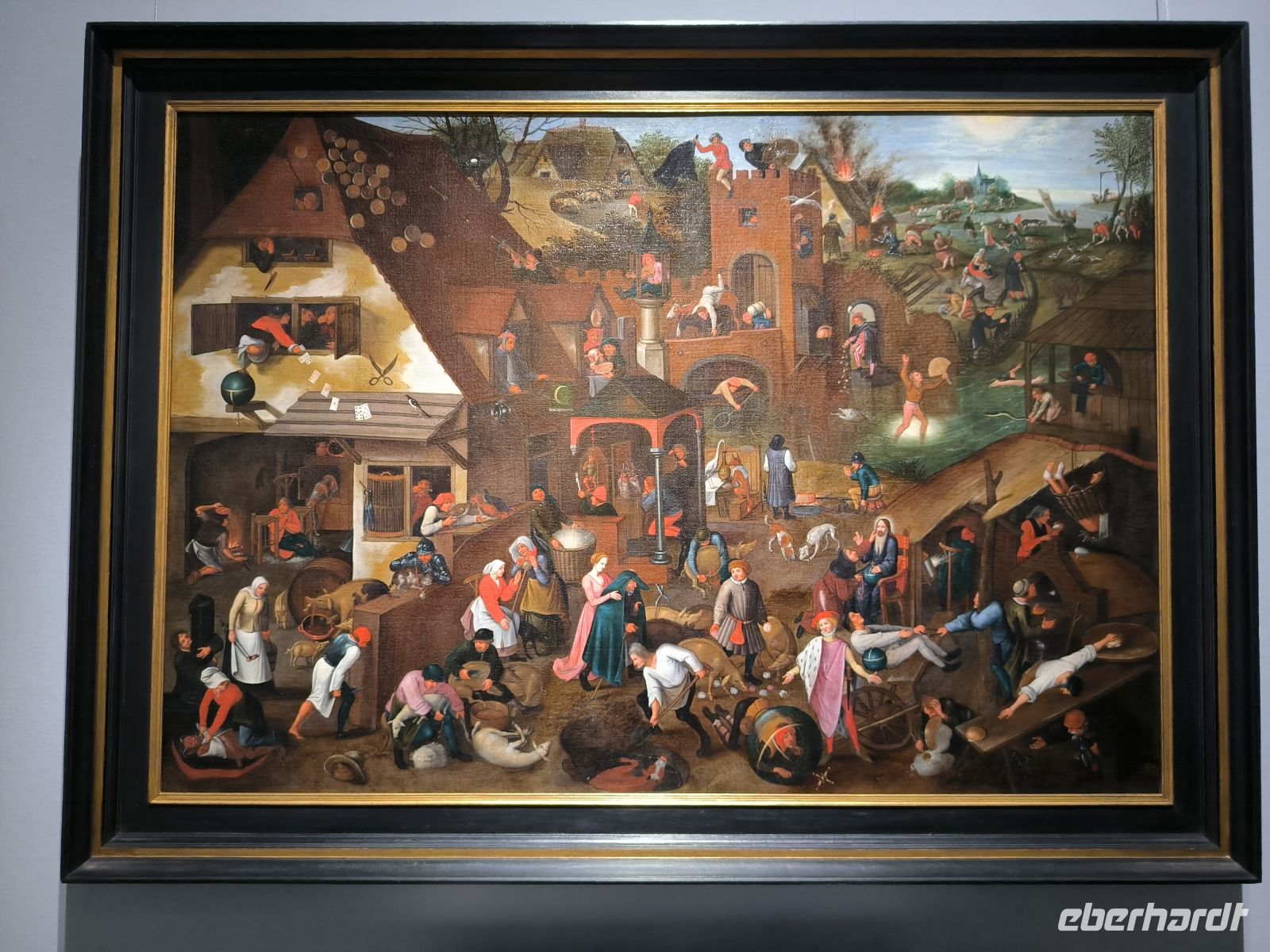 Nun regnet es immer wieder und es ist windig, so dass der Genuss etwas getrübt wird. Aber wir haben ja keine Butter auf dem Kopf und so tut das Aprilwetter dem Vergnügen keinen Abbruch. Ja, die Niederländer sind Freunde von Sprichwörtern, was wir auch auf dem Gemälde „Spreekwoorden“ von Pieter Brueghel II erkennen können, der damit seinen Vater kopierte.