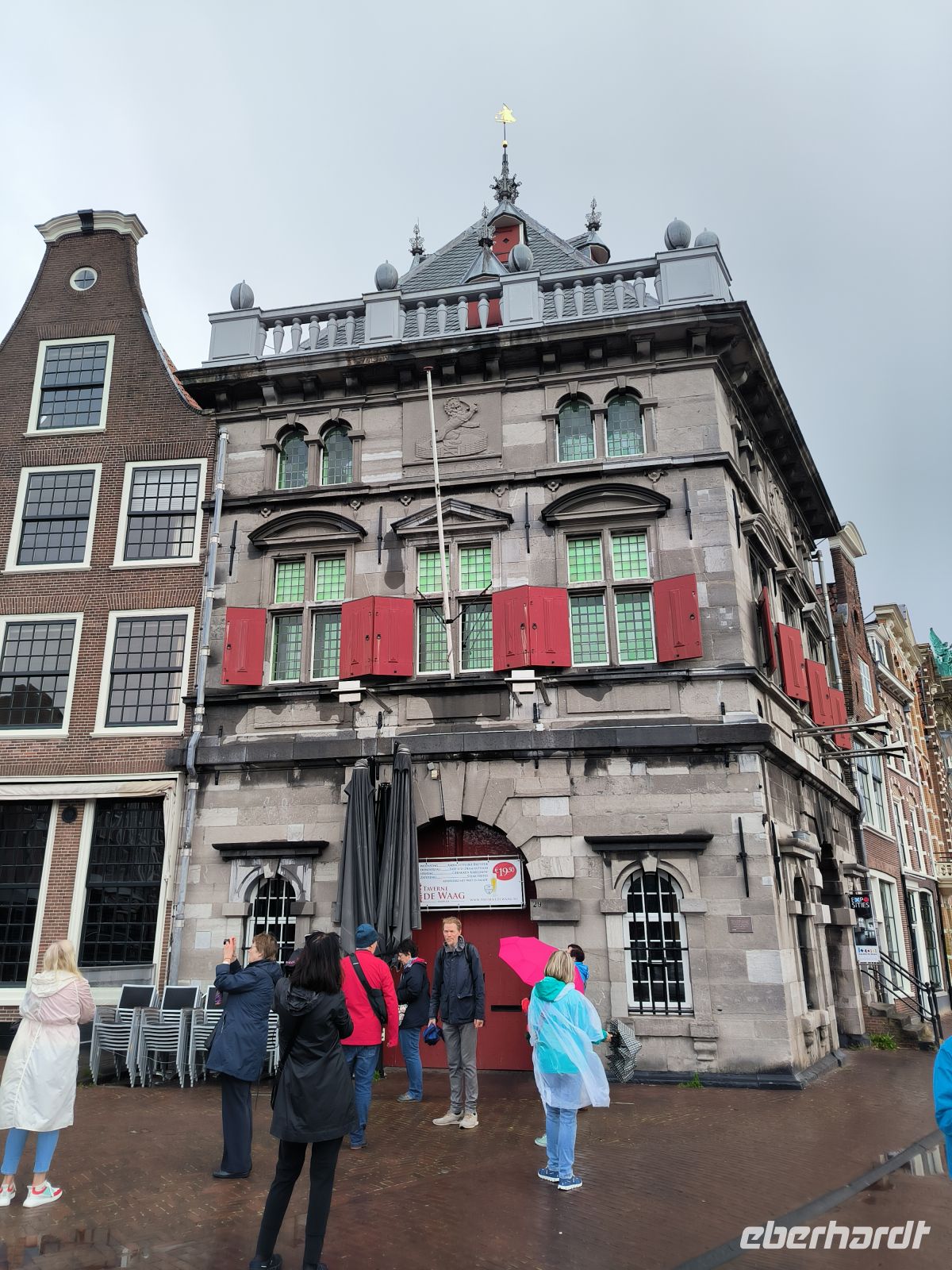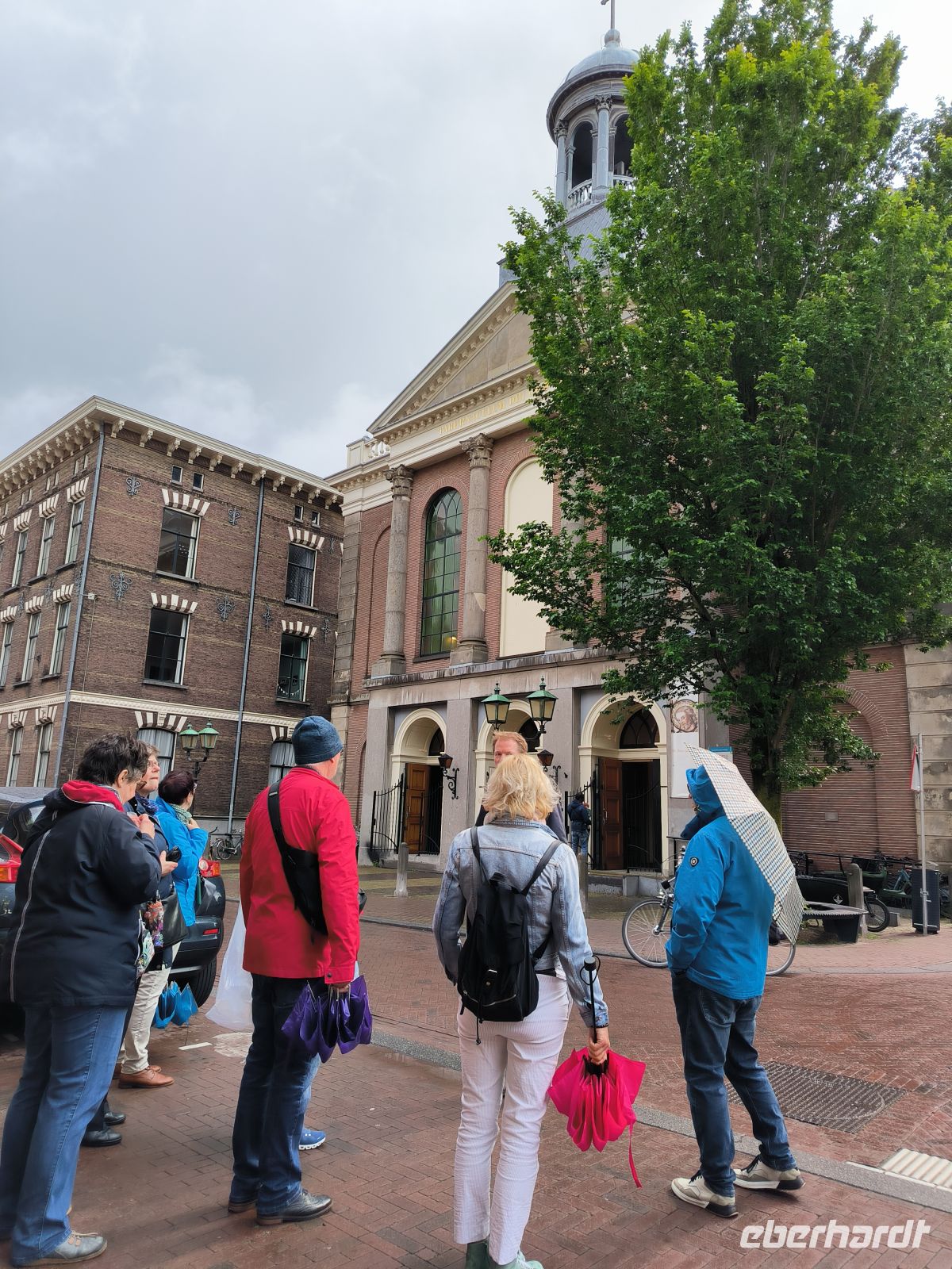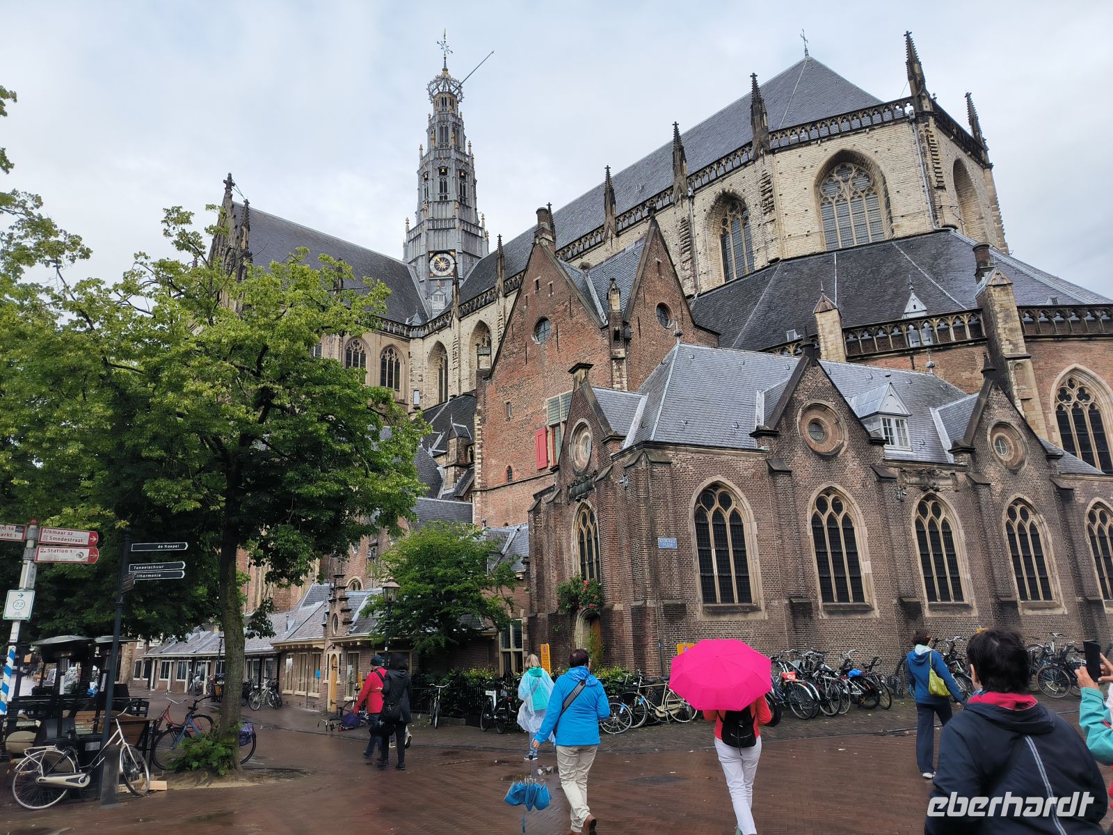 Knut führt uns durch die versteckten Gassen vergangener Tage, am ältesten Museum der Niederlande, Teylers Museum, und der alten Waage vorbei zum Grote Markt. Hier sticht die Grote oder Sint Bavokerk sofort ins Auge. Diese prächtige spätgotische mittelalterliche Kreuzbasilika überragt die Gebäude rund um den Platz. In ihrem Schatten duckten sich einst der Fisch- und Fleischmarkt der Stadt. Die Kirche beherbergt unter anderem die berühmte Müller-Orgel, auf der Mozart als Kind alle Register gezogen hat, und das Grab von Frans Hals. Leider verhindert der Sonntagsgottesdienst, dass wir die Kirche auch innen besichtigen können.