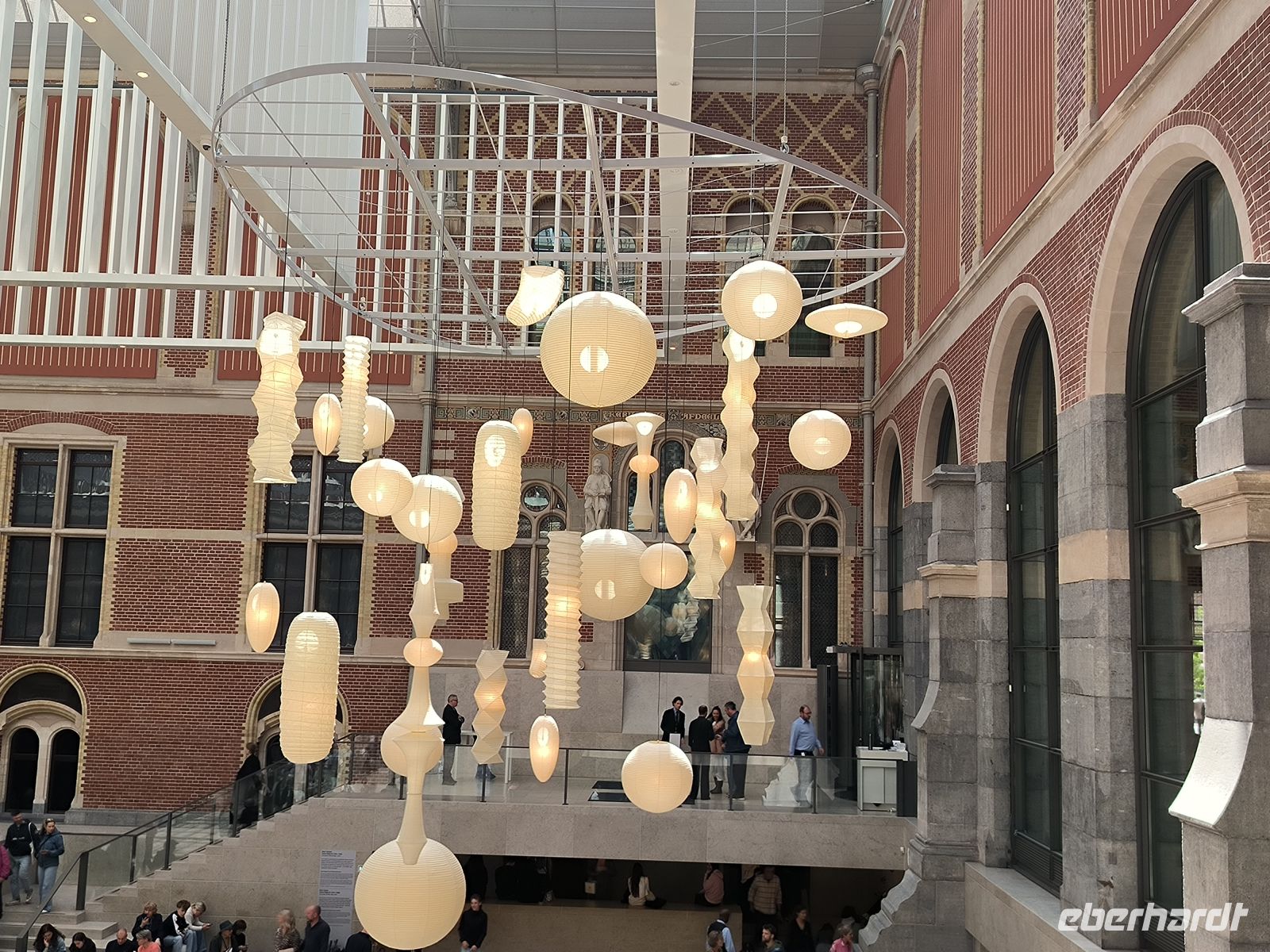 Für Kontraste sorgt der nächste Höhepunkt: Das Rijksmuseum Amsterdam ist den Künsten, dem Handwerk und der Geschichte gewidmet. Es verwahrt auf etwa 14.500 Quadratmetern mit über 8.000 gezeigten Exponaten eine große Sammlung der Malerei aus dem Goldenen Zeitalter der Niederlande, eine umfassende Sammlung asiatischer Kunstobjekte sowie Artefakte zur niederländischen Geschichte. Die letzte große Renovierung sollte bereits 2008 beendet sein, aber Proteste von Radfahrern, deren Route in den Stadtteil Oud-Zuid über das Gelände verlief, führten zu umfangreichen Bauverzögerungen. Statt der ursprünglich geplanten Radverkehrsroute um das Museum herum, wurde eine Durchfahrt für Fußgänger und den Radverkehr in das Gebäude integriert. Dort befindet sich auch die geheime Tür für den Transport der Nachtwache, also des Bildes ;-)