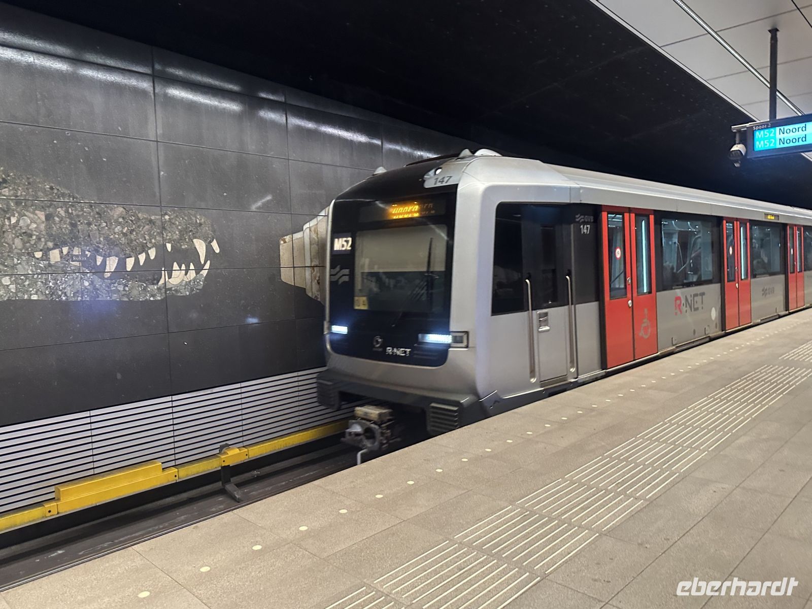 Ein gemütlicher Spaziergang führt uns zur Metro 52 am Ronin. Tatsächlich gibt es in Amsterdam eine unterirdische U-Bahn. Nach einer Station kommen wir am Bahnhof Central an. Wir steigen um in eine Regionalbahn, denn Zaanse Schans liegt etwas außerhalb von Amsterdam. Am Bahnhof Zaanse Schans treffen wir Mathilde, unsere Stadtführerin. Zaanse Schans ist ein malerisches historisches Dorf, das für seine gut erhaltenen Windmühlen und traditionellen Holzhäuser bekannt ist. Einige der Mühlen sind noch in Betrieb und können besichtigt werden. Es gibt verschiedene Museen und Werkstätten, in denen wir mehr über die Geschichte und das Handwerk der Region erfahren. Da ist zum Beispiel das Holzschuhmuseum, der Käseladen oder der Schokoladen-Imbiss. Zum Mittagessen kehren wir im Schwarzen Walfisch ein. Es gibt Fisch & Ships und Pommes sowie ein kaltes Getränk nach Wahl. Nach dem Mittagessen bleibt Zeit für einen entspannten Spaziergang auf eigene Faust. In den Geschäften finden wir handgefertigte Souvenirs und lokale Produkte. Eine gute Gelegenheit, einige Geschenke mit nach Hause zu nehmen. Am späten Nachmittag kehren wir nach Amsterdam zurück. Da wir in Zaanse Schans so viele Windmühlen gesehen haben, hier noch ein paar Worte dazu: