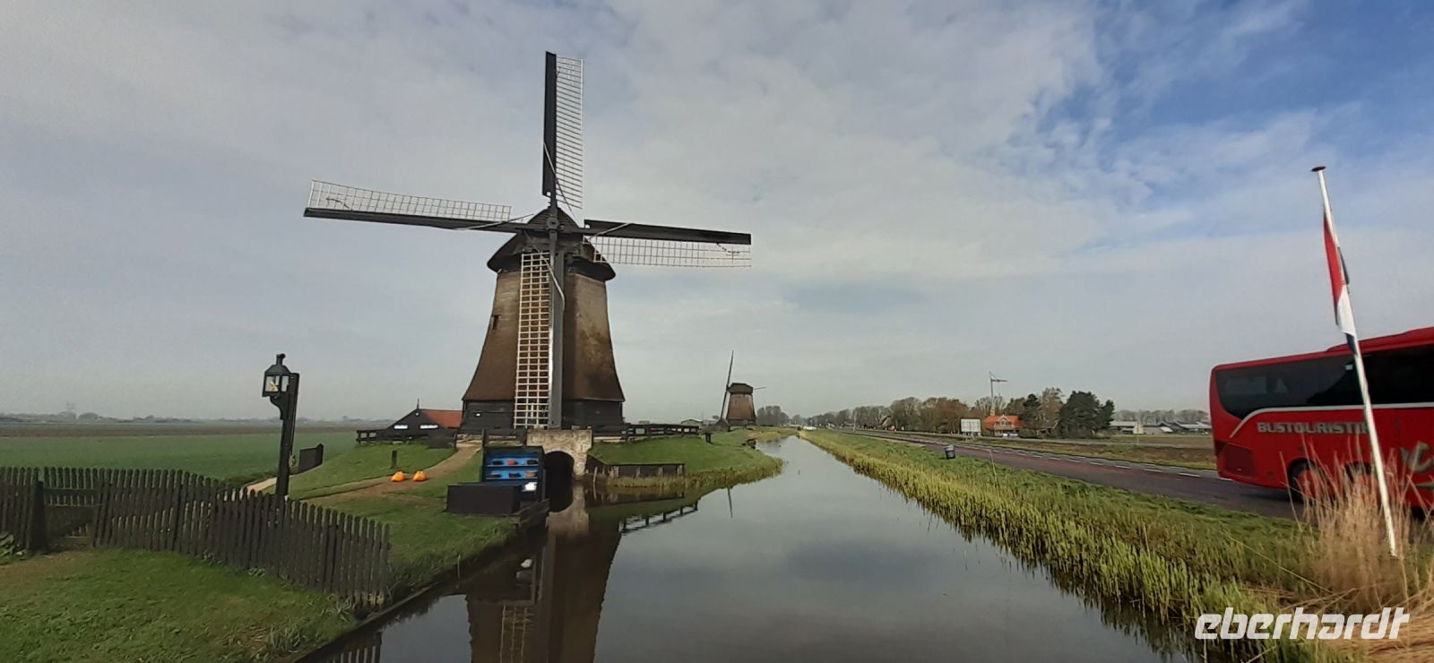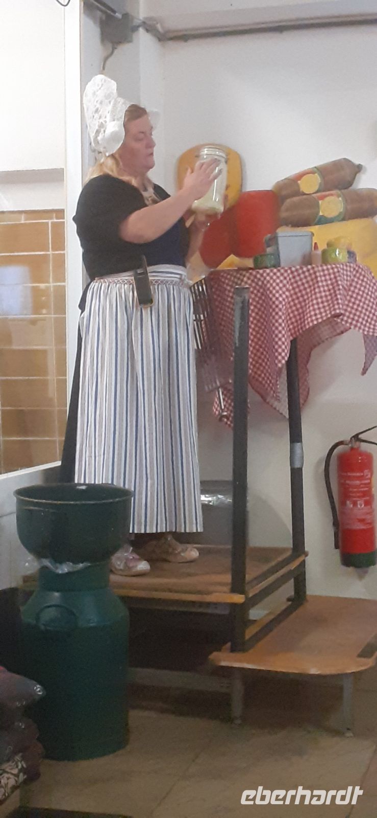 Unser erste Halt führte uns in den ehemaligen Fischerort Enkhuizen. Auf der Fahrt dahin überquerten wir das Ijsselmeer über den Abschlussdeich. Der 32 km lange Damm der 1932 gebaut wurde, schützt die Orte entlang des Sees. Zur Zeit befindet sich dort noch eine Baustelle da verschiedene Wartungsarbeiten zur Sicherung stattfinden. Wir erreichten Enkhuizen und nutzten den Aufenthalt für einen Spaziergang in die Fußgängerzone oder zum ehemaligen Wehrturm Drommedaris. Anschließend fuhren wir in das Fischerdorf Volendam und besichtigten die Fischräucherei Smit Bokkum. Dort wird seit 150 Jahren in der 6. Generation Fisch und vor allem Aal geräuchert. Von früher 10 Räuchereien ist sie die einzige die noch Aal räuchert. Wir erhielten einen interessanten Einblick in den Familienbetrieb und erfuhren das die Aale jeden Tag auf einer Versteigerung gekauft werden. In einem Film wurden uns die Abläufe der Verarbeitung und des Räuchern gezeigt. Natürlich durfte eine Kostprobe nicht fehlen. Auf nach Amsterdam zur Grachtenrundfahrt. Am Heineken Museum bestiegen wir das Boot und fuhren durch die sehenswerten Grachten in der Innenstadt. Vorbei an schönen Villen, Herrenhäusern und den Gebäuden meist aus dem 17. Jh. erreichten wir den Hafen und bestaunten den am Schifffahrtsmuseum liegende Segelschiff ‘Dutch East Indiaman’, das im 17. und 18. Jahrhundert unterwegs war. Wir verließen Amsterdam und unternahmen auf der Rückfahrt einen Abstecher in eine Käserei und Holzschuhwerkstatt. Auf unterhaltsame Art und Weise wurde uns die Käseherstellung und die Verarbeitung der Holzschuhe näher gebracht. Natürlich durfte auch verkostet werden bevor man den Käse kaufte. Die war noch ein schöner Abschluss des Tages.