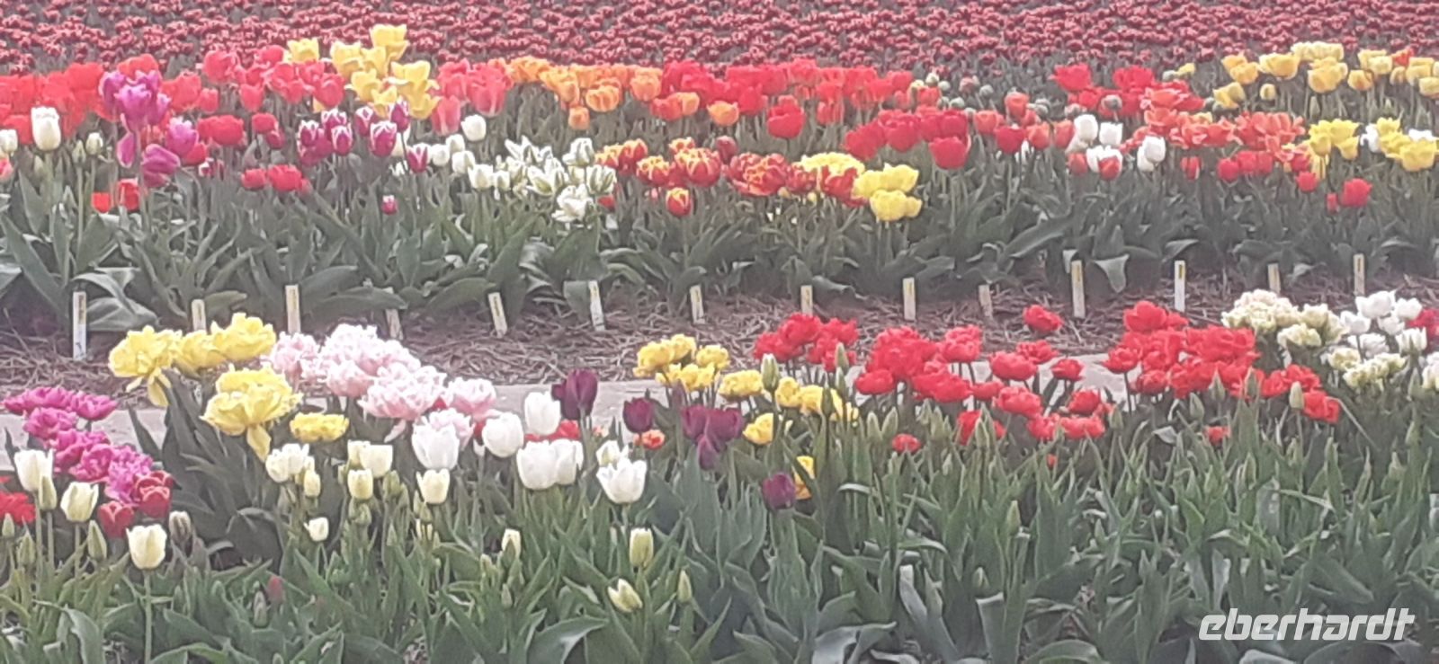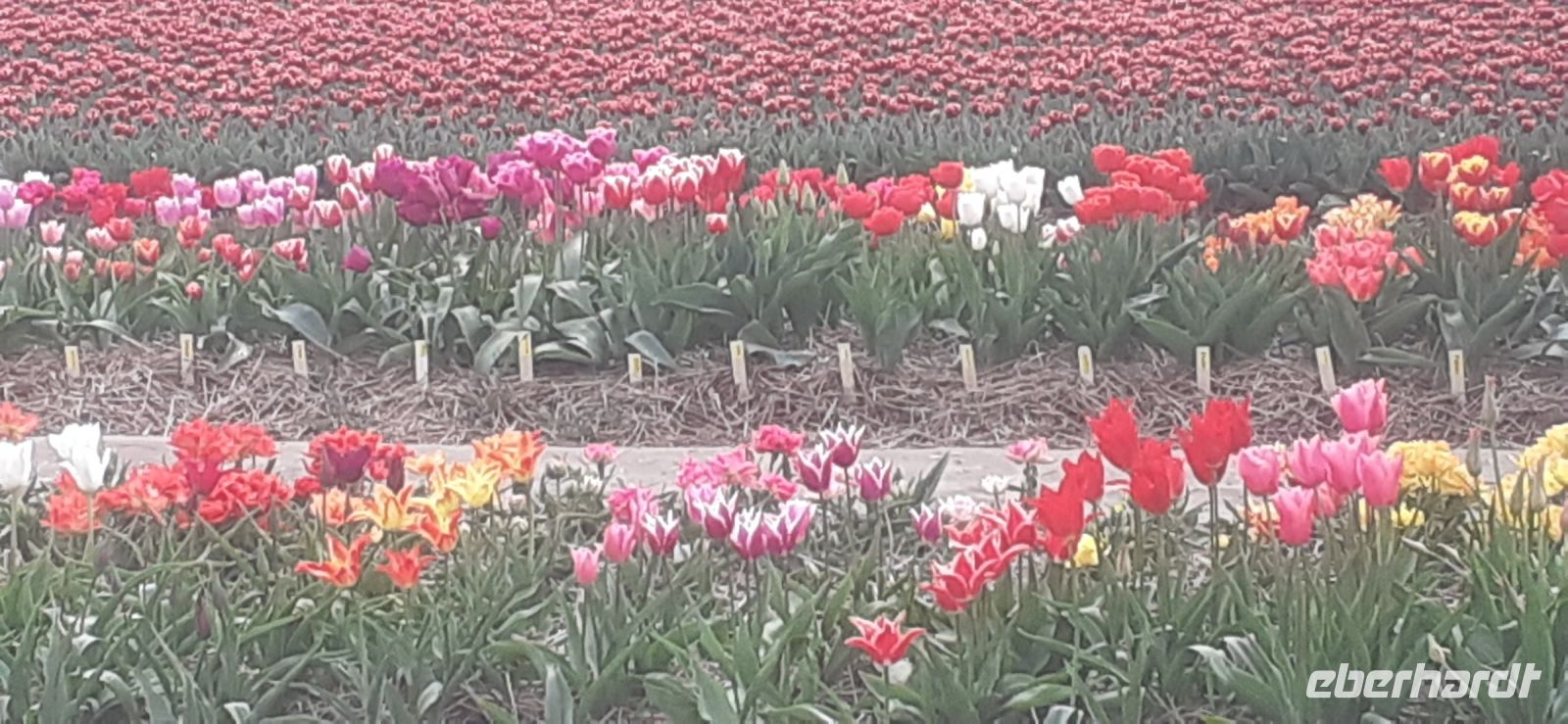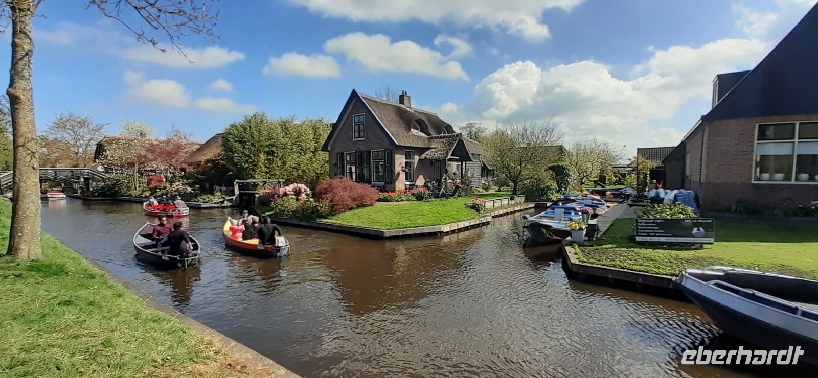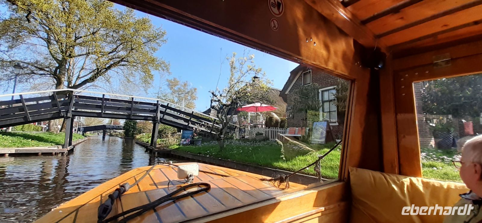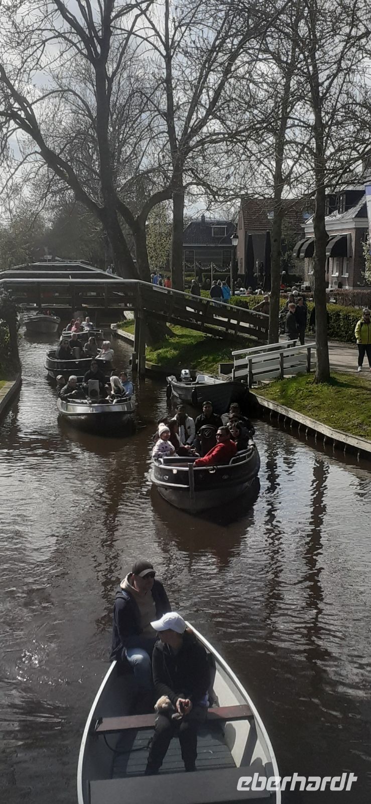 Am Morgen starteten wir nach Giethoorn auch bekannt als das Venedig des Nordens. Im idyllischen Dorf erwartete uns eine eine romantische Bootsfahrt durch "Giethoorn Village". Wir bestaunten entlang der Kanäle die reetgedeckte Häuser mit ihren schönen Gärten und den 175 verschiedenen Brücken. Das wunderschöne Städtchen war eine Torfstecher-Stadt. Durch die Gewinnung des Torf entstanden die Wasserkanäle, Seen und die Inseln. Während einer Bootsfahrt entdeckten wir das Dorf und den umliegenden See. In einige Häuser befinden sich heute Pensionen, Galerien, Geschäfte oder Restaurants. Da wir am frühen Morgen da waren konnten wir die Grachtenrundfahrt genießen und anschließend das Dorf auf eigene Faust erkunden. Nach diesem schönen Aufenthalt fuhren wir in die jüngste Provinz der Niederlande nach Flevoland. Im Noordoostpolder befinden sich die größten Tulpenfelder der Niederlande. Ab Ende April findet 14 Tage das Tulpenfestival statt. Wir fuhren entlang der Route an verschiedenen Feldern vorbei. Es erwartete uns eine schöne Farbenpracht. Am Tulpenerlebnisfeld in Creil befand sich ein Schaugarten mit 500 verschiedenen Tulpensorten. Anschließend besuchten wir in Espel den Tulpen-Sortengarten mit 1850 Sorten in vielen Farben zu bestaunen. Eine einzigartige Vielfalt. Unser letzter Stopp war das Tulpenfeld in Marknesse. Nach einer kurzen Einführung in die Tulpenzucht tranken wir einen Kaffee und wer wollte hatte die Möglichkeit 10 Tulpen selbst zu schneiden und mit nach Hause zu nehmen.