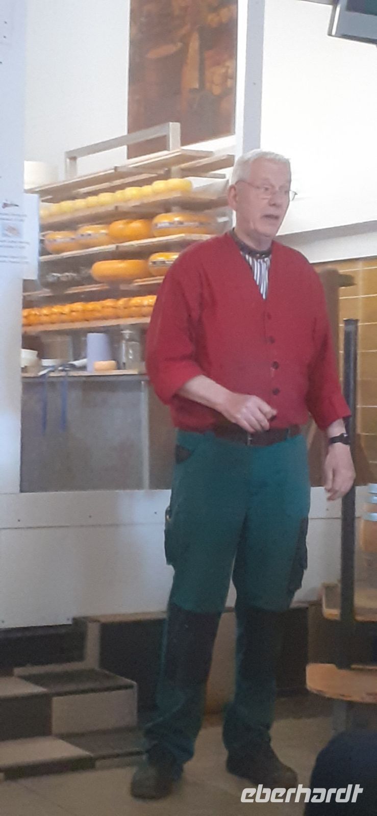 Am heutigen Tag fuhren wir über den Abschlussdeich und besuchten Enkhuizen. Der 32 km lange Damm der 1932 gebaut wurde, schützt die Orte entlang des Ijsselmeers. Die Wartungsarbeiten zur Sicherung und Erweiterung des Deiches waren abgeschlossen. In Enkhuizen spazierten wir zum ehemaligen Wehrturm Drommedaris, den Alten Fischerhafen und vorbei an der Brauerei wieder zum Bahnhof. Anschließend fuhren wir in das Fischerdorf Volendam und besichtigten die Fischräucherei Smit Bokkum. Seit 150 Jahren wird dort in der 6. Generation Fisch und vor allem Aal geräuchert. Es ist in Volendam noch die einzige Räucherei die Aal räuchert. Herr Smit gab uns einen interessanten Einblick in den Familienbetrieb. In einem Film wurden uns die Abläufe der Verarbeitung und des Räuchern gezeigt. Natürlich durfte eine kleine Kostprobe nicht fehlen. Anschließend fuhren wir nach Amsterdam zu einer Grachtenrundfahrt. Vom Boot aus entdeckten wir die Hausboote und sehenswerte Gebäuden meist aus dem 17. Jh. sowie den Hafen. Wir verließen Amsterdam und unternahmen einen Abstecher zu Simonehoeve. In der Käserei und Holzschuhwerkstatt wurde uns die Käseherstellung und die Herstellung der Holzschuhe gezeigt. Bei der reichen Auswahl der verschiedenen Käsesorten viel es schwer sich zu entscheiden. Doch zum Glück konnte jeder vorher verkosten bevor der Käse gekauft wurde.