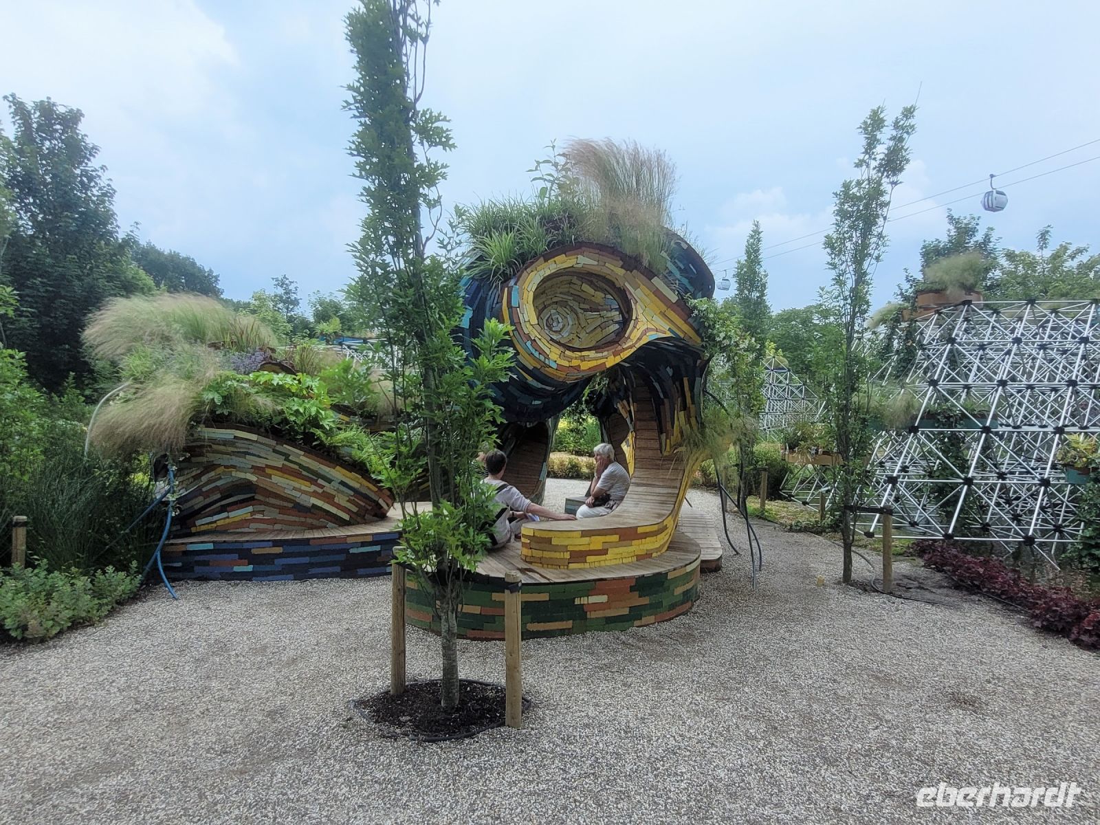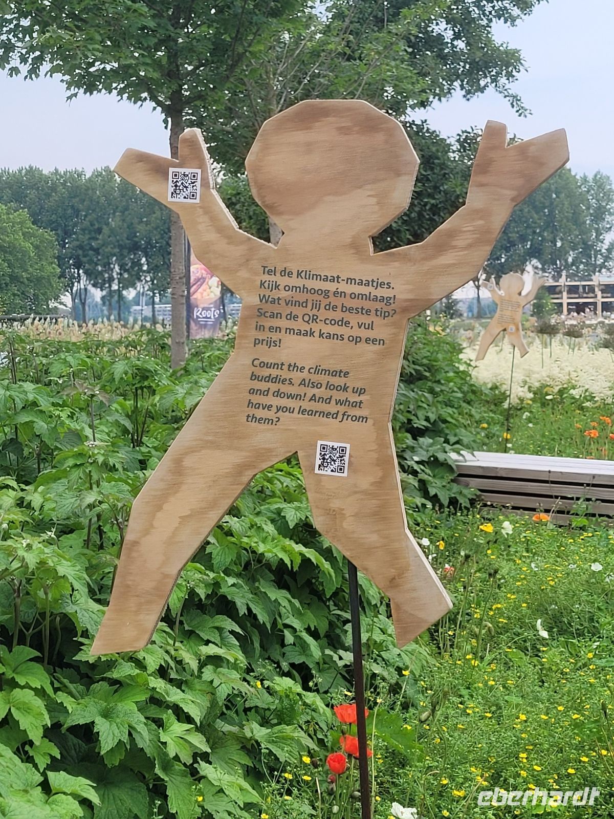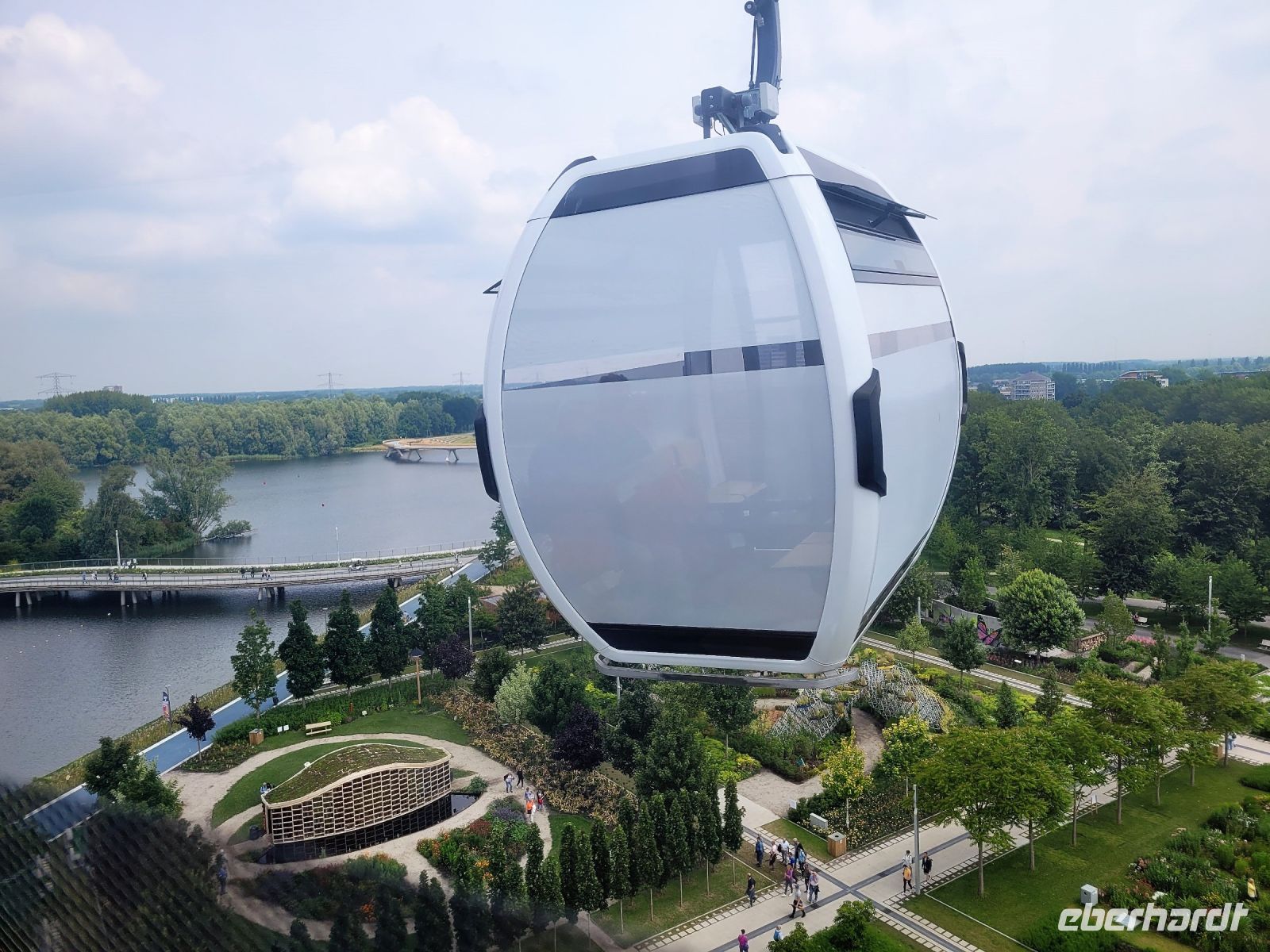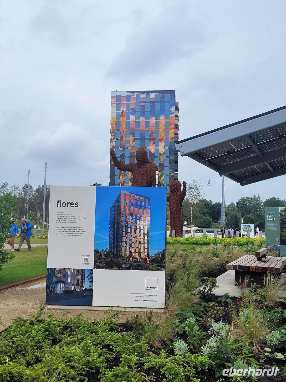 Seit dem 14. April 2022 ist Almere für sechs Monate lang Schauplatz für die Internationale Gartenbauausstellung. Thema: „Growing Green Cities“, d.h. die Städte unterhaltsamer, lebenswerter, nachhaltiger und freundlicher zu machen. Z.B. bienenfreundliche Pflanzen, Dachgärten, begrünte Fassaden unter Berücksichtigung einheimischer Materialien. Die Themengebiete sind nach Ländern, wie Niederlande- Deutschland- Belgien- Frankreich- Bangladesch- China- Indien- Katar- Italien- Schweiz etc. aufgegliedert. Das Gelände befindet sich südlich von Almere, hier soll einmal ein neues und natürlich „grünes“ Stadtviertel entstehen. Almere liegt ganz im Südwesten der Provinz Flevoland, unter dem Meeresspiegel, auf Land, das dem Meer durch jahrzehntelange harte Arbeit abgetrotzt wurde. Im Pavillon der Provinz Flevoland können wir eine virtuelle Fahrt mit dem Heißluftballon erleben. Von der Gondel aus der Seilbahn lässt sich das Gelände aus luftiger Höhe erkunden. So kehren wir am Abend zwar mit vielen Eindrücken, kreativen Ideen und Fotos im Gepäck ins Hotel zurück.