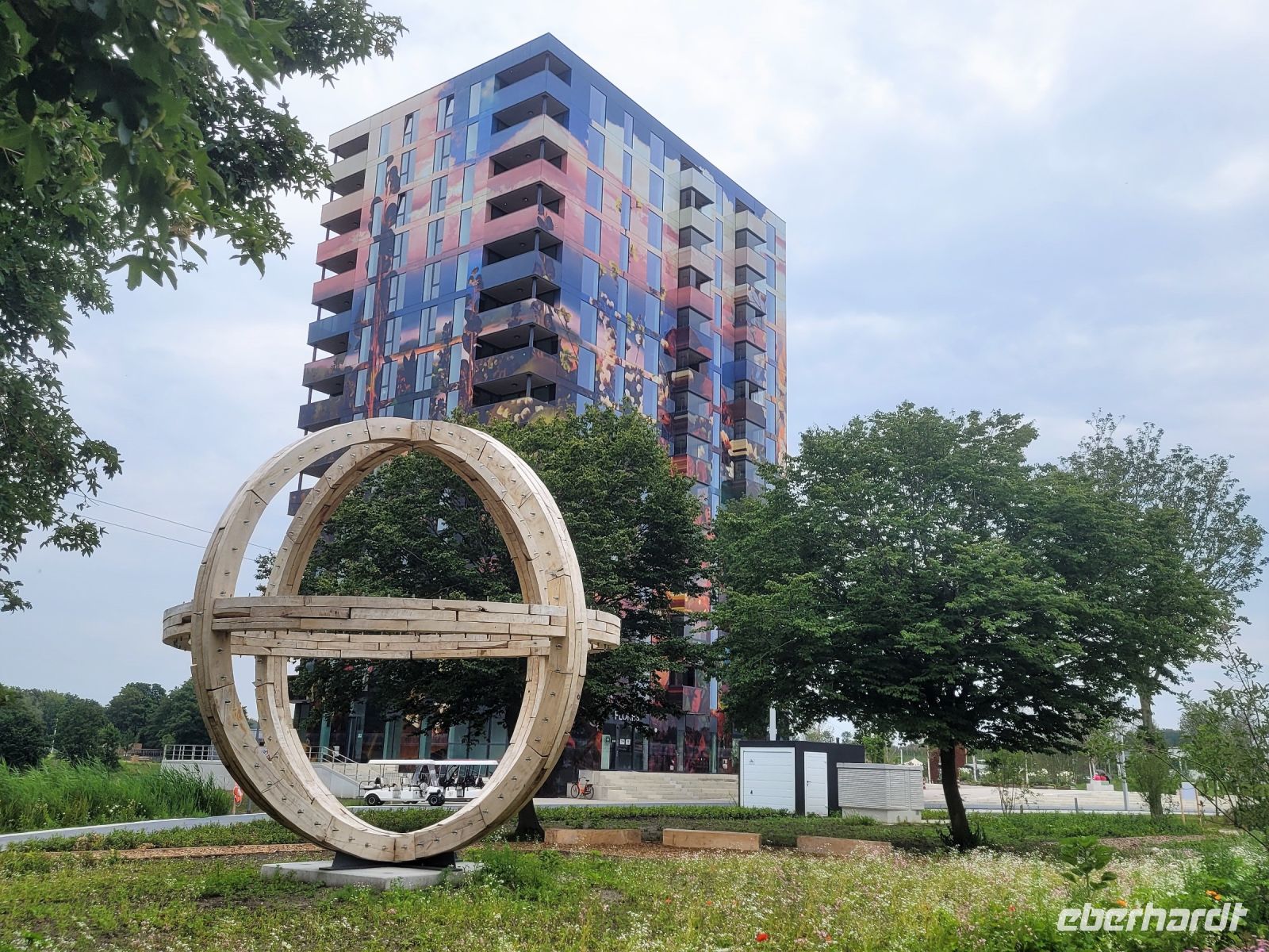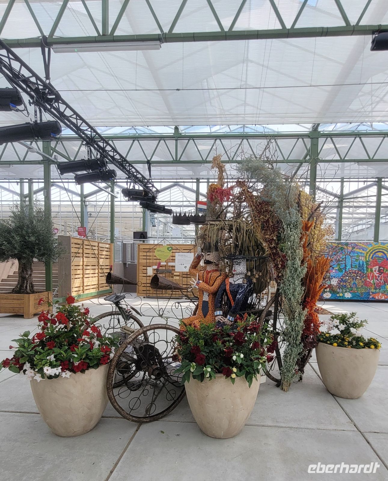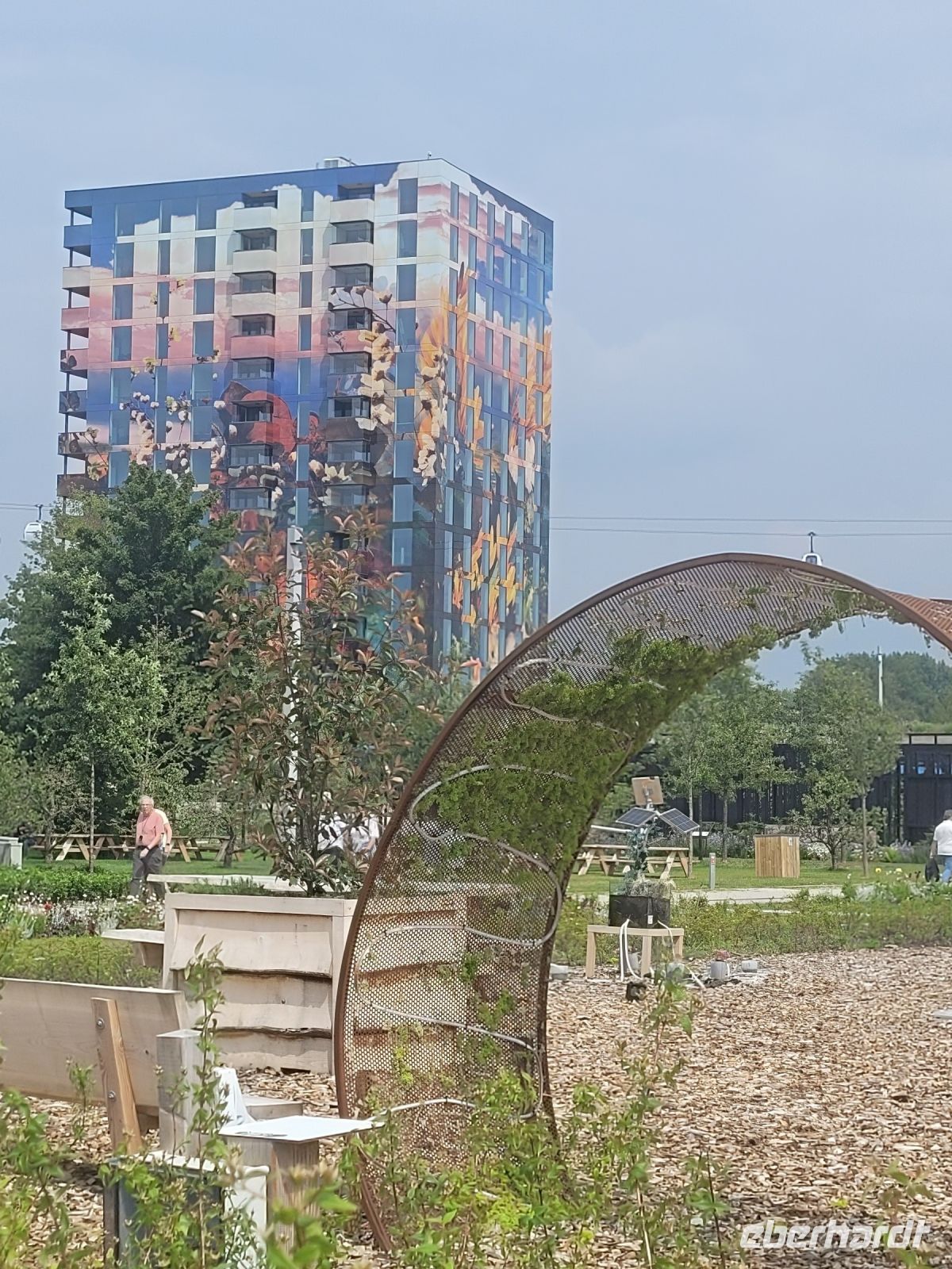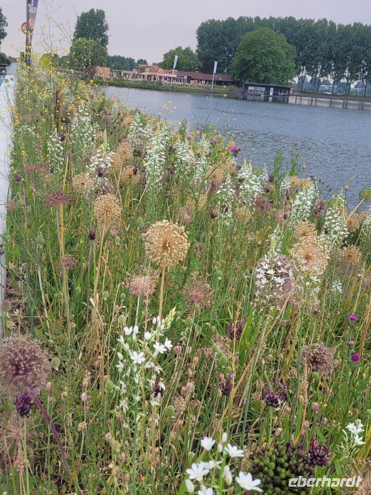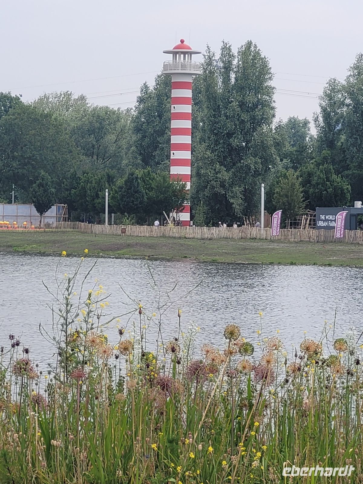 Seit dem 14. April 2022 ist Almere für sechs Monate lang Schauplatz für die Internationale Gartenbauausstellung. Thema: „Growing Green Cities“, d.h. die Städte unterhaltsamer, lebenswerter, nachhaltiger und freundlicher zu machen. Z.B. bienenfreundliche Pflanzen, Dachgärten, begrünte Fassaden unter Berücksichtigung einheimischer Materialien. Die Themengebiete sind nach Ländern, wie Niederlande- Deutschland- Belgien- Frankreich- Bangladesch- China- Indien- Katar- Italien- Schweiz etc. aufgegliedert. Das Gelände befindet sich südlich von Almere, hier soll einmal ein neues und natürlich „grünes“ Stadtviertel entstehen. Almere liegt ganz im Südwesten der Provinz Flevoland, unter dem Meeresspiegel, auf Land, das dem Meer durch jahrzehntelange harte Arbeit abgetrotzt wurde. Im Pavillon der Provinz Flevoland können wir eine virtuelle Fahrt mit dem Heißluftballon erleben. Von der Gondel aus der Seilbahn lässt sich das Gelände aus luftiger Höhe erkunden. So kehren wir am Abend zwar mit vielen Eindrücken, kreativen Ideen und Fotos im Gepäck ins Hotel zurück.