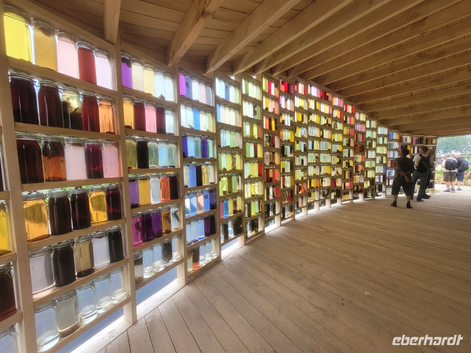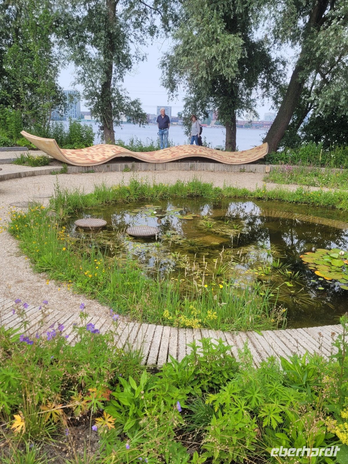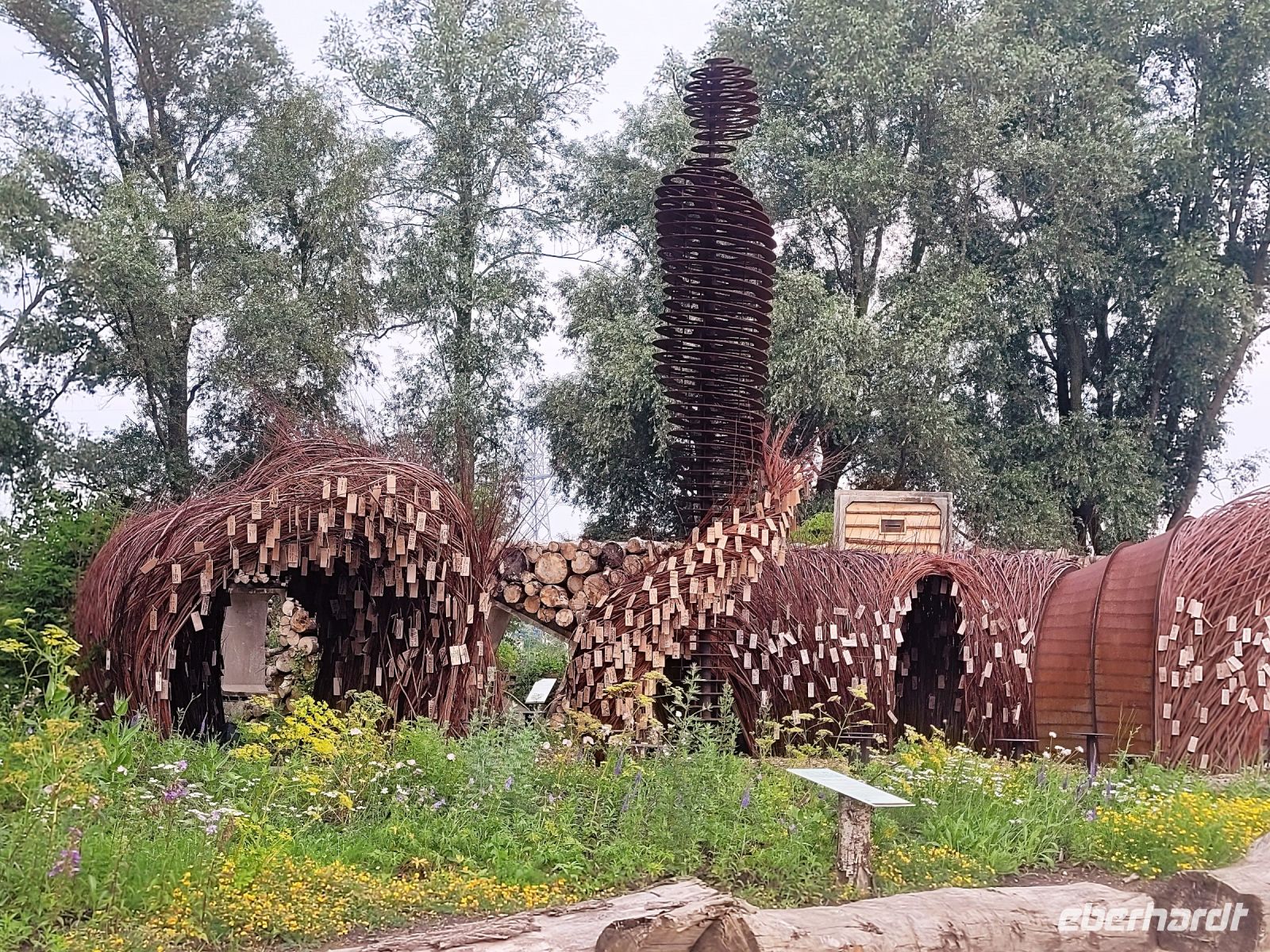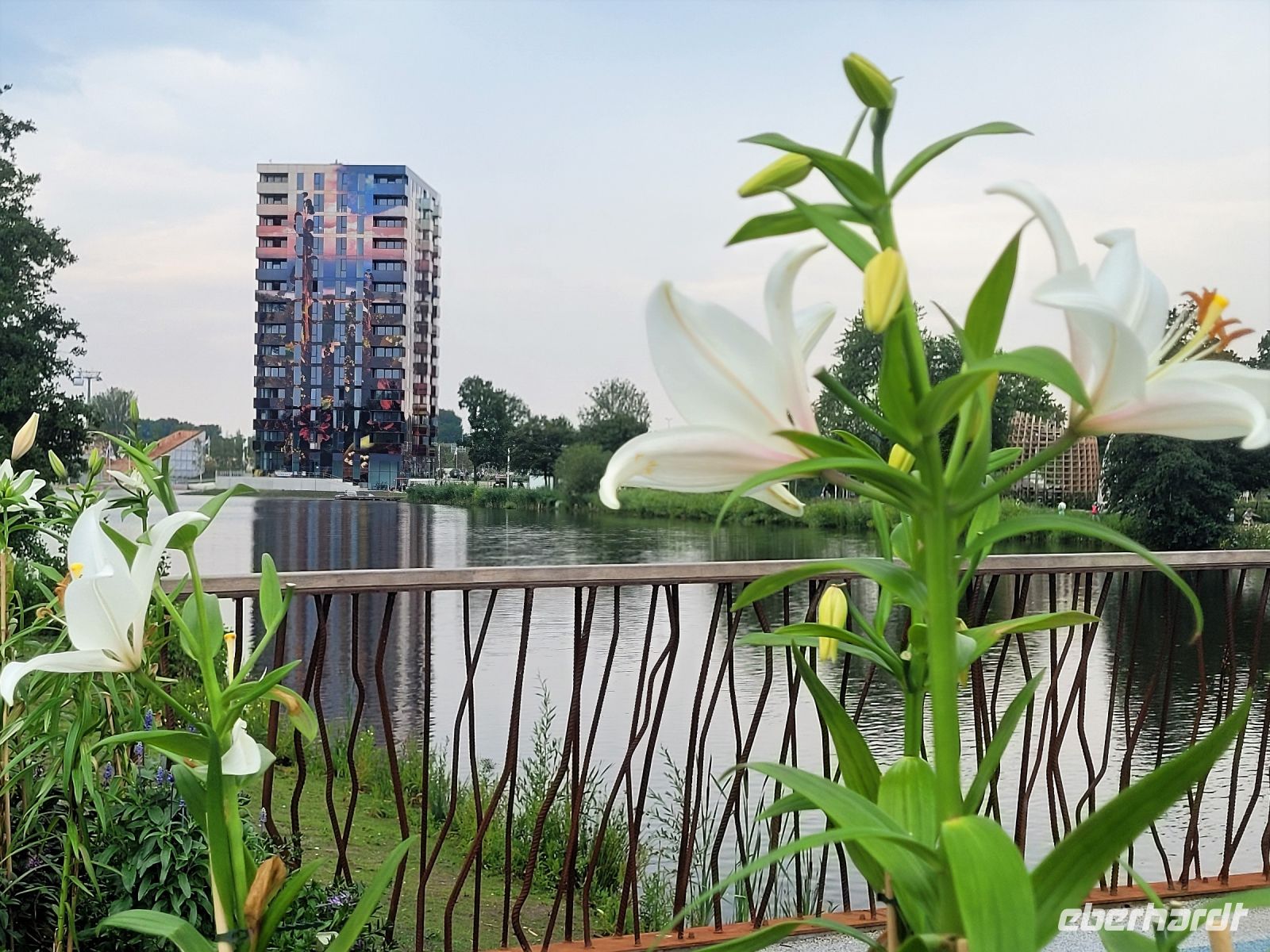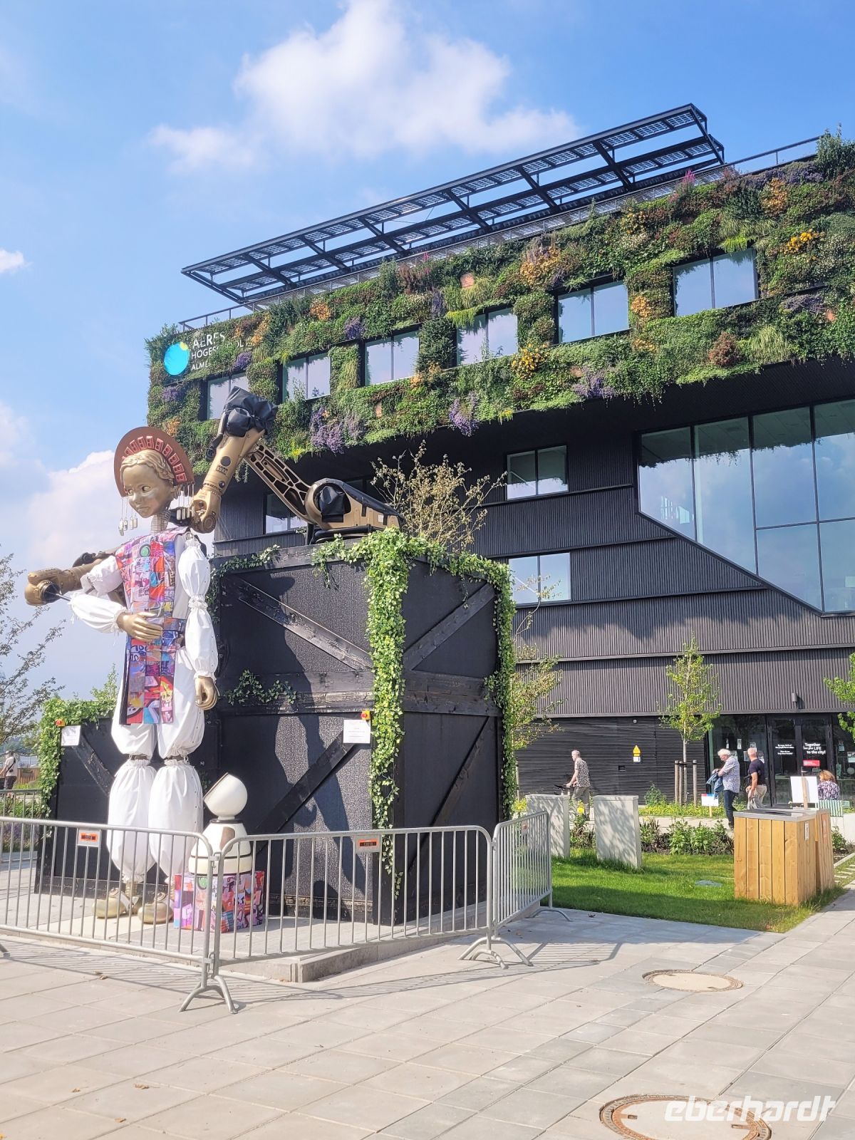 Seit dem 14. April 2022 ist Almere für sechs Monate lang Schauplatz für die Internationale Gartenbauausstellung. Thema: „Growing Green Cities“, d.h. die Städte unterhaltsamer, lebenswerter, nachhaltiger und freundlicher zu machen. Z.B. bienenfreundliche Pflanzen, Dachgärten, begrünte Fassaden unter Berücksichtigung einheimischer Materialien. Die Themengebiete sind nach Ländern, wie Niederlande- Deutschland- Belgien- Frankreich- Bangladesch- China- Indien- Katar- Italien- Schweiz etc. aufgegliedert. Das Gelände befindet sich südlich von Almere, hier soll einmal ein neues und natürlich „grünes“ Stadtviertel entstehen. Almere liegt ganz im Südwesten der Provinz Flevoland, unter dem Meeresspiegel, auf Land, das dem Meer durch jahrzehntelange harte Arbeit abgetrotzt wurde. Im Pavillon der Provinz Flevoland können wir eine virtuelle Fahrt mit dem Heißluftballon erleben. Von der Gondel aus der Seilbahn lässt sich das Gelände aus luftiger Höhe erkunden. So kehren wir am Abend zwar mit vielen Eindrücken, kreativen Ideen und Fotos im Gepäck ins Hotel zurück.