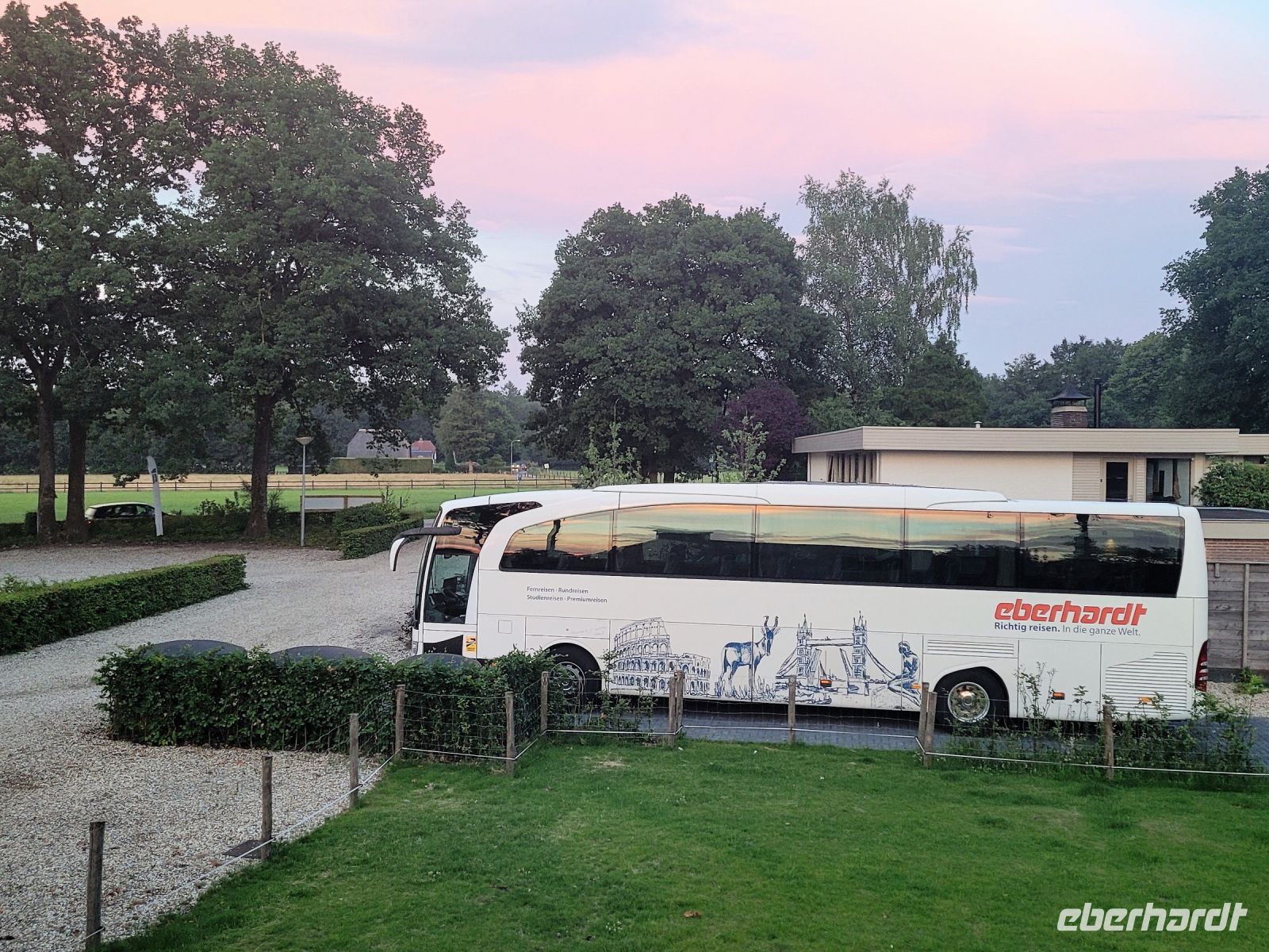 Voller Vorfreude auf wunderschöne Eindrücke und Erlebnisse starten wir am Morgen vom Flughafen Dresden Klotzsche in Richtung Niederlande. Nach mehreren Zustiegen entlang der A4 wächst unsere Gruppe auf insgesamt 39 Reisegäste an. Unser Hotel in Vierhouten (Province Gelderland) an der Veluwe, inmitten des größten Waldgebiets der Niederlande. Der Ort ist klein und gemütlich und das Hotel „De Foreesten“ liegt idyllisch an Pferdekoppeln. Geprägt wird das Ortsbild durch die vielen Fahrradtouristen.