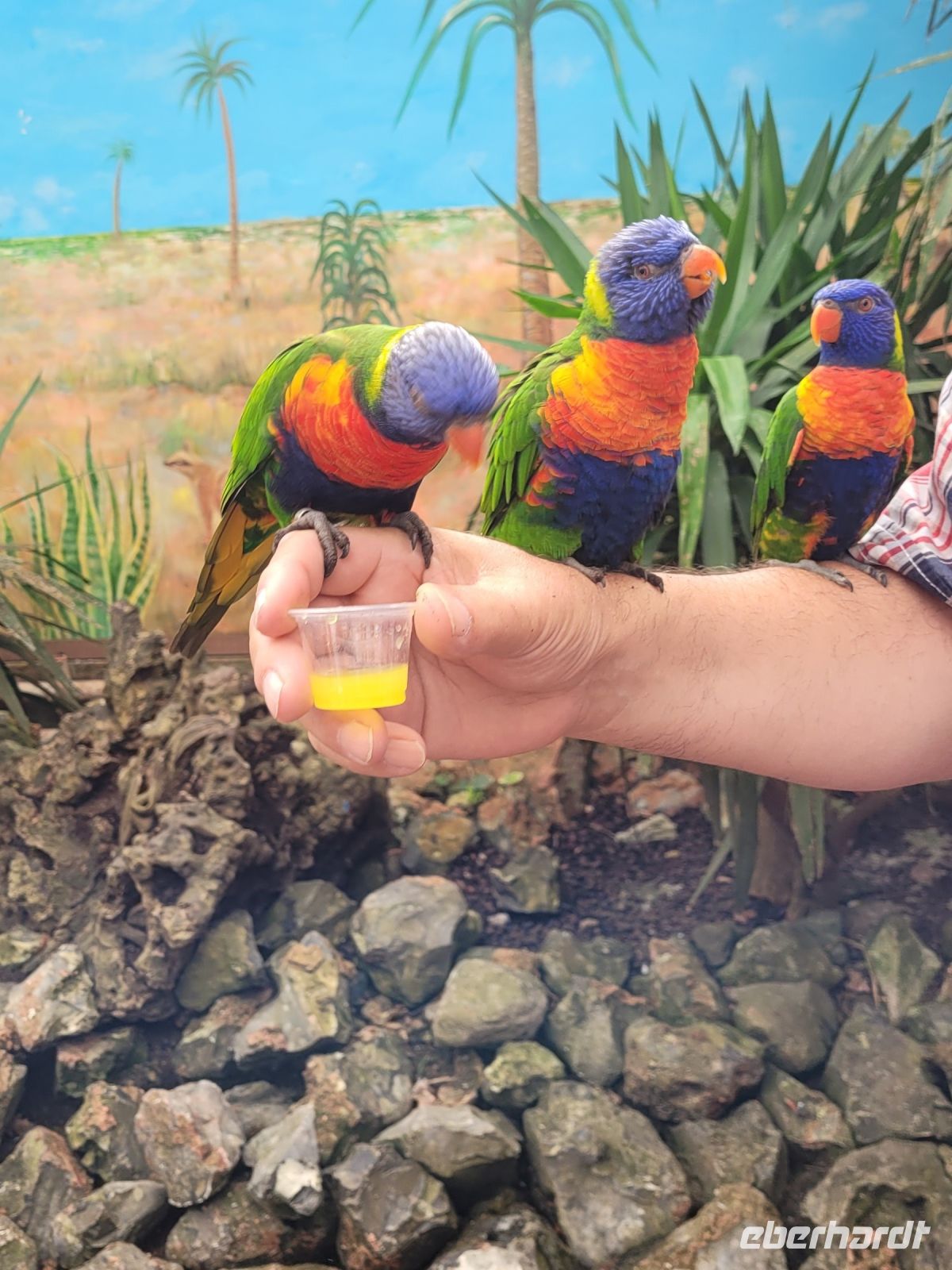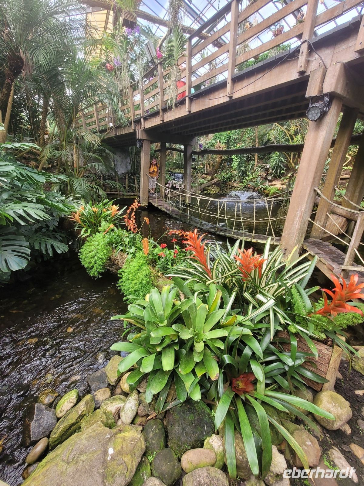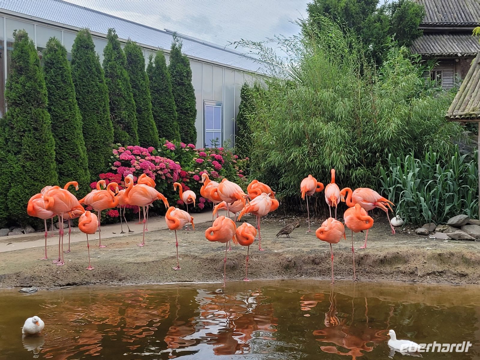Heute wollen wir eine kleine Rundfahrt ums Ijsselmeer unternehmen, um Land und Leute besser kennenzulernen und tiefer in die Geschichte einzutauchen. Erstes Ziel ist Orchideen Hoeve. Hunderte von Tropischen Pflanzen sind liebevoll den Flusslauf entlang arrangiert. Durch die hohe Luftfeuchte gedeihen sie besonders prächtig. Mit dem Wasserfall im Hintergrund machen wir Selfies für unseren „Fanclub“. Auch kleine Papageien geben prächtige Statisten ab. Die fliegenden Diamanten sind für unsere Kameras leider zu flink und wir können sie leider nur kurz bestaunen. Im Aussengelände befinden sich Flamingos, Reiher und verschiedene Arten von zutraulichen Enten.
