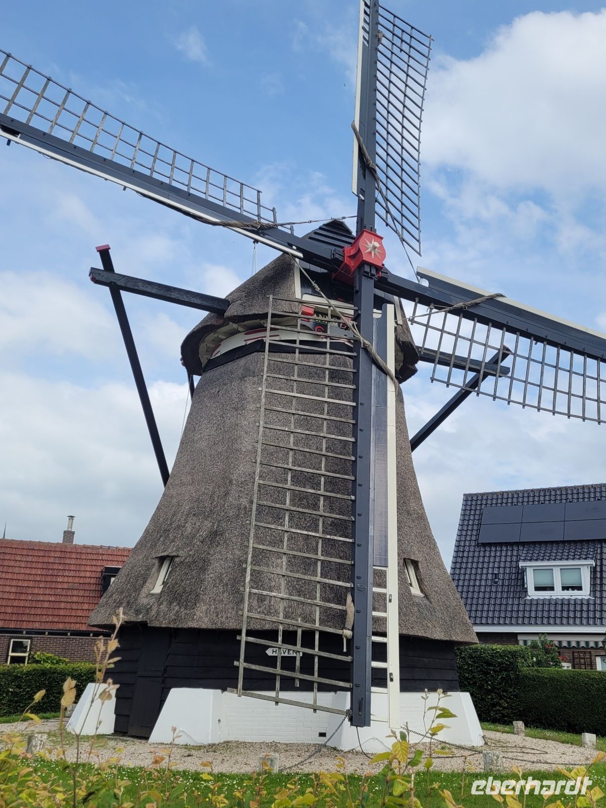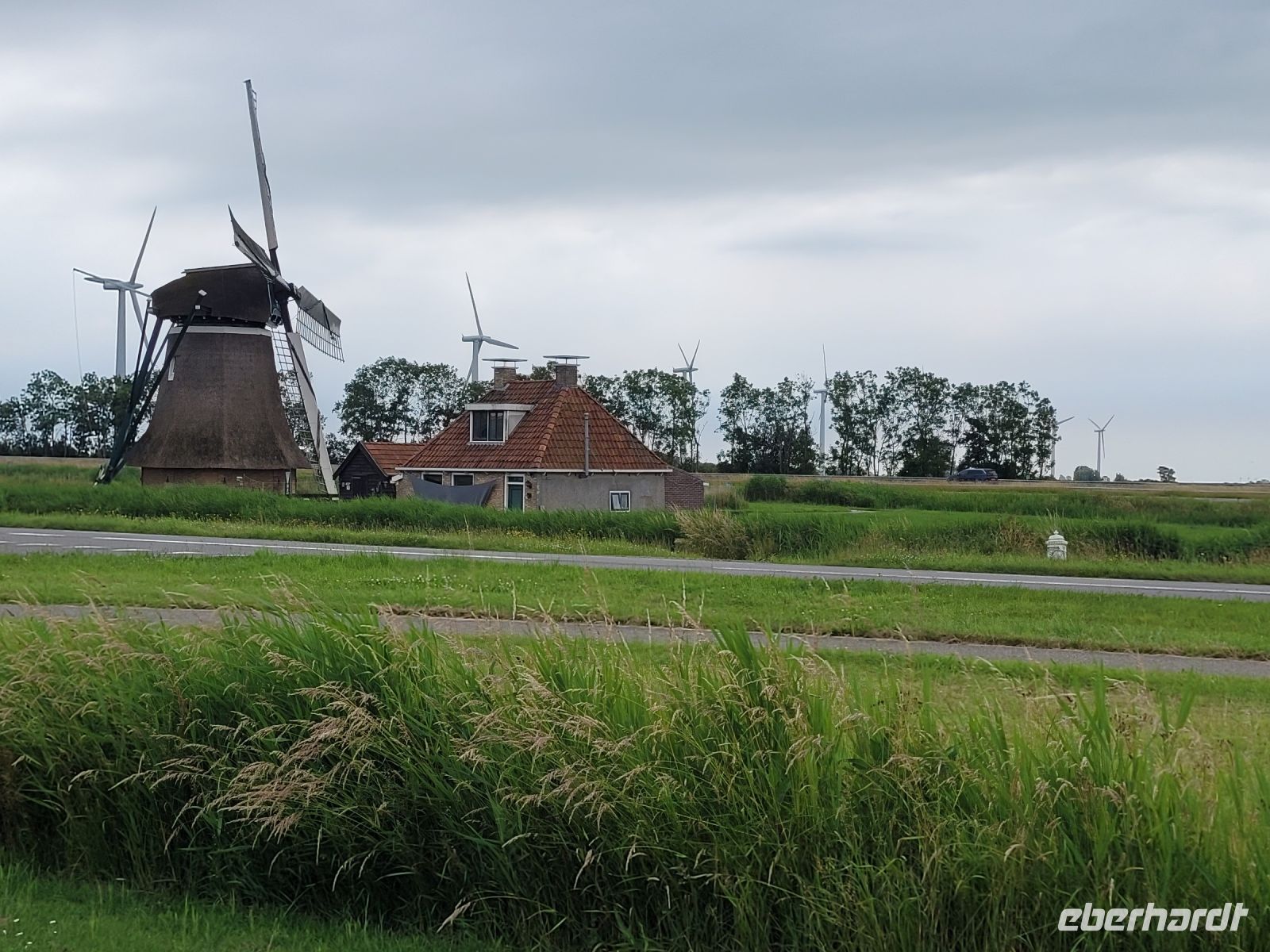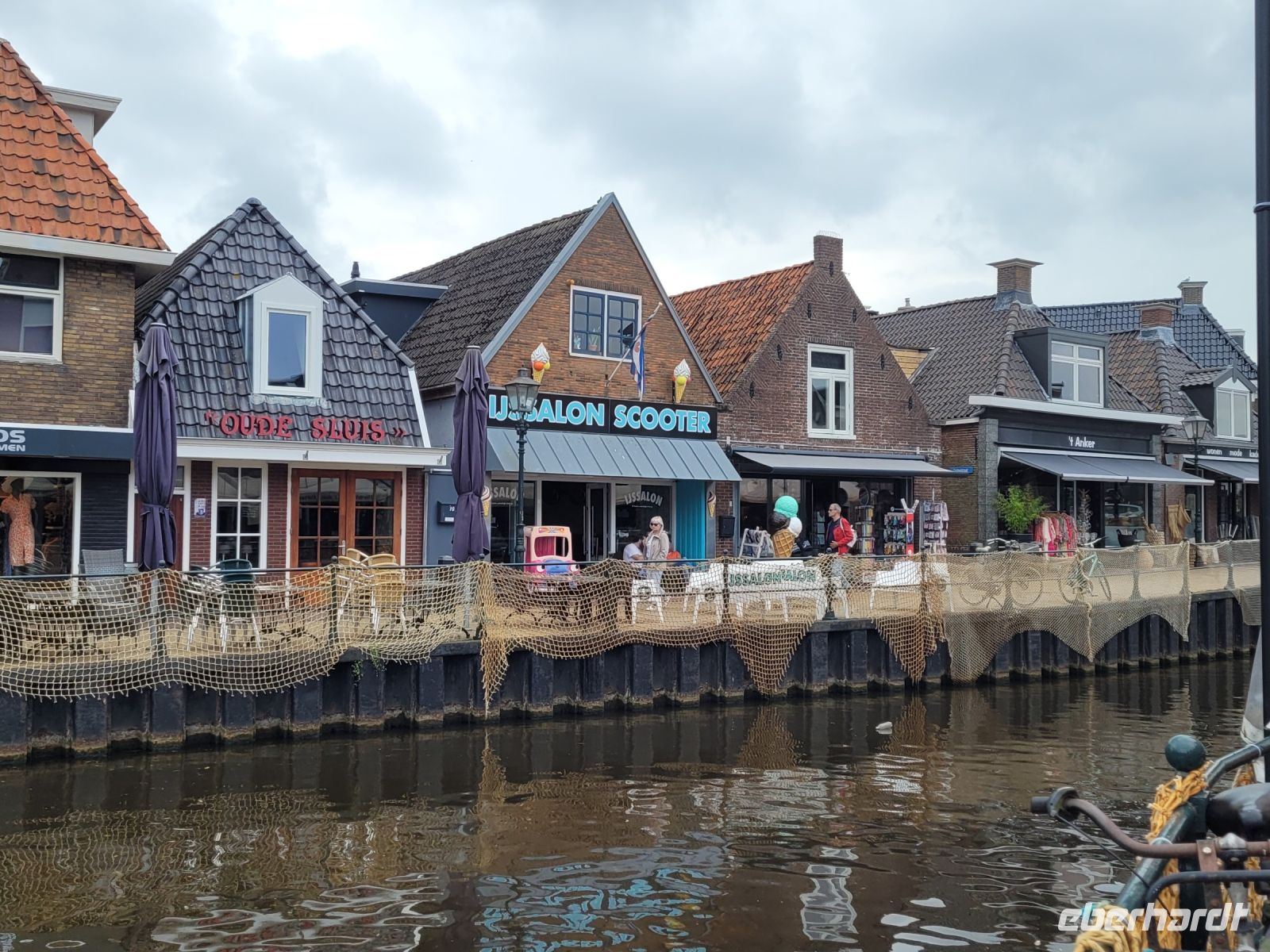 Aufgrund der Lage am Ende des Prinses-Magriet-Kanals und der Nähe zum IJsselmeer hat der Wassersporttourismus hier eine große Bedeutung. Kleine Restaurants, entlang des Wassers laden zum Verweilen ein. Eine Spezialität ist der Kibbeling, als Fischbrötchen oder mit Fritjes. Weiter fahren wir durch kleine Fischerdörfchen bis zum 32 km langen Abschlussdeich zwischen Ijsselmeer und Nordsee.