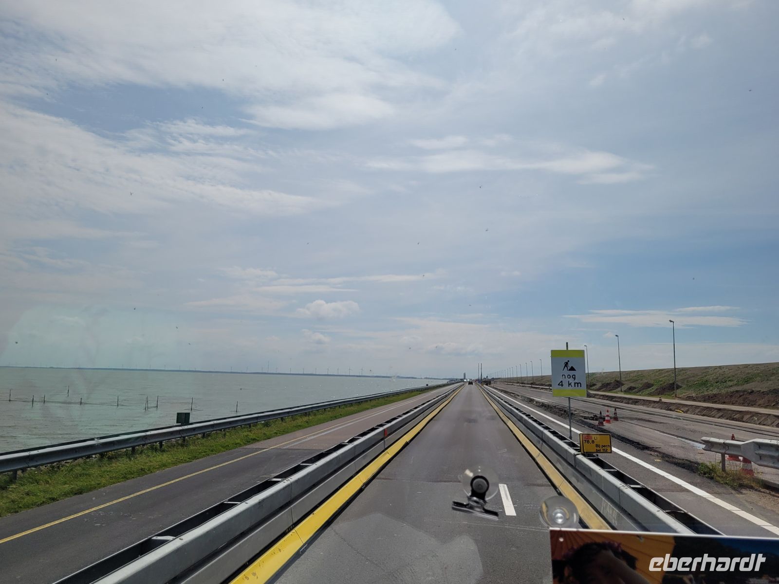 Über den 26km langen Houtribdijk (Markerwaarddeich) geht es nach Leylstad. Der Deich wurde zwischen 1963 und 1976 errichtet und trennt das IJsselmeer vom Markermeer.