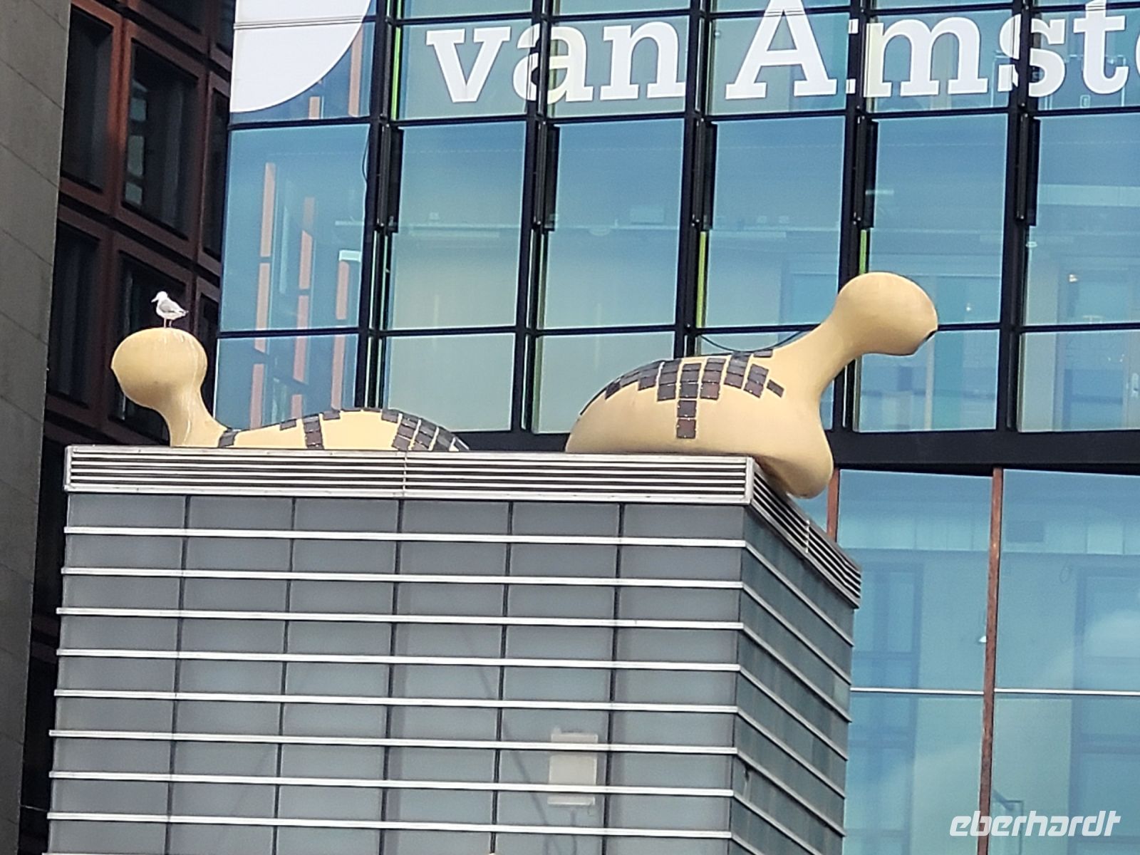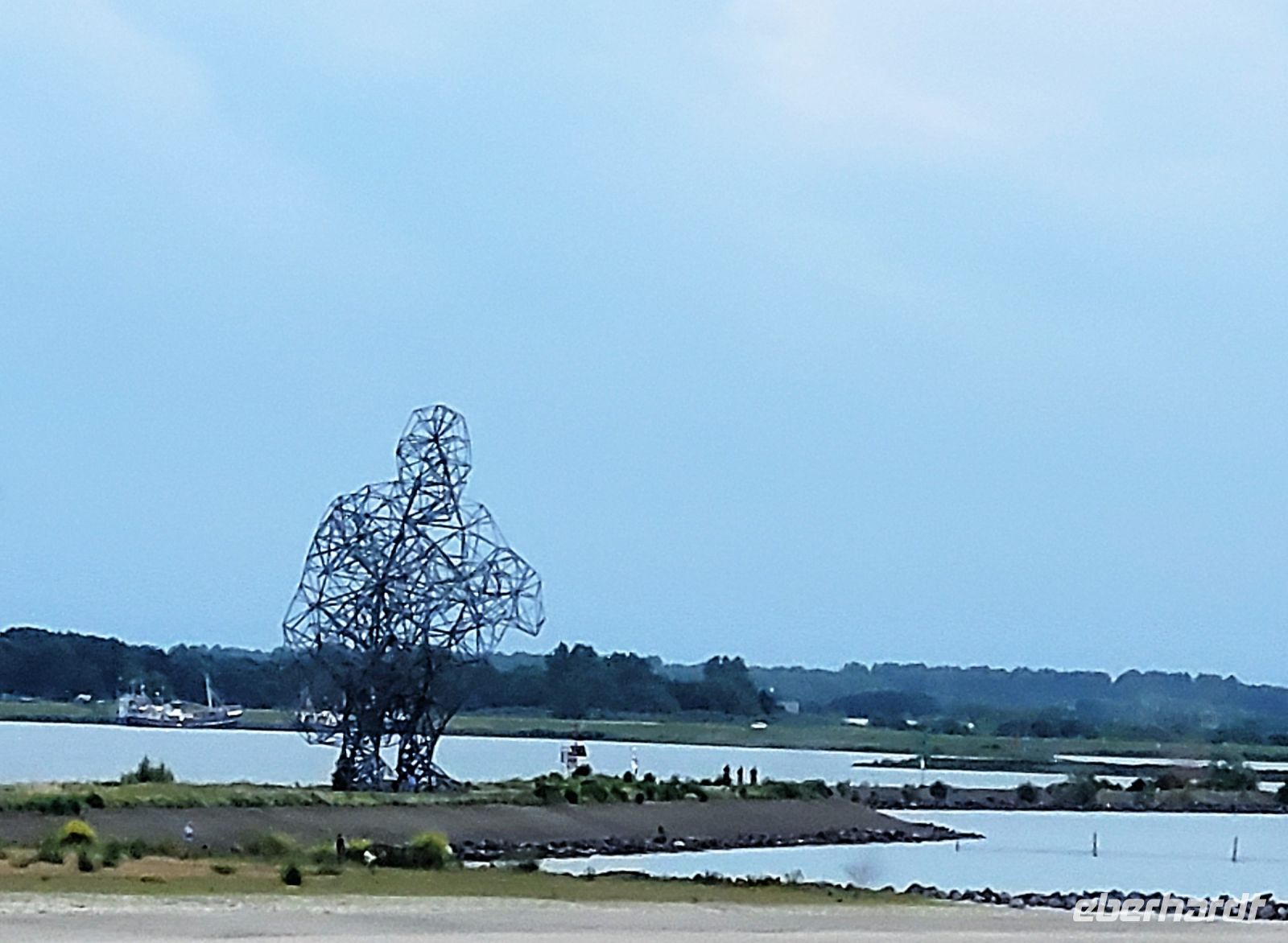 Von weitem grüsst uns der Riese Exposure (25m hoch, 44000 Kg, 1782 Knotenpunkte, 1800 Stäbe im Skelett) von Antony Gormley.