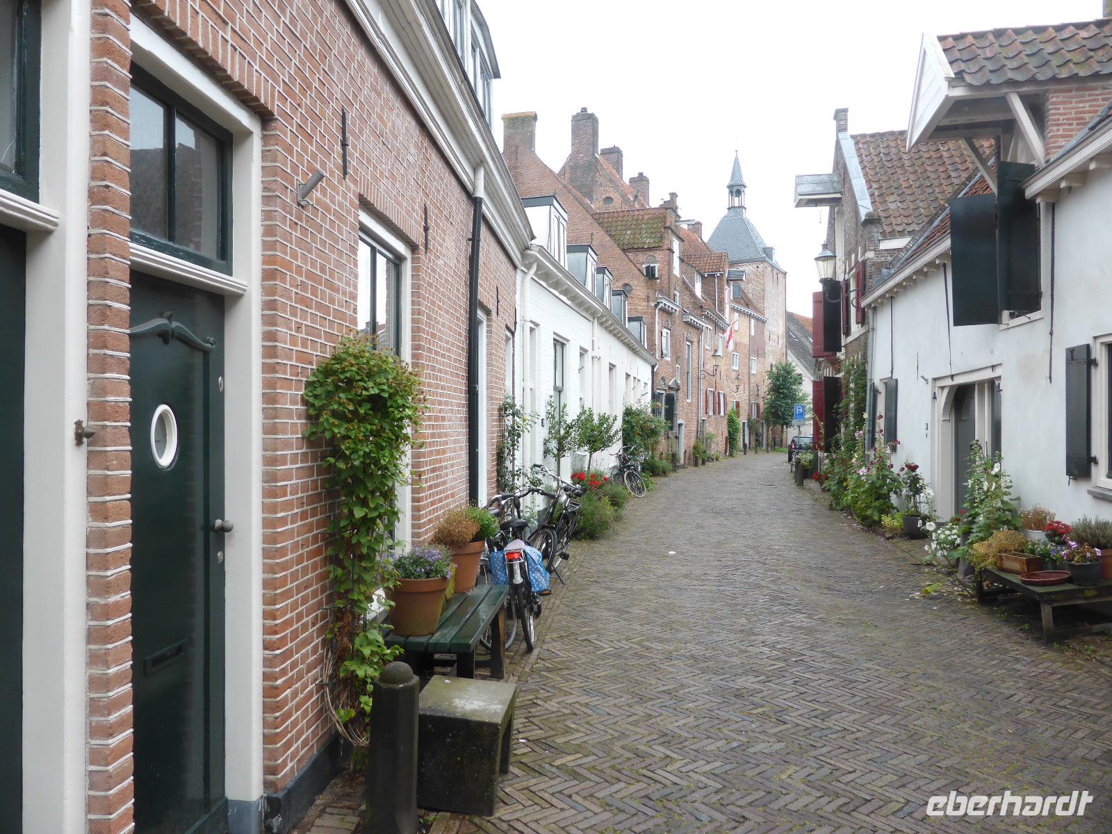 Amersfoort wartete eine kleine mit einem doppelten Grachtengürtel umgebene Altstadt mit seinem Blumenmarkt auf uns. Wir bummelten entlang der bekannten Muukhuizen (Mauerhäuser). Diese wurden auf den Fundamenten des alten Befestigungswalles erbaut. Am Hof, dem Altstadtmarkt befindet sich die St. Joriskerk (St. Georgskirche). Ziel war allerdings der Liebfrauenturmmarkt mit seinem Blumenmarkt. Der Liebfrauenturm mit 98 m Höhe sowie seinem Glockenspiel ist das Wahrzeichen von Amersfoort.