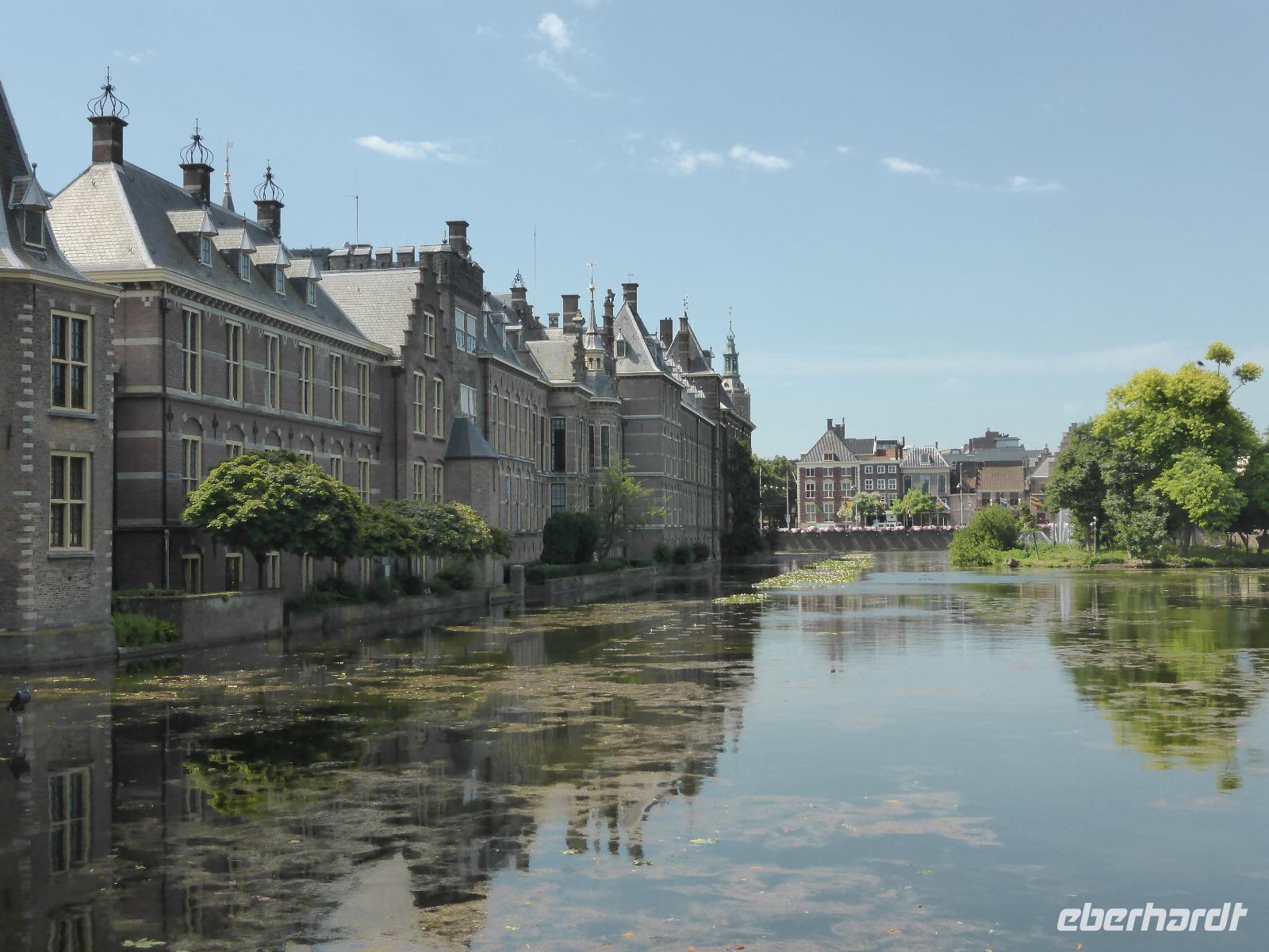 Nach dieser Hafenrundfahrt setzten wir unsere Reise nach Den Haag fort. In Den Haag erwarteten uns drei Stadtführer zum Rundgang durch die Altstadt. Den Haag entstand aus des Grafen Gehege, dem ursprünglichen Jagd- und Wohnsitz der Grafen von Holland. Es galt lange als das „größte Dorf Europas", da es erst zu Beginn des 19. Jh. Stadtrechte erhielt. Der Ausgangspunkt unseres Rundganges war der Binnenhof, ehemaliger Wohnsitz des Statthalters der Niederlande und heute Sitz des niederländischen Parlamentes mit dem berühmten Rittersaal. Weiterhin sahen wir den ehemaligen Palast der Königin-Mutter Emma, welches heute das Escher-Museum beherbergt. Am Palais Noordeinde, dem zukünftigen Wohnsitz des Königs Willem - Alexander endete unser Stadtspaziergang. Nach einer kurzen Freizeit fuhren wir weiter nach Delft. Hier stand entweder ein Stadtbummel oder die Besichtigung vom Royal Delft auf dem Programm.