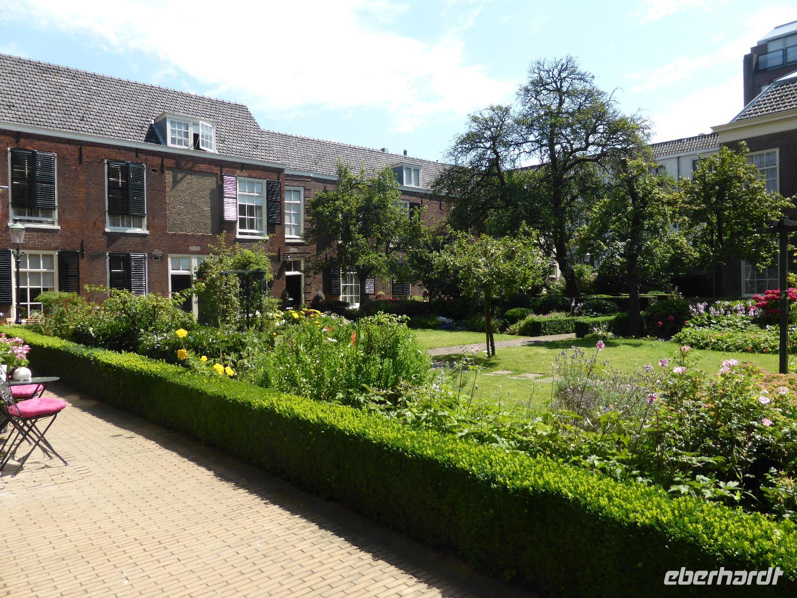Auf dem Rückweg zum Bus besichtigen wir noch den ehemaligen Innenhof der nicht mehr existierenden Marienkirche. Durch den Marienhof mit den Häusern der Klopje (Damen im Dienst der Kirche) kehrten wir zum Bus zurück. Auch dieser letzte Ausflugstag brachte uns viele interessante Eindrücke. Wir freuten uns auf das Abendessen und einen letzten Abendspaziergang durch die Käsestadt Gouda.