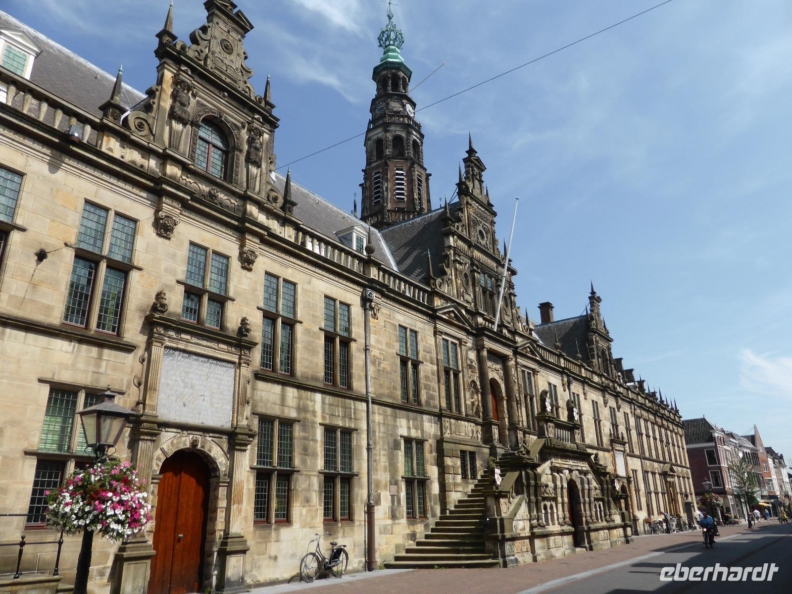 Am Nachmittag setzen wir unsere Reise in die Universitätsstadt Leiden fort. Mit unserer Reiseleiterin Claudia unternahmen wir einen Spaziergang durch die Altstadt von Leiden. Entlang der Breiten Straße erreichten wir den Blauen Stein. Er kennzeichnete 1321 den Stadtmittelpunkt, bei dem Urteile vollstreckt und für untauglich befundene Tuchwaren verbrannt wurden.